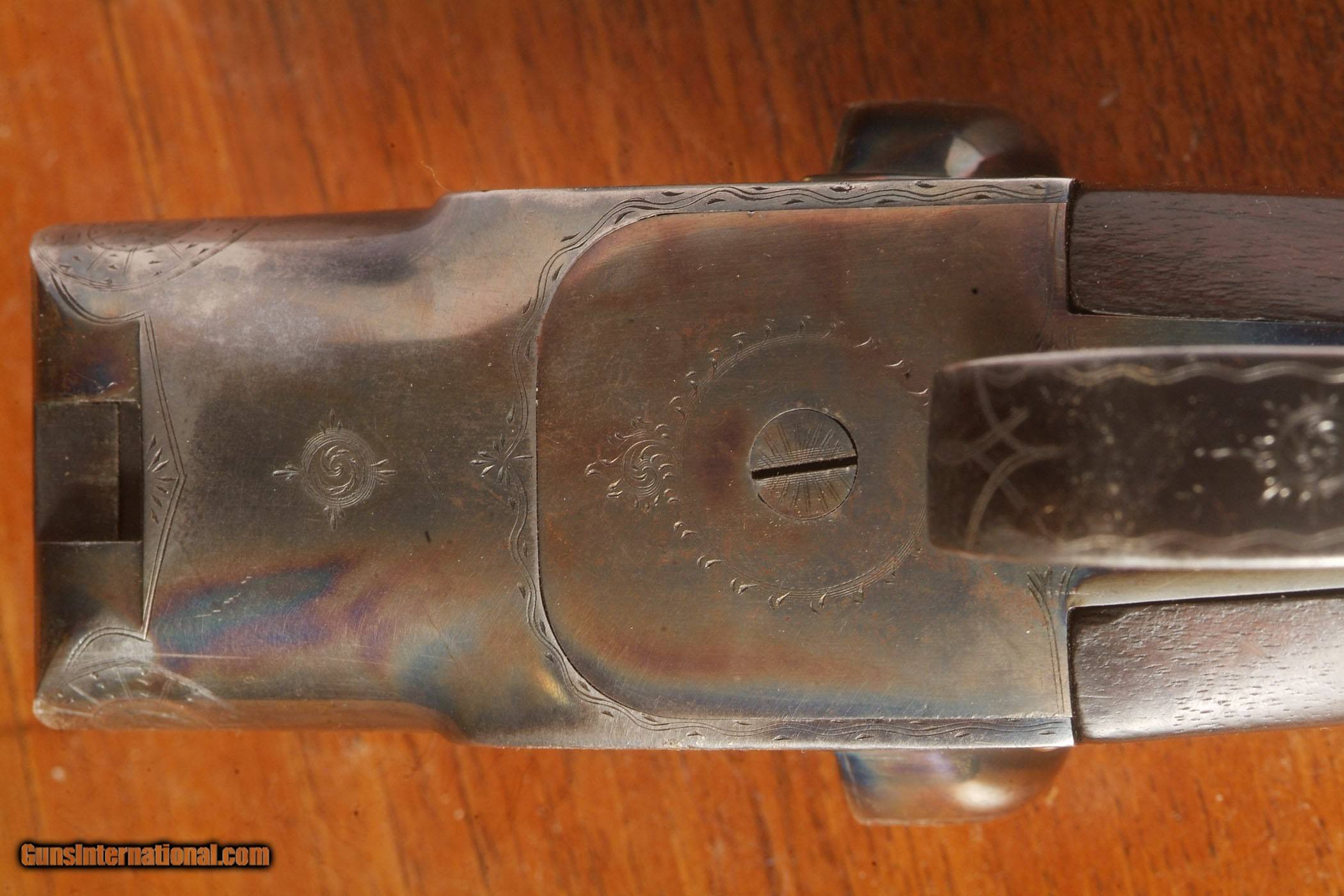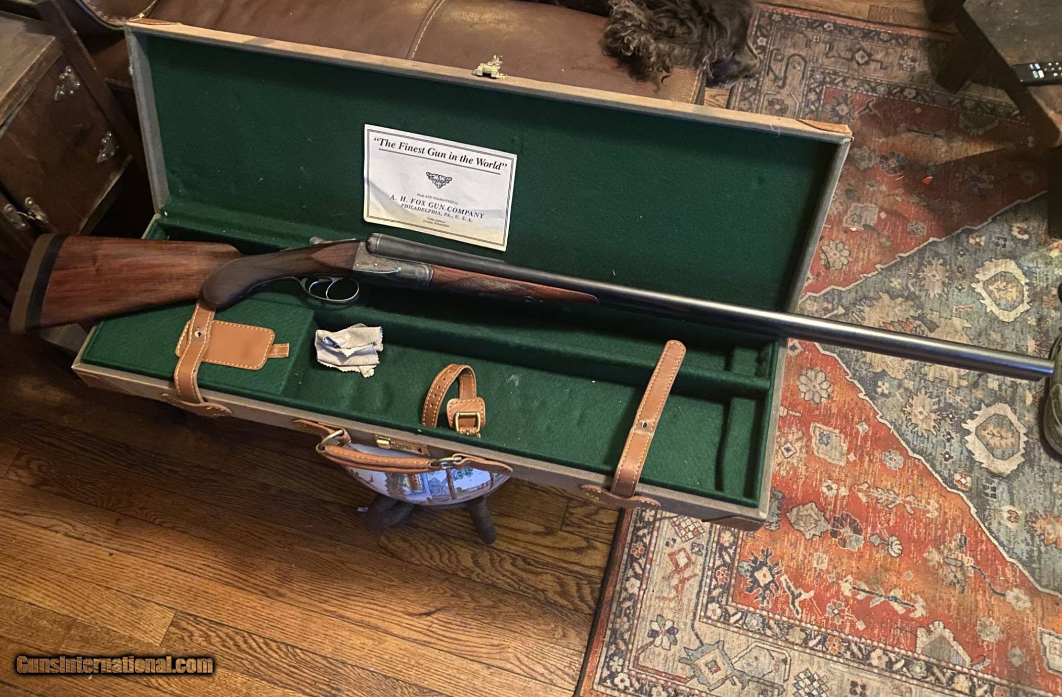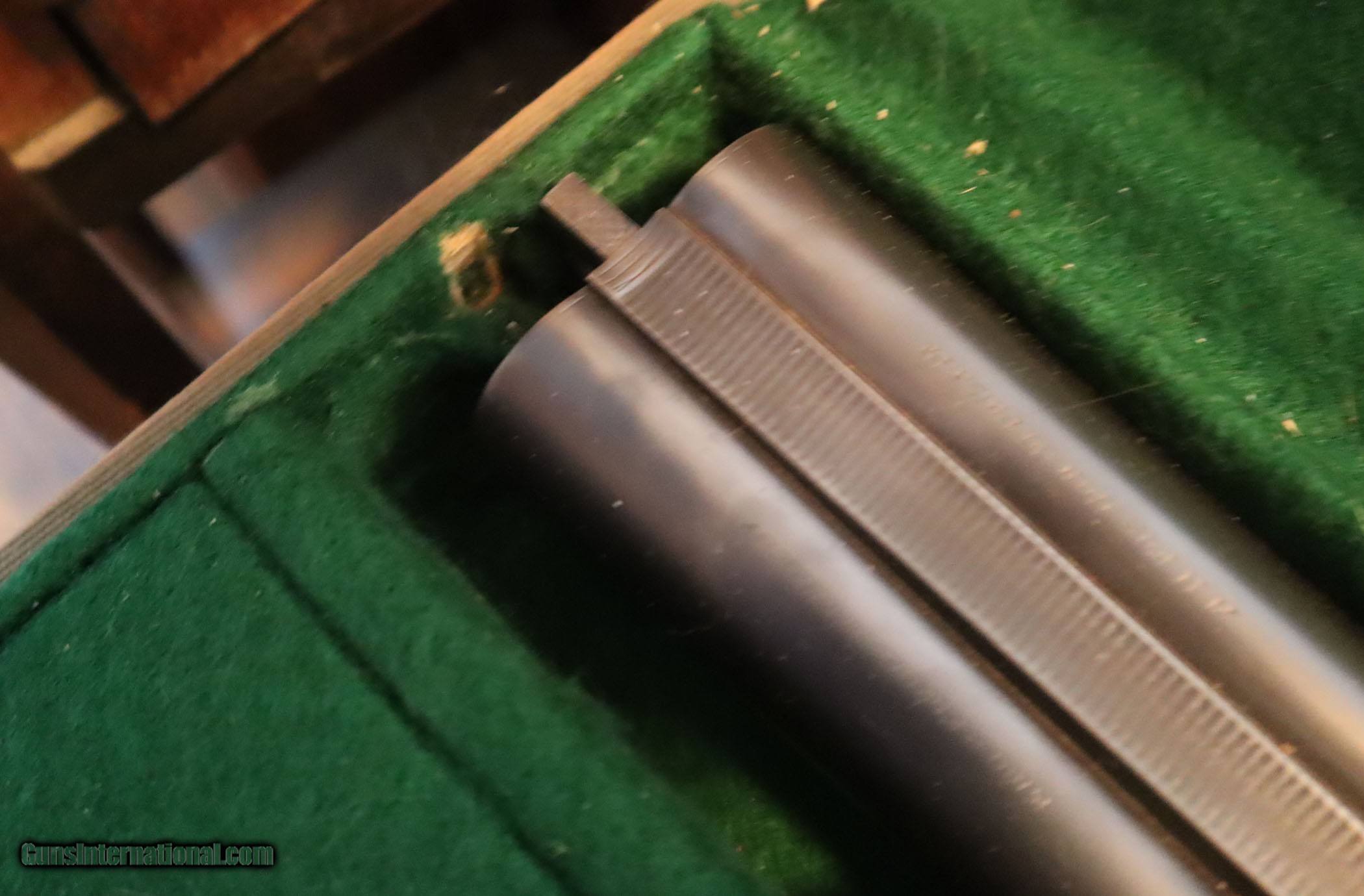 Description: This is an early style engraving, 12 ga. It has been ( almost ) totally redone. As new condition. Engraving has been recut, case color redone and barrels reblued. I did nothing to the stock except add a spacer and new recoil pad to match my long neck and monkey arms.This gun was in ex-fine condition when I bought it and had all the work done as a project for myself. No interior metal work was recommended when dissasembled for cleaning and case color. I bought a case and a repro Fox tag. Ive had this gun in this condition for 30+ years. It has been to the range 1 times and the field 2 times. It has been in the case unused for 22 years and taken out only to rub down or show off.. I was an avid bird hunter and collector for 45 years but now my Boykin is past his prime and maybe so am I. I have no plans for another dog The stock was not cut or replaced and the spacer can be removed if needed. The travel case is loosing color, I suspect dust, it has not been in sunlight. Also the is a rub on the felt in the case. See photo. My collection gets a rub down on the stocks every several years and a very light coat of linseed oil and wax before the season but this gun has never needed it.If your looking for a premier example of this type this is it. Make offer SOLD Curio/Relic: Yes Shotgun Gauge: 12 Gauge Manufacturer: Ansley H Fox Model: A Serial Number: 2107 Barrel Length: 30 Bore: 12 Chambers: 2.75 Ejectors: No Condition: Ex+ Metal Condition: EX+ Wood Condition: VF Bore Condition: EX+ Barrels: double Barrel Type: Krupp Fluid Steel Action: boxlock Triggers: double Stock: walnut Stock Drop: 3 Stock Comb: 1.75 Stock Heel: 3 Stock Cast: 0 Fore End: splinter Butt Pad: English decelerator LOP: 14.75 Rib: matted Finish: blue Weight: 7lb 12 oz Sights: ivory bead Manufacture Date: unknown Chokes: MF Choke Left: F Choke Right: M Engraving: EX+ Extras: Reblue and case color Case: EX+ Item Location: MD |