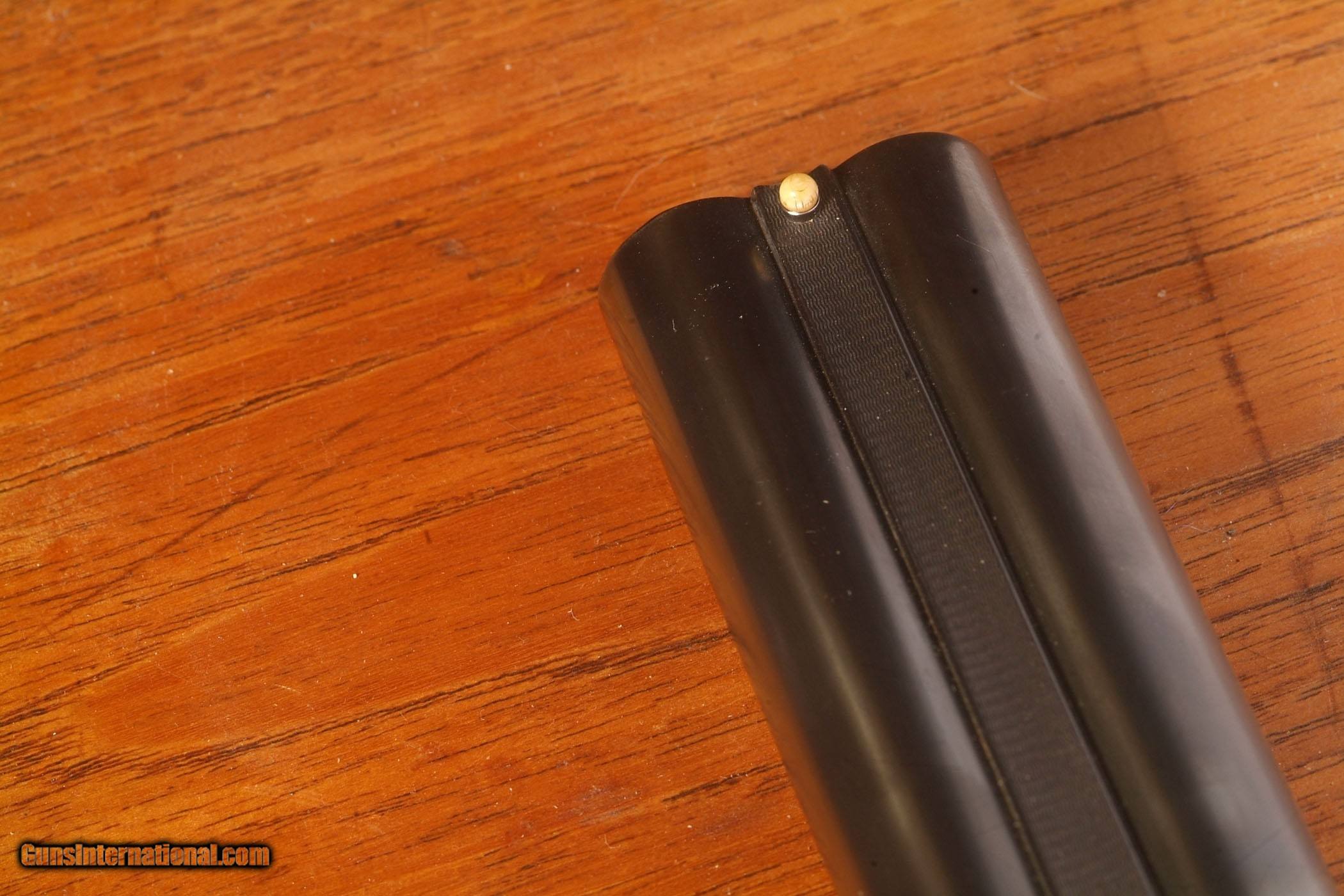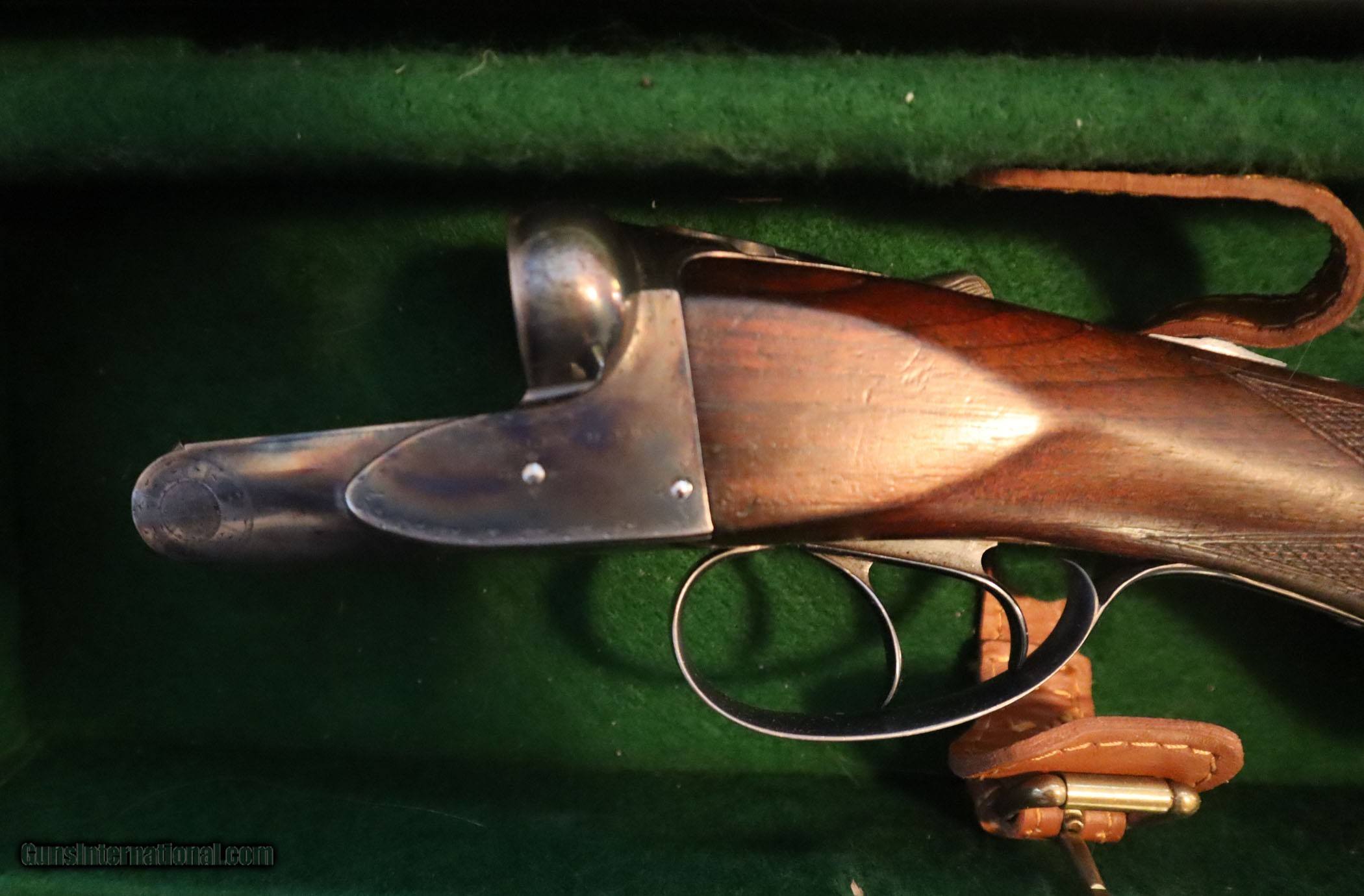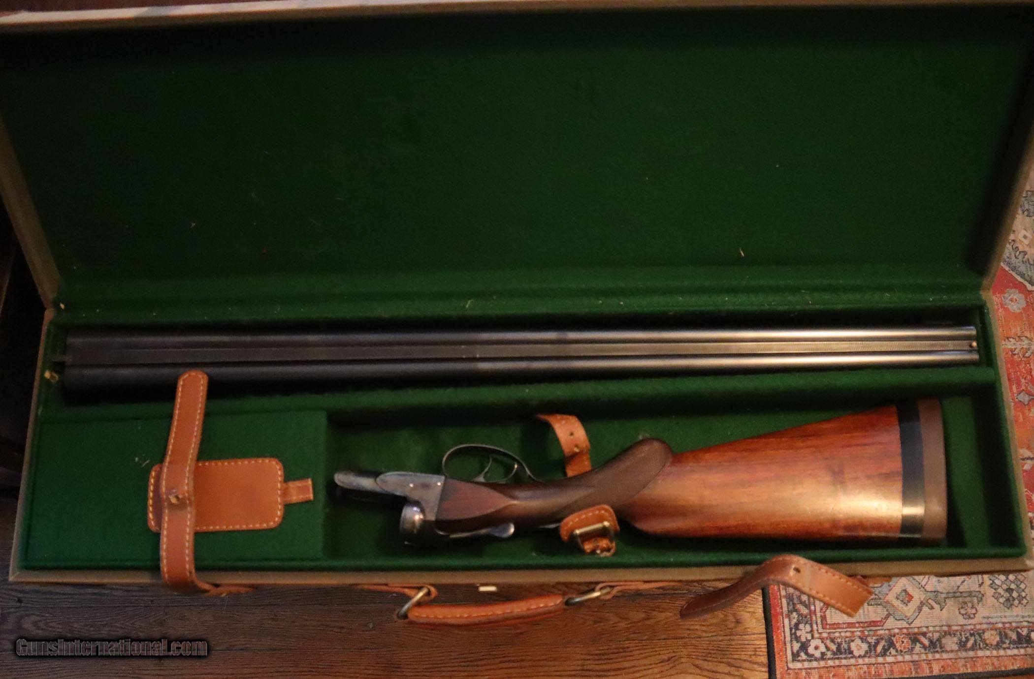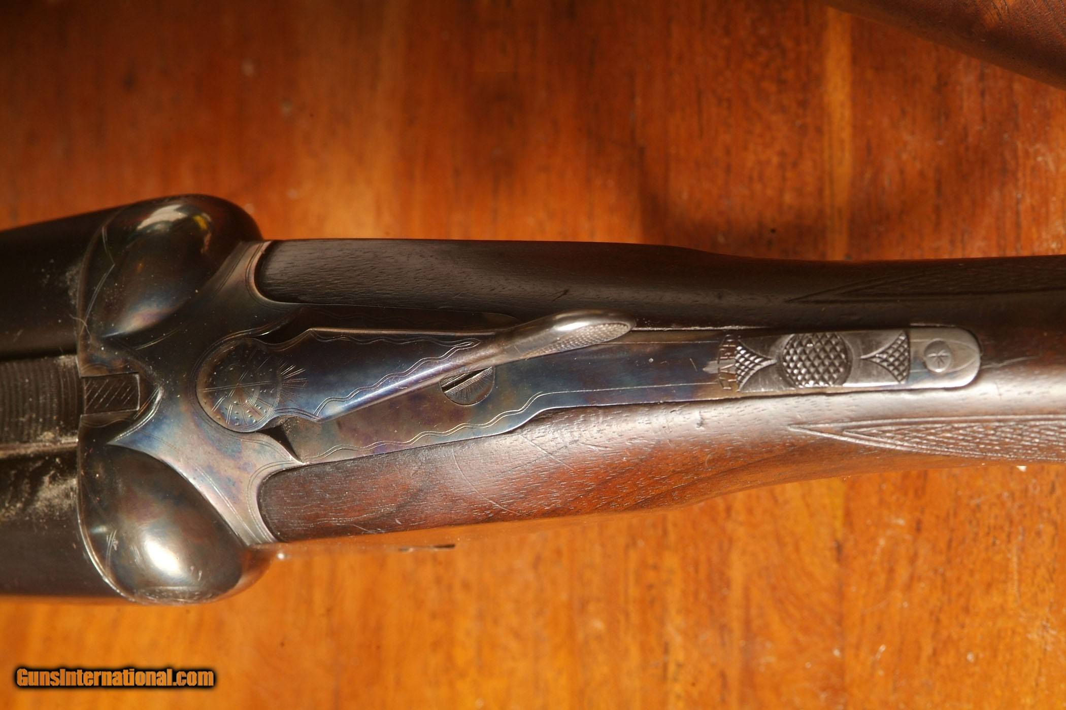 Description: This is an early style engraving, 12 ga. It has been ( almost ) totally redone. As new condition. Engraving has been recut, case color redone and barrels reblued. I did nothing to the stock except add a spacer and new recoil pad to match my long neck and monkey arms.This gun was in ex-fine condition when I bought it and had all the work done as a project for myself. No interior metal work was recommended when dissasembled for cleaning and case color. I bought a case and a repro Fox tag. Ive had this gun in this condition for 30+ years. It has been to the range 1 times and the field 2 times. It has been in the case unused for 22 years and taken out only to rub down or show off.. I was an avid bird hunter and collector for 45 years but now my Boykin is past his prime and maybe so am I. I have no plans for another dog The stock was not cut or replaced and the spacer can be removed if needed. The travel case is loosing color, I suspect dust, it has not been in sunlight. Also the is a rub on the felt in the case. See photo. My collection gets a rub down on the stocks every several years and a very light coat of linseed oil and wax before the season but this gun has never needed it.If your looking for a premier example of this type this is it. Make offer SOLD Curio/Relic: Yes Shotgun Gauge: 12 Gauge Manufacturer: Ansley H Fox Model: A Serial Number: 2107 Barrel Length: 30 Bore: 12 Chambers: 2.75 Ejectors: No Condition: Ex+ Metal Condition: EX+ Wood Condition: VF Bore Condition: EX+ Barrels: double Barrel Type: Krupp Fluid Steel Action: boxlock Triggers: double Stock: walnut Stock Drop: 3 Stock Comb: 1.75 Stock Heel: 3 Stock Cast: 0 Fore End: splinter Butt Pad: English decelerator LOP: 14.75 Rib: matted Finish: blue Weight: 7lb 12 oz Sights: ivory bead Manufacture Date: unknown Chokes: MF Choke Left: F Choke Right: M Engraving: EX+ Extras: Reblue and case color Case: EX+ Item Location: MD |
