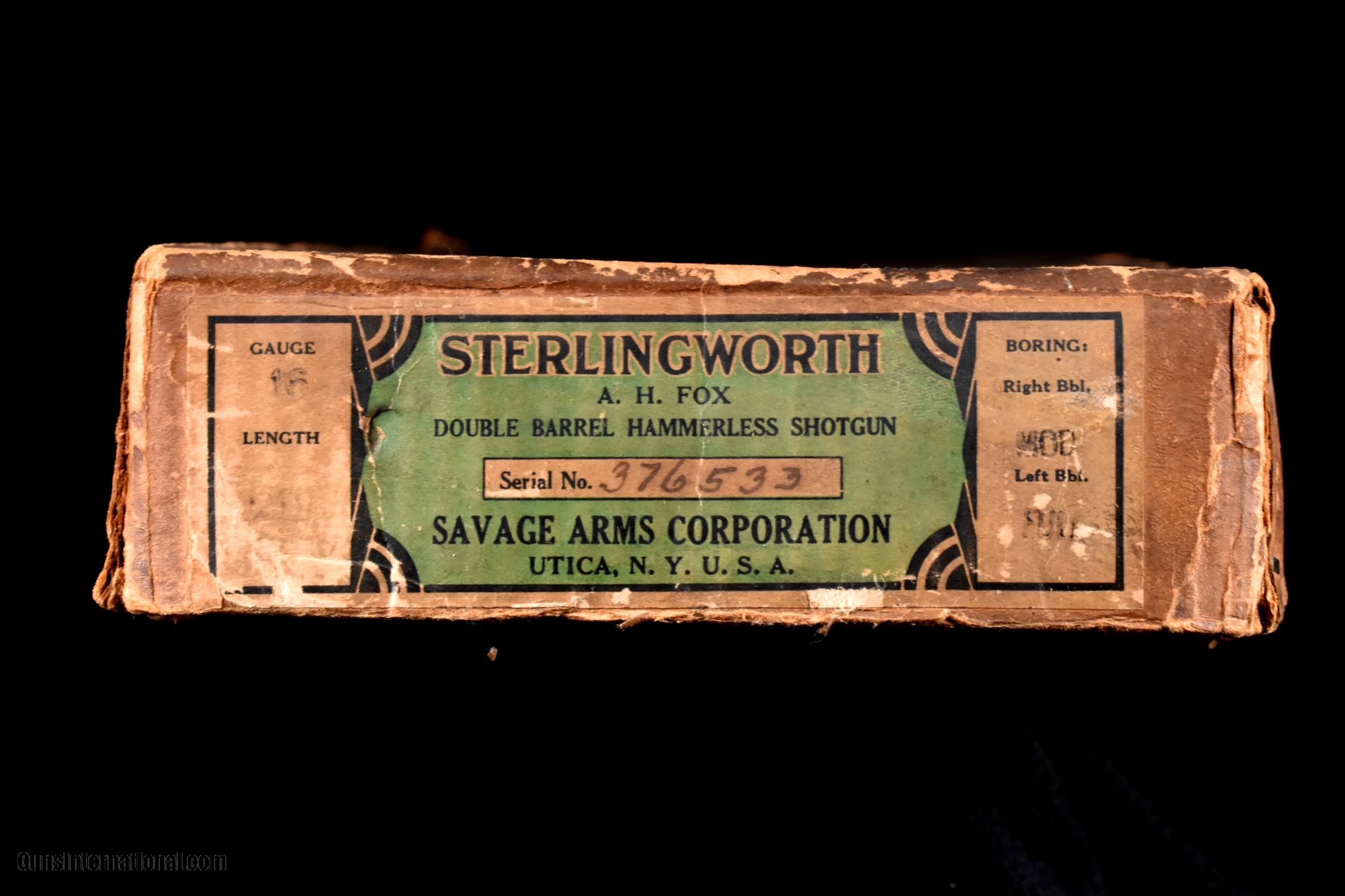 Exceptional and near mint Fox Sterlingworth 16ga with original shipping box!