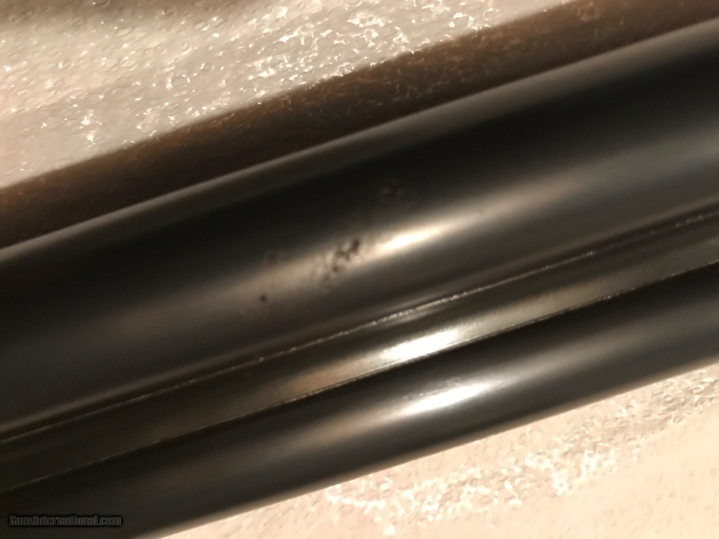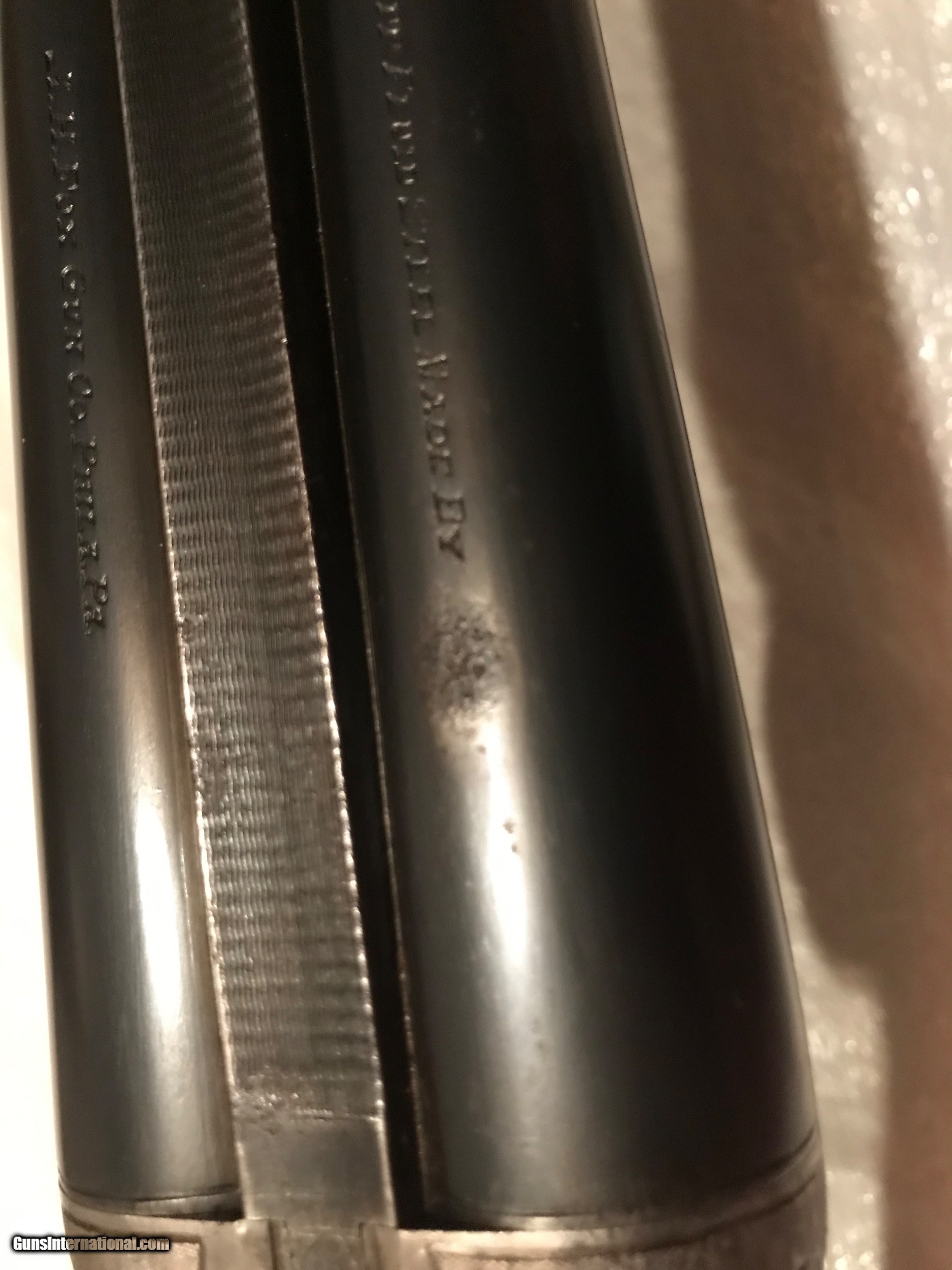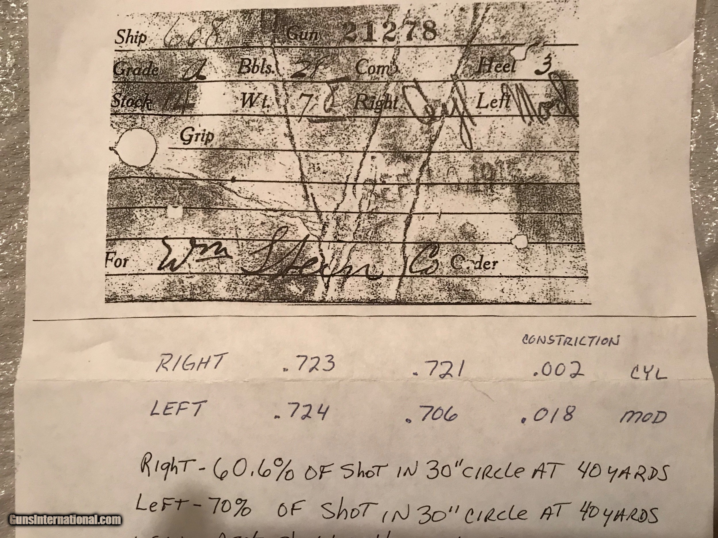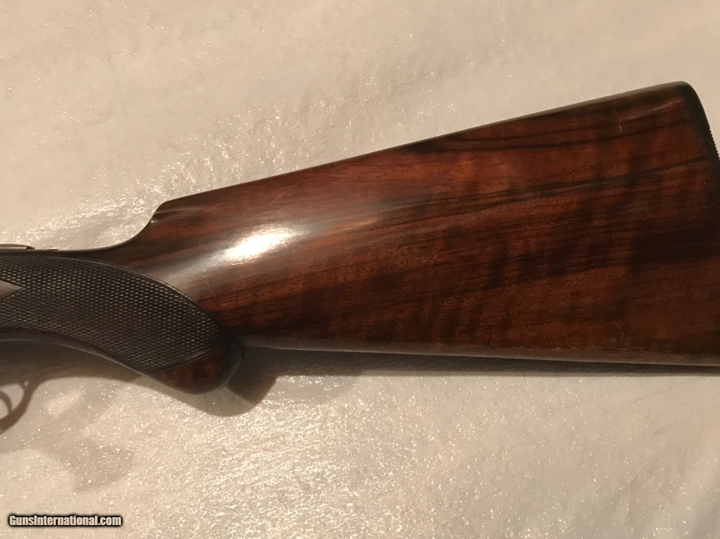 Description: Fox A grade with nice dark striped stock. Freshly blued barrels with two small rust spots as seen in pictures. $45.00 shipping. SOLD Curio/Relic: Yes Manufacturer: Fox Model: A grade Chambers: 2 3/4” Ejectors: No Metal Condition: Good Wood Condition: Good Bore Condition: Mirror Gauge Info: 12 Stock Comb: 1 5/8” Stock Heel: 3” LOP: 14 Weight: 7lb. 8oz. Choke Left: .018”mod Choke Right: .002” cyl. |