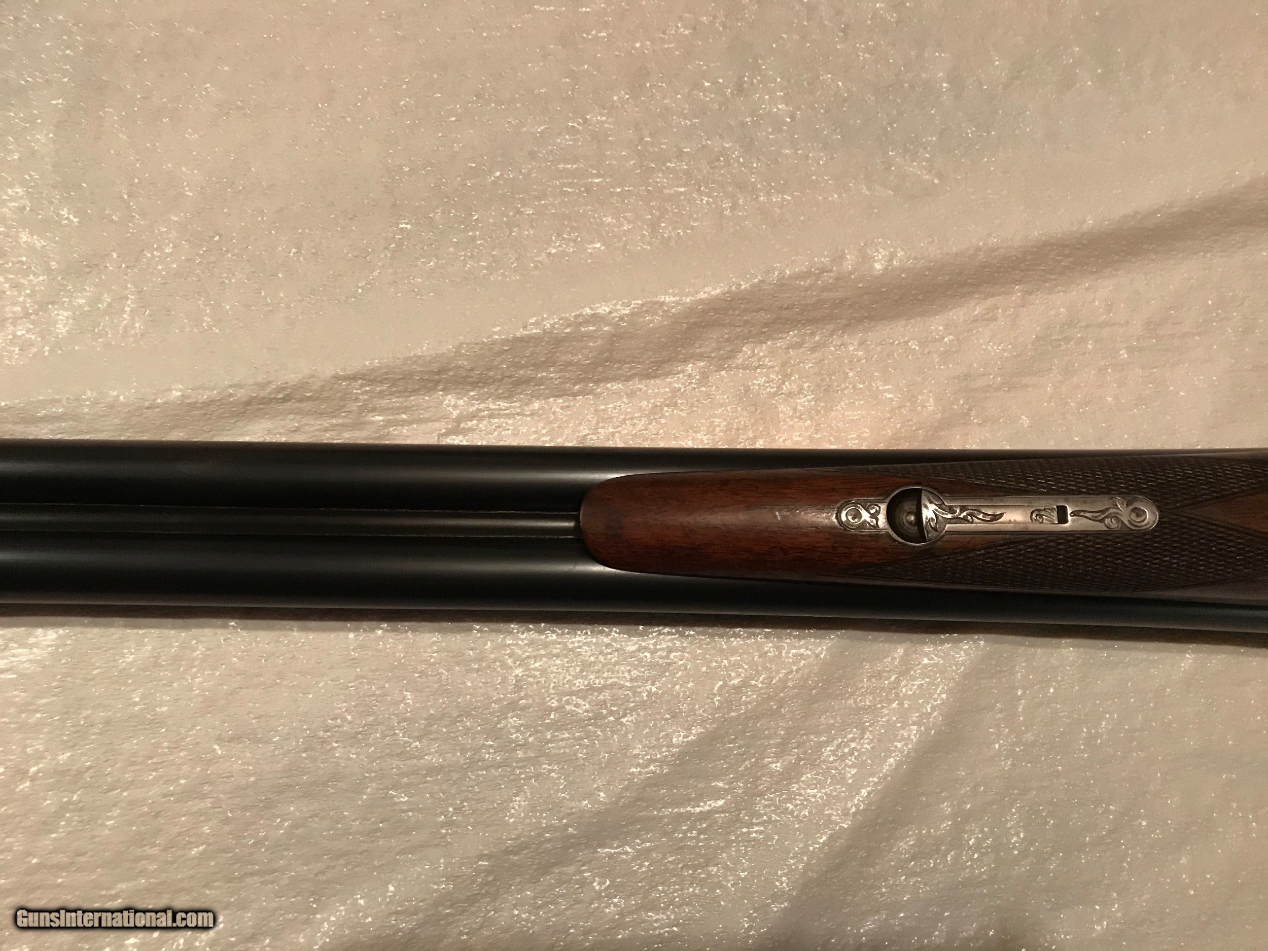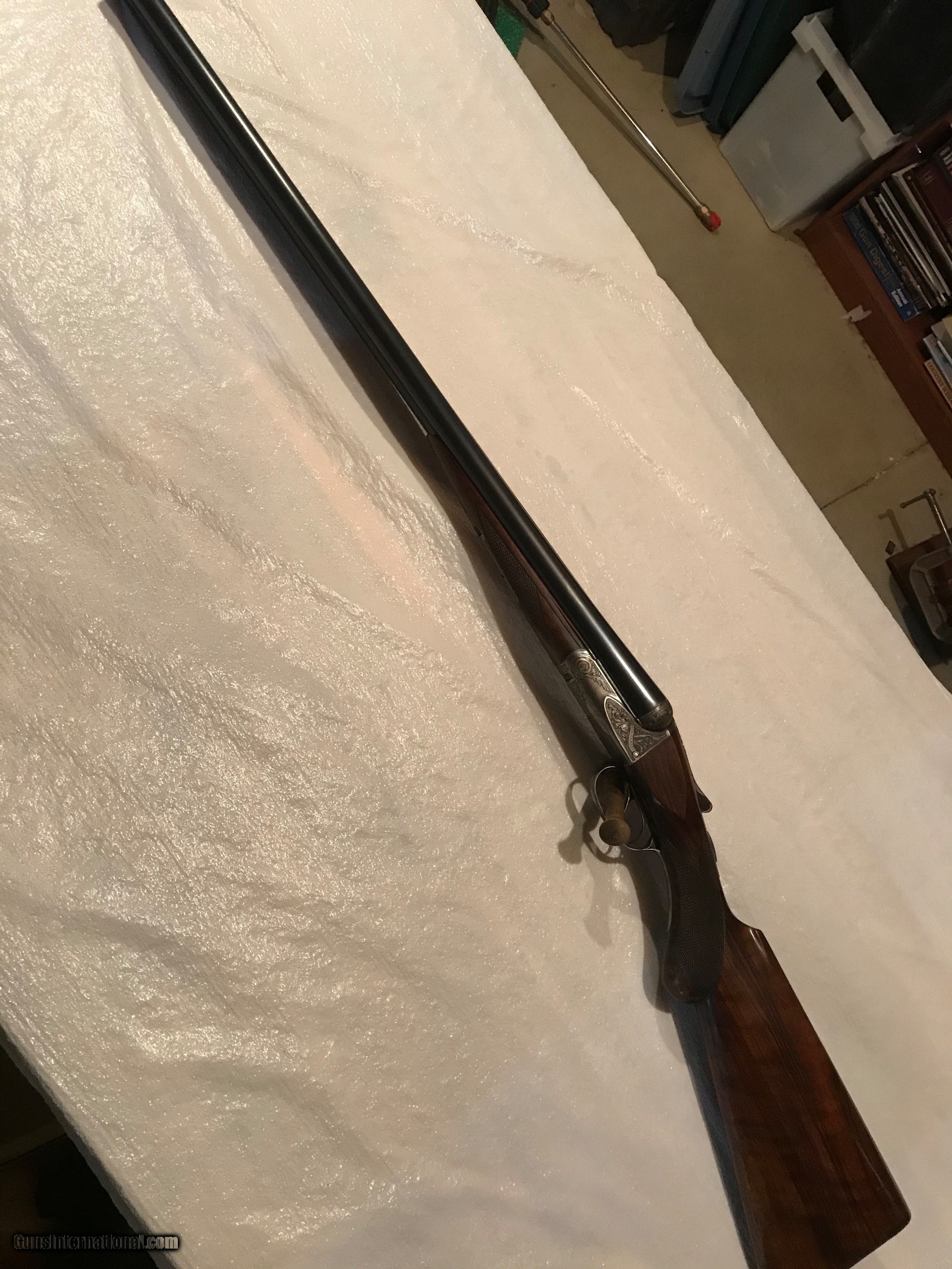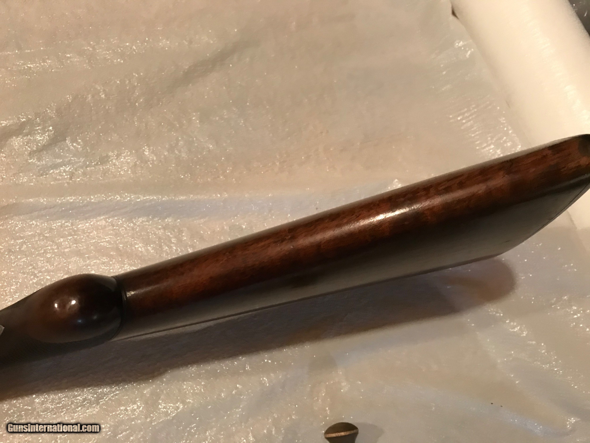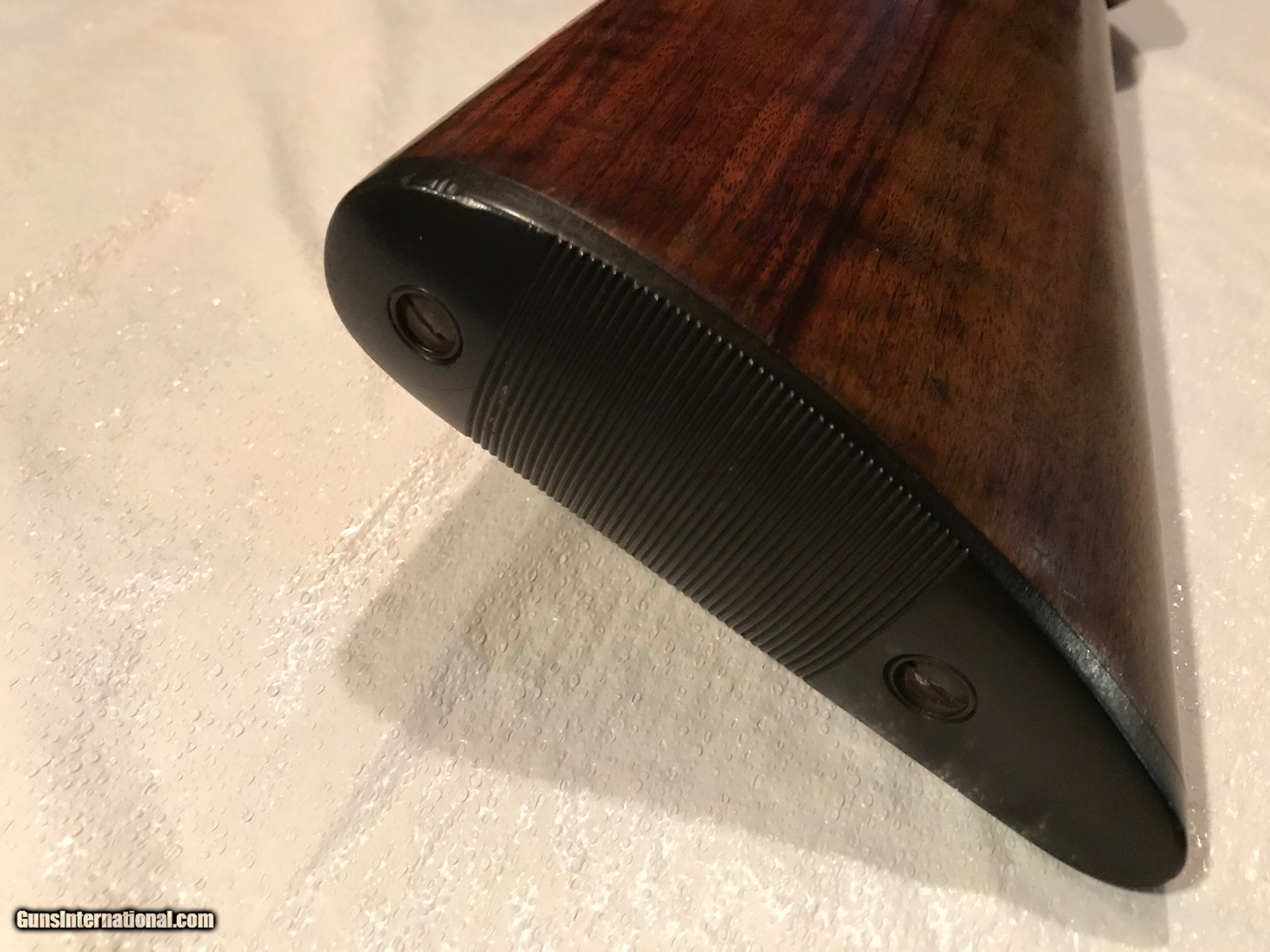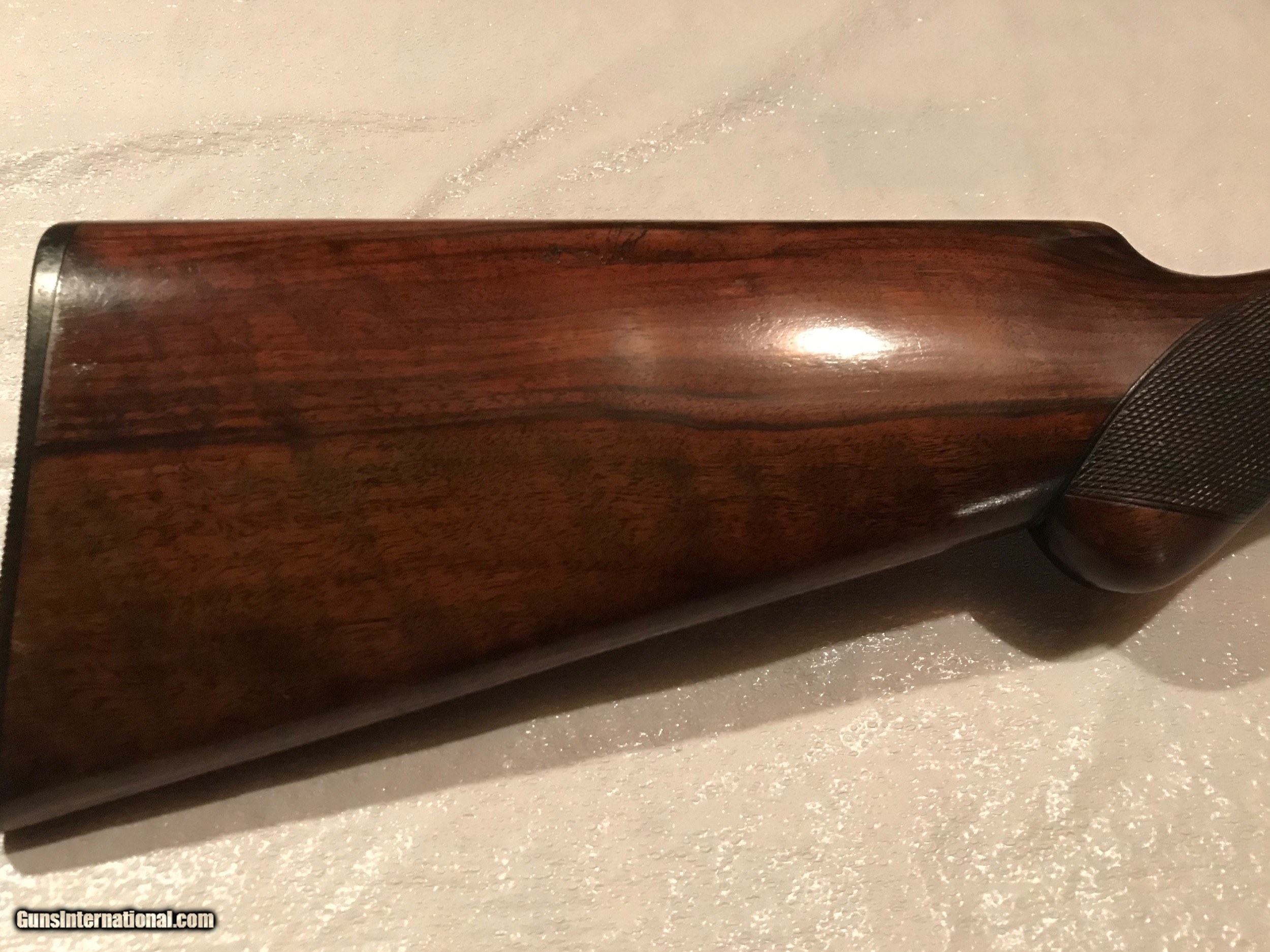 Description: Fox A grade with nice dark striped stock. Freshly blued barrels with two small rust spots as seen in pictures. $45.00 shipping. SOLD Curio/Relic: Yes Manufacturer: Fox Model: A grade Chambers: 2 3/4” Ejectors: No Metal Condition: Good Wood Condition: Good Bore Condition: Mirror Gauge Info: 12 Stock Comb: 1 5/8” Stock Heel: 3” LOP: 14 Weight: 7lb. 8oz. Choke Left: .018”mod Choke Right: .002” cyl. |