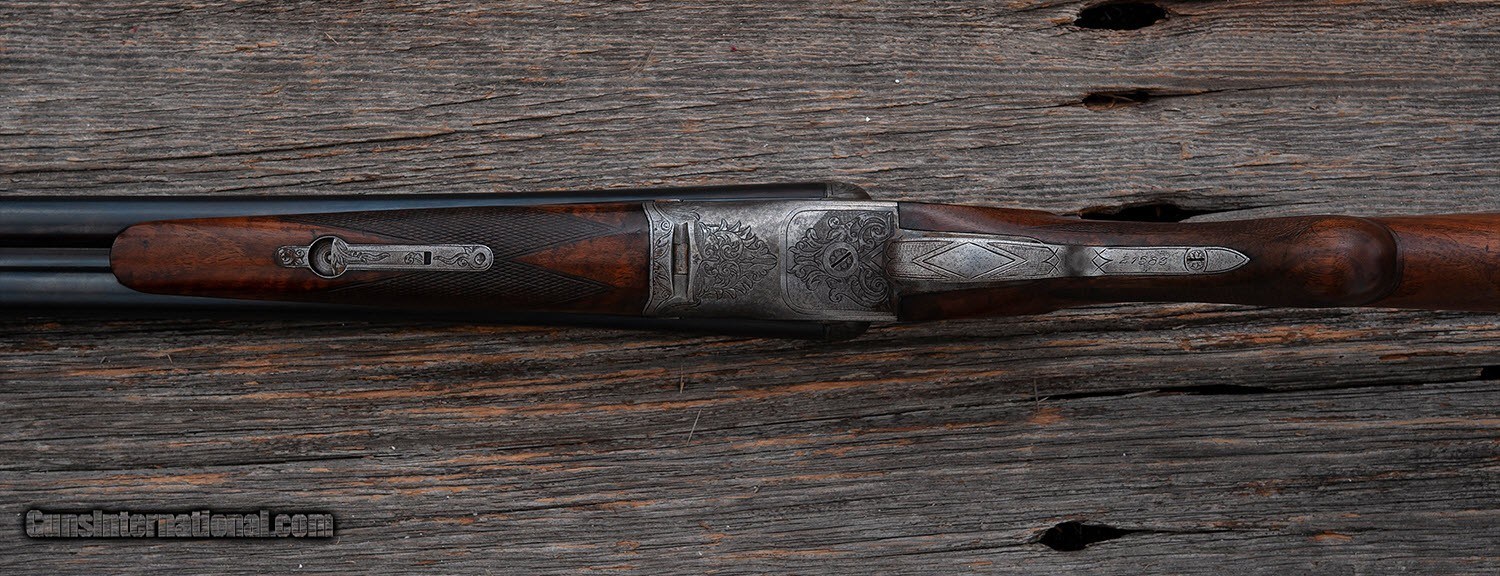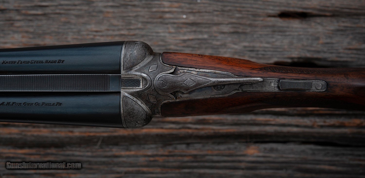 Description: Fox - A Grade - 12 ga - Item Number: FOX21583 Shotgun type: SxS Action: Boxlock Ejectors: No Trigger: Double Grip: Round Knob Pistol Grip Forend: Checkered Lop: 14 1/8 " Pad thickness: 0.75 " Type of butt: Rubber Pad Drop comb: 1 1/2 " Drop heel: 2 3/4 " Cast amount: 1/8 " Cast: Off Weight: 7 lbs, 4 oz Manufactured in: USA Finish: Case Colored Overall condition: Good Stock condition: Good Metal condition: Good Stock: Original finish Metal: Original finish Type of Case: none Extra barrels: 0 Barrel info: Gauge: 12 ga Chamber: 2 5/8 " Length: 28 " Chokes: M/M Rib type: Concave Comments : Gun is in good condition. Stock has been repaired behind the action. SG-131 SOLD Curio/Relic: Yes |