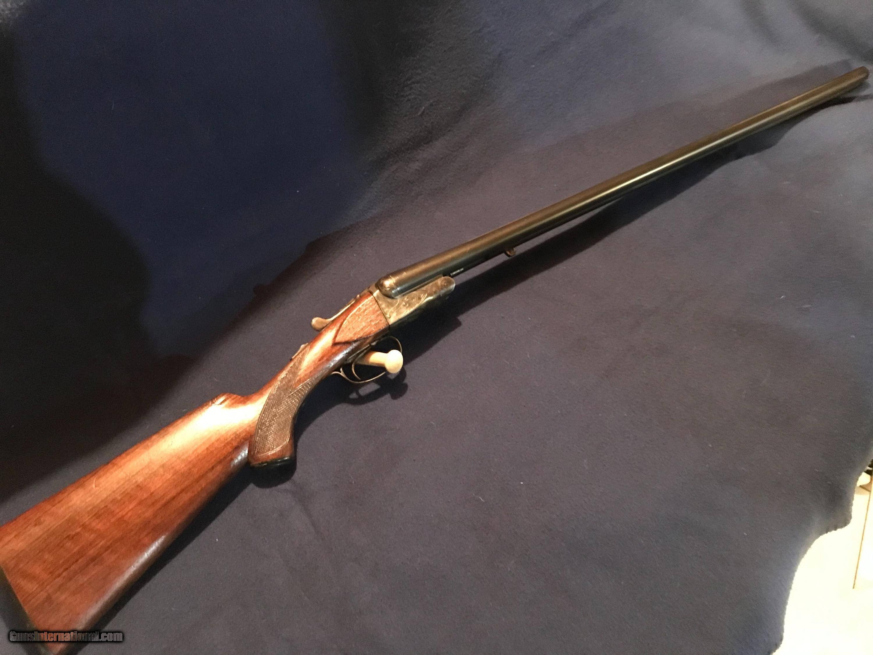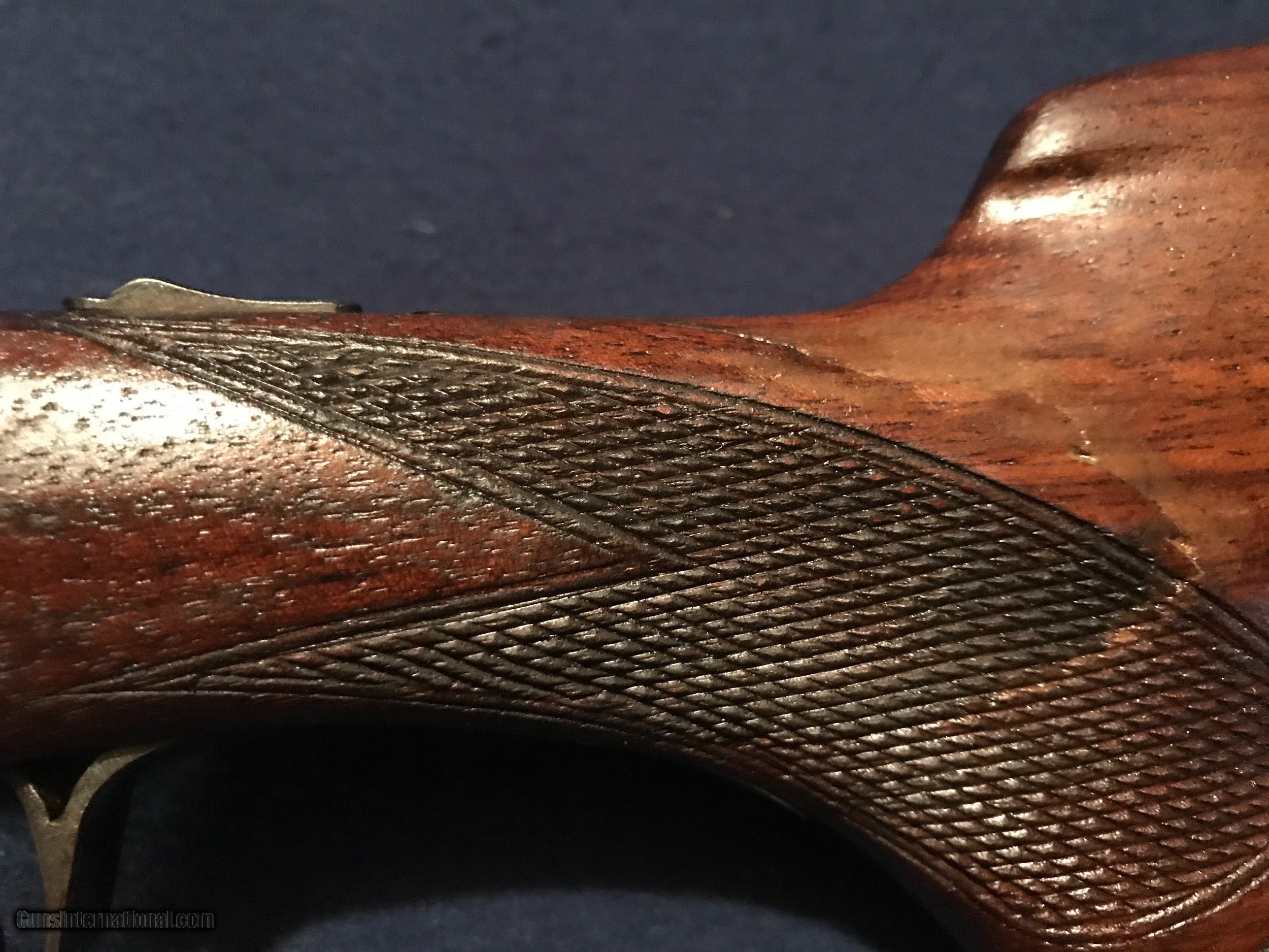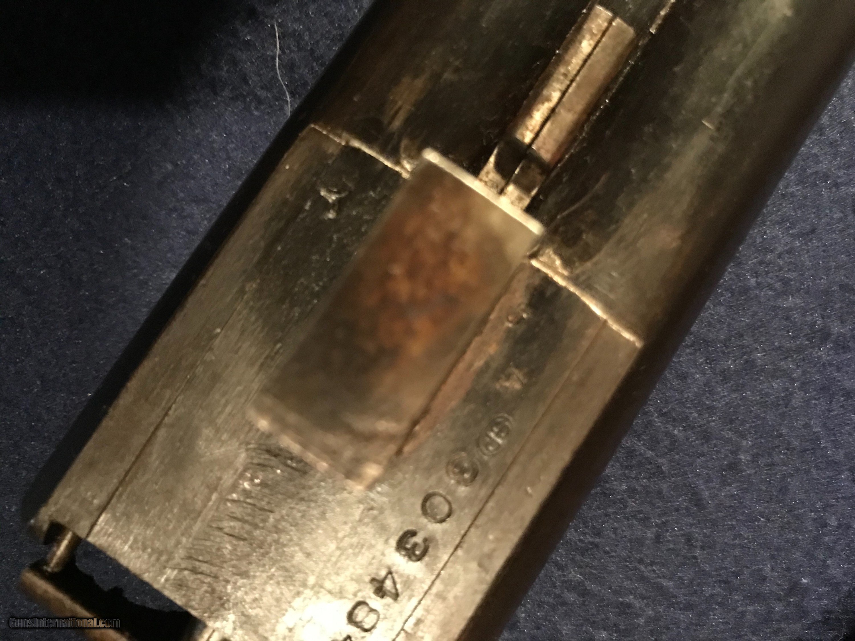 Description: Sold pending. Missing forend. 28"barrels,single selective trigger great bores,choked mod.and extra full. No dents bluing is thin pitting on outside both barrels by action some pitting where action meets forend. Large crack in pistol grip. $50.00 shipping SOLD |