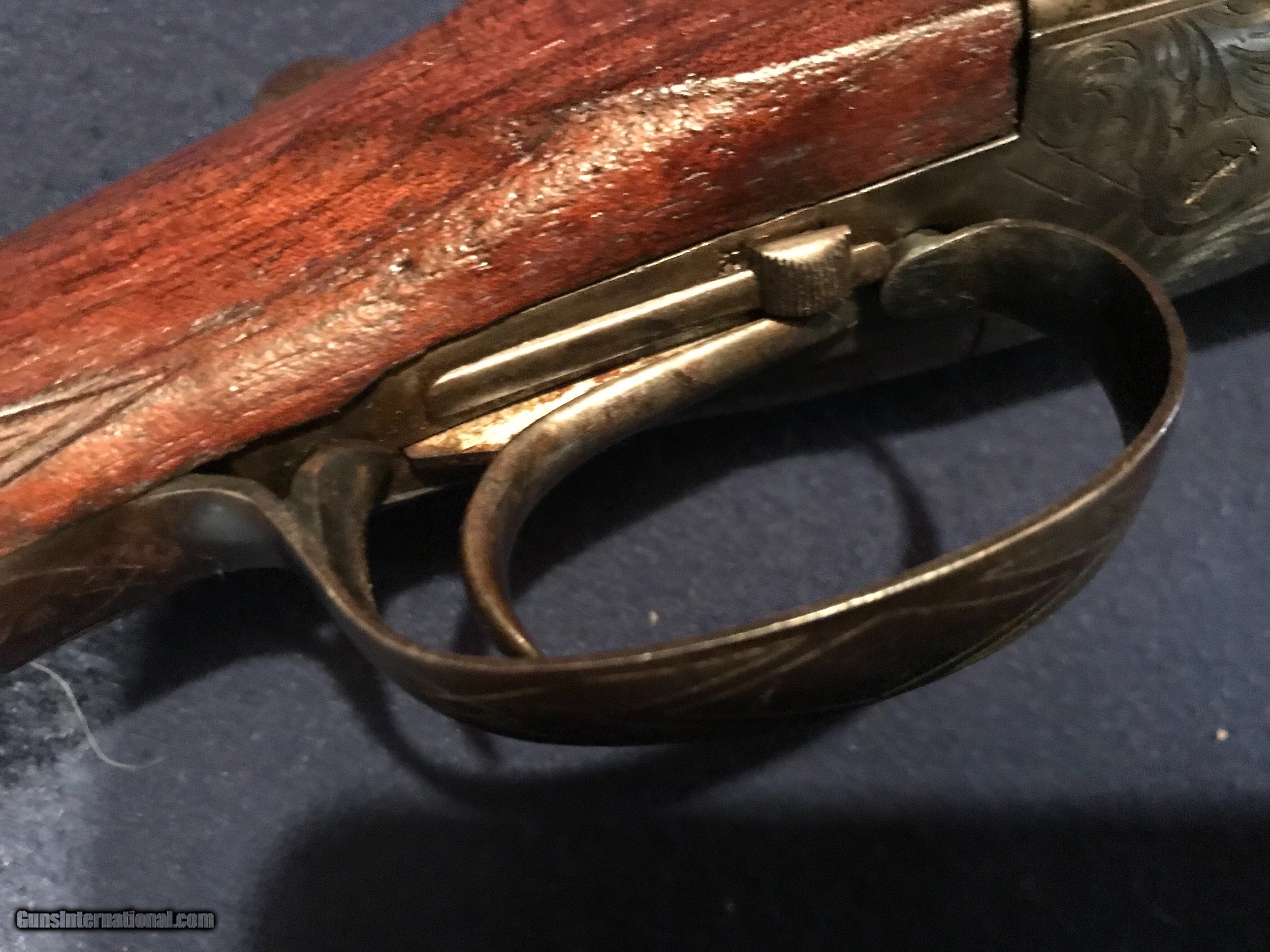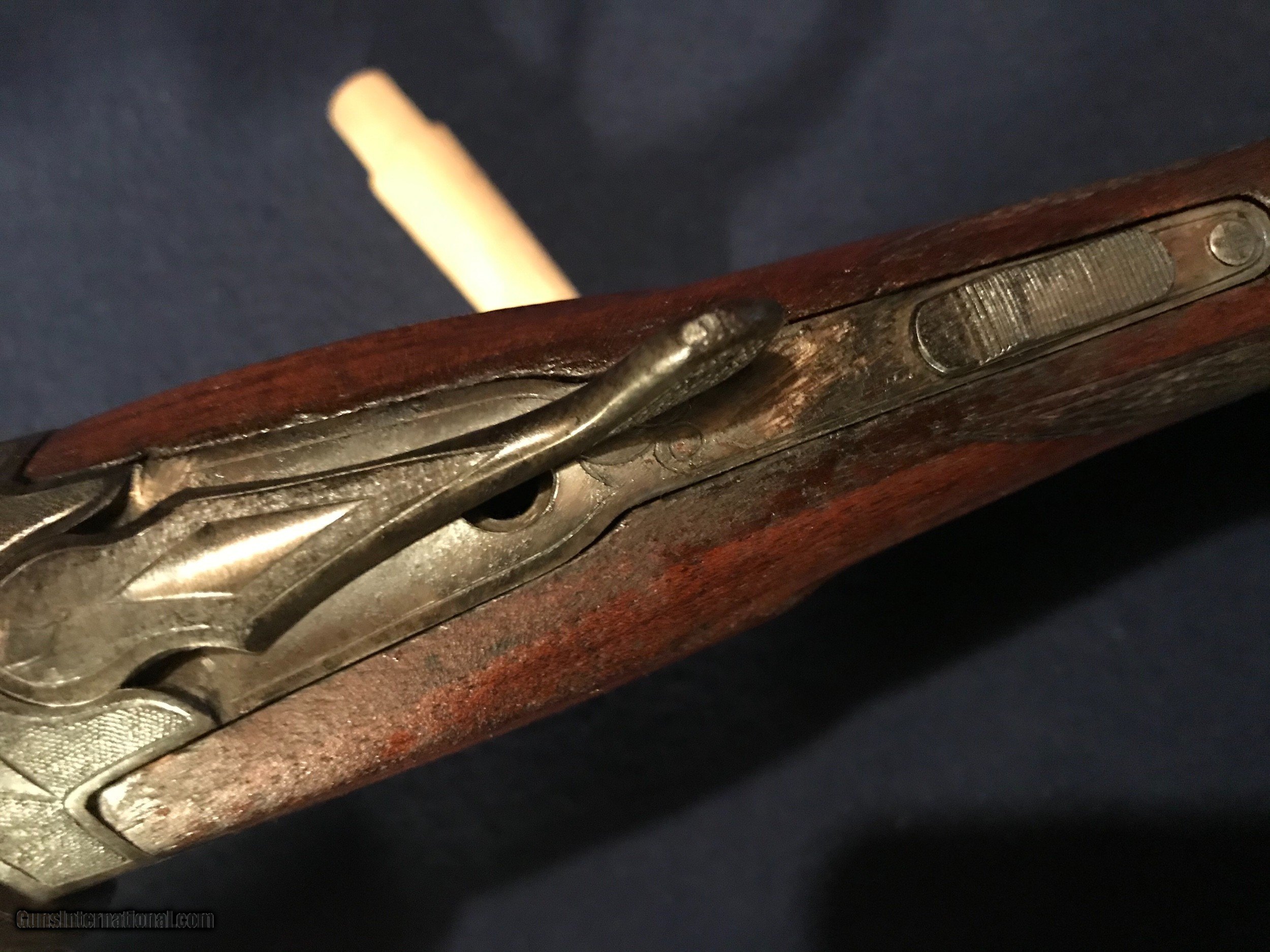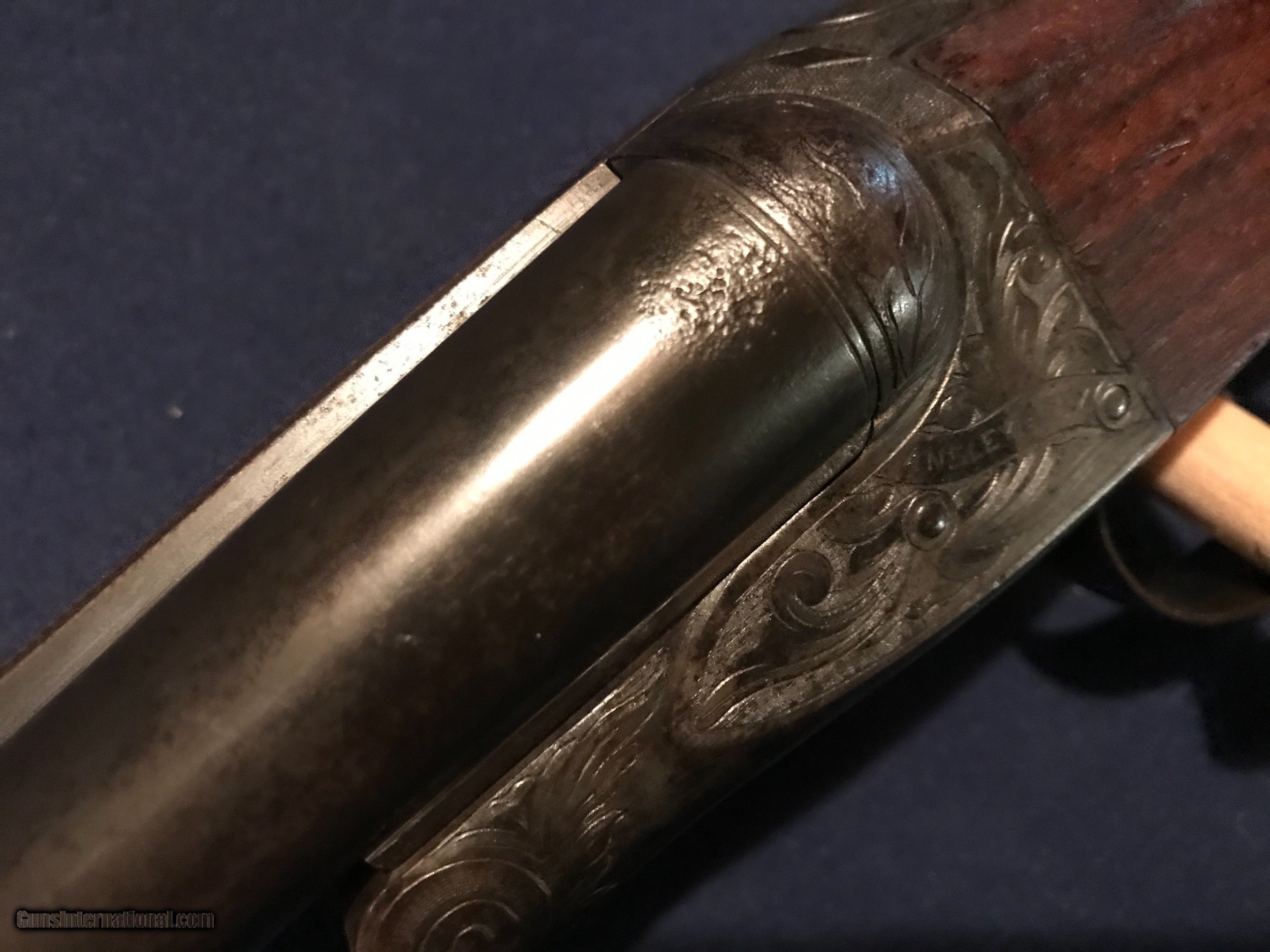 Description: Sold pending. Missing forend. 28"barrels,single selective trigger great bores,choked mod.and extra full. No dents bluing is thin pitting on outside both barrels by action some pitting where action meets forend. Large crack in pistol grip. $50.00 shipping SOLD |