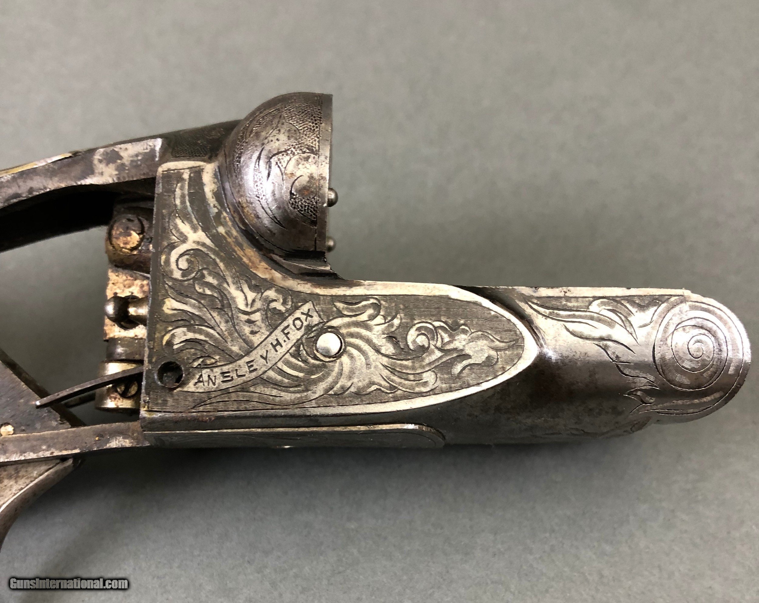 Description: Fox A grade 16 gauge with 30" barrels. I bought this as a project gun but I suppose it could be considered a parts gun as well. Everything is here except the butt stock. All serial numbers match and all screws are included, along with the original and unaltered sears. The receiver has traces of case color left but the engraving is very sharp and crisp. The barrels are 30" original length with long choke tapers and uncut original short chambers. Bores are unhoned with no pitting, dings, or repaired dents. They absolutely ring like a church bell! There are no deep pits to take out anywhere on this gun. The barrels only need to be polished and rust blued. They are probably 2wt but aren't marked as such. They're not lightweight with wall thickness exceeding .040 most everywhere except for a couple of places on each with .038. The forend iron has no issues and is numbered to the gun. The wood is salvageable with stripping and recutting the checkering. There are no deep depressions to lift or cracks to repair. I had intended to convert this to a straight grip and restock, but adding this heavy set of 30s to an existing short barreled gun could be a cool option as well. I have seen the card and it was born as currently described. This gun must ship to an FFL or CR. California shippments will require an FFL. SOLD Curio/Relic: Yes Manufacturer: AH Fox Model: A Grade Serial Number: 301544 Ejectors: No Barrels: 30 Choke Left: .657 ( .031 ) Choke Right: .657 ( .020 ) Minimum Wall Thickness Left: .038 Minimum Wall Thickness Right: .038 |