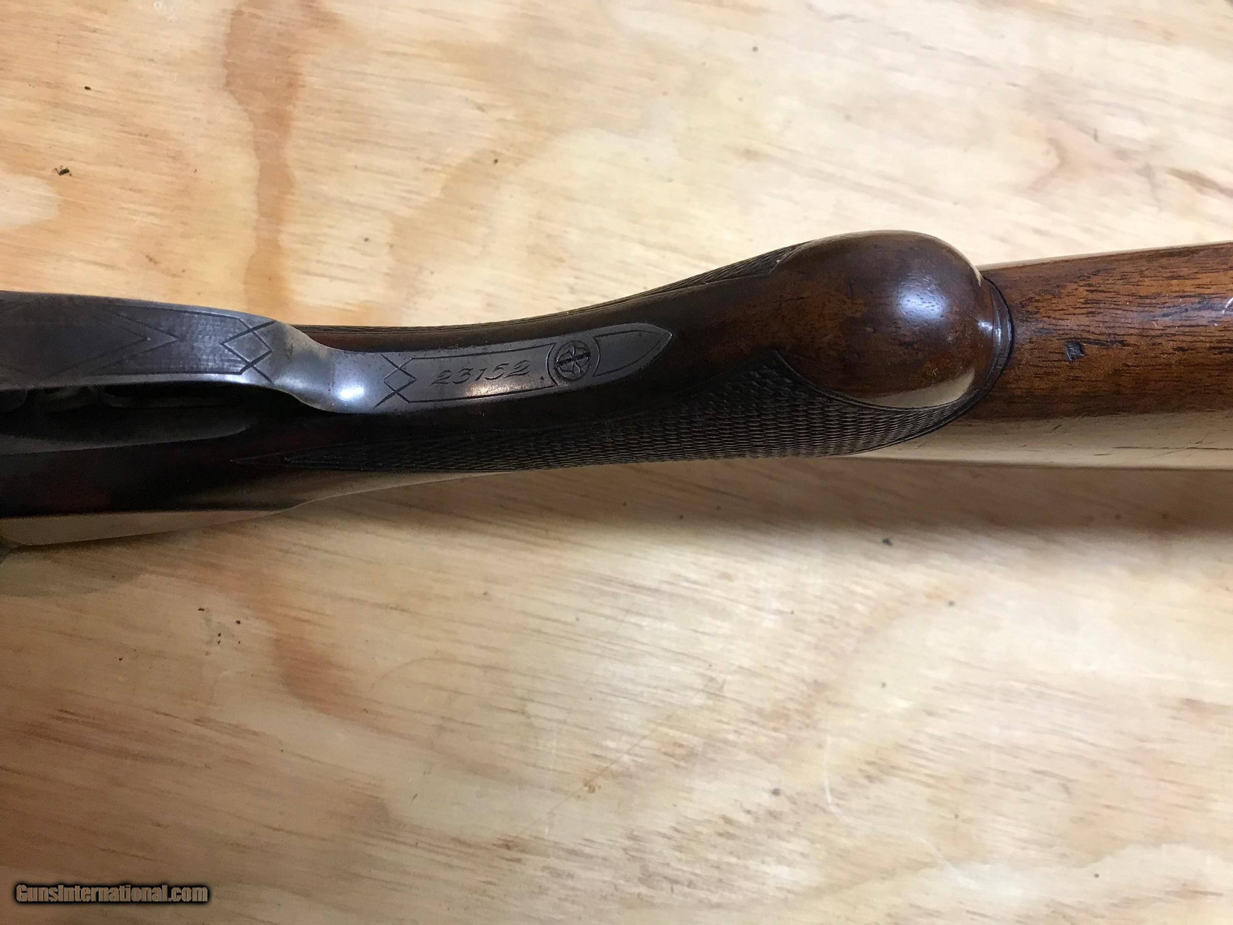 Description: Ansley H Fox A grade ejector. 12 gauge. 30 in barrels. Choked full and full. Semi pistol grip stock. Double triggers. Blueing on barrels excellent. wood is undamaged. SOLD Curio/Relic: Yes |