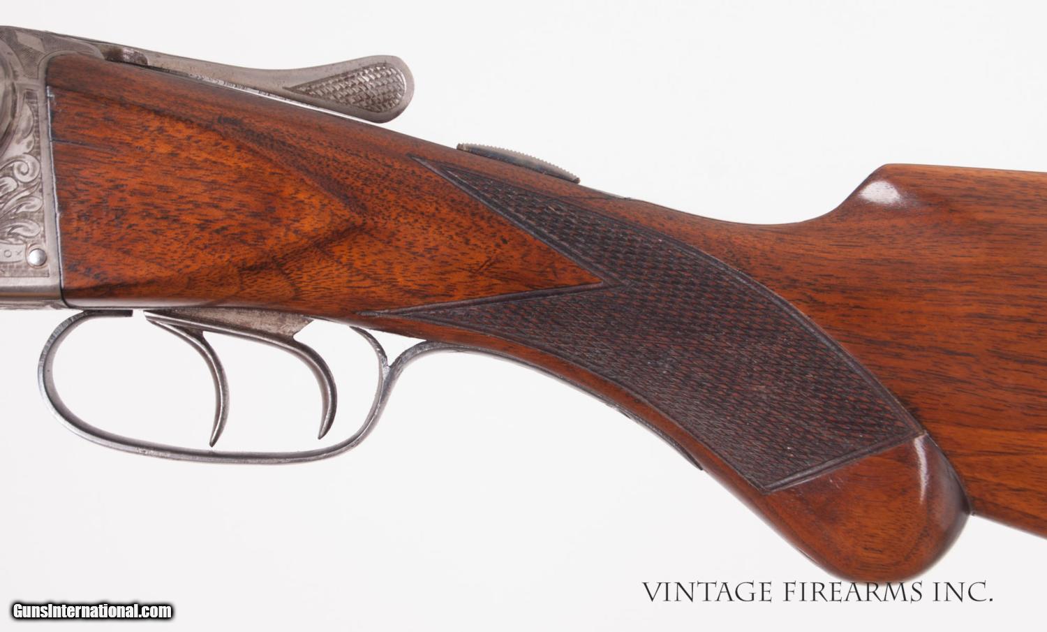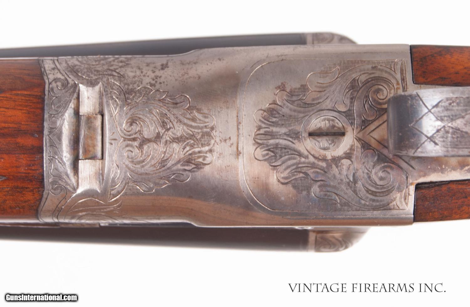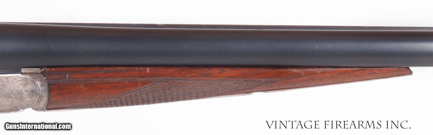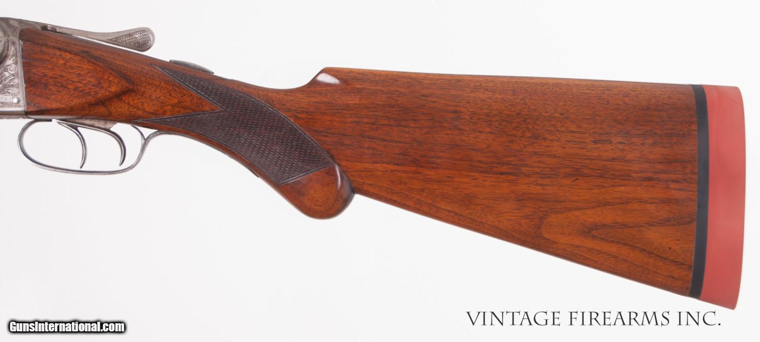 Description: Fox AE 12 Gauge SxS Shotgun 30" No. 2 WEIGHT BARRELS, NICE HONEST GUN General Specs: Fox, Year 1920, 12 Gauge, 7lbs 9oz, Side by Side Serial Number: 25513 Finding nice, original, unmolested graded Fox guns, even in 12ga., is getting more and more difficult these days. From waterfowl hunters, upland game chasers, to the sporting clays crowd, seems like everybody wants a nice original Fox with long barrels. This gun, sn25513 made in 1920 is just such a gun. This was a time period when Fox was producing really nice guns, and this one shows it. A gun made for heavier loads and game, with 30" number 2 weight barrels and weighing 7lbs. 9oz. balanced nicely just ahead of the hinge pin, this gun is an excellent candidate for the above mentioned pursuits. Best of all it has perfect screws and wood to metal fit, nice engraving and 97% original barrel blue remaining, strong mechanics with robust ejectors, and original factory wood. This is a gorgeous gun that has not been restored, showing it was well cared for throughout its 95 years of use. Now add nice modern stock dimensions and you have the ultimate, affordable A.H. Fox double gun. Fox guns have been continuously gaining value as you enjoy their use, and that makes this a very good investment gun. Thanks for looking! Barrels Barrel Length: 30" #2 wt Chokes: .037/.038 Bores: mirror Bore Diameter: .726/.727 Wall Thickness: .034/.033 % Blue: 98% factory Chambers: 2 5/8" Ribs: tight Sights: single Action Action: tight, way right of center Ejectors or Extractors: ejectors, strong timed Case Color: traces Screws: perfect Engraving: sharp clear Trigger Type: double, crisp Trigger Guard Color: 90% factory Stock Type: half round pistol grip/ splinter forend LOP: 14 3/8" LOP To End Of Wood: 13 1/4" DAH: 2 3/4" DAC: 1 5/8" Cast: neutral Checkering Condition: excellent Butt Treatment: new silvers buttpad There are more photos upon request. We offer a 30 day mechanical warranty on this fine shotgun. Call us for full details. PLEASE SEE MY OTHER FINE VINTAGE FIREARMS. Just open one of my ads and click on the line that says “see all items from this seller” and a very nice list of fine sporting and collectible arms will appear. I have many more fine sxs shotguns not yet listed. Thanks for looking! JOIN US at the LAS VEGAS ANTIQUE/SPORTING ARMS & CUSTOM KNIVES SHOW on January 22 - 24, 2016. It will be held at a new venue, the Westgate Resort & Casino in Las Vegas, NV! We employ a full time gunsmith on premises and can perform alterations to suit your needs within a few weeks of purchase. Payment Methods: Money Order, Certified Check, Personal Check, Wire Transfer Inspection Period / Return Policy: Three Days from the date the item was received. Sales Tax: 6% Michigan Only Shipping & Insurance: Ground $45.00 We ship internationally! Item Condition: Used Requires FFL?: Yes Other If you have any questions about this item or payment, please email me at jayvintagefirearmsinc or salesvintagefirearmsinc. You can also call us at #616-292- 6240. Please visit our at vintagefirearmsinc Thanks! Jay Shachter, Vintage Firearms, Inc SOLD Curio/Relic: Yes |