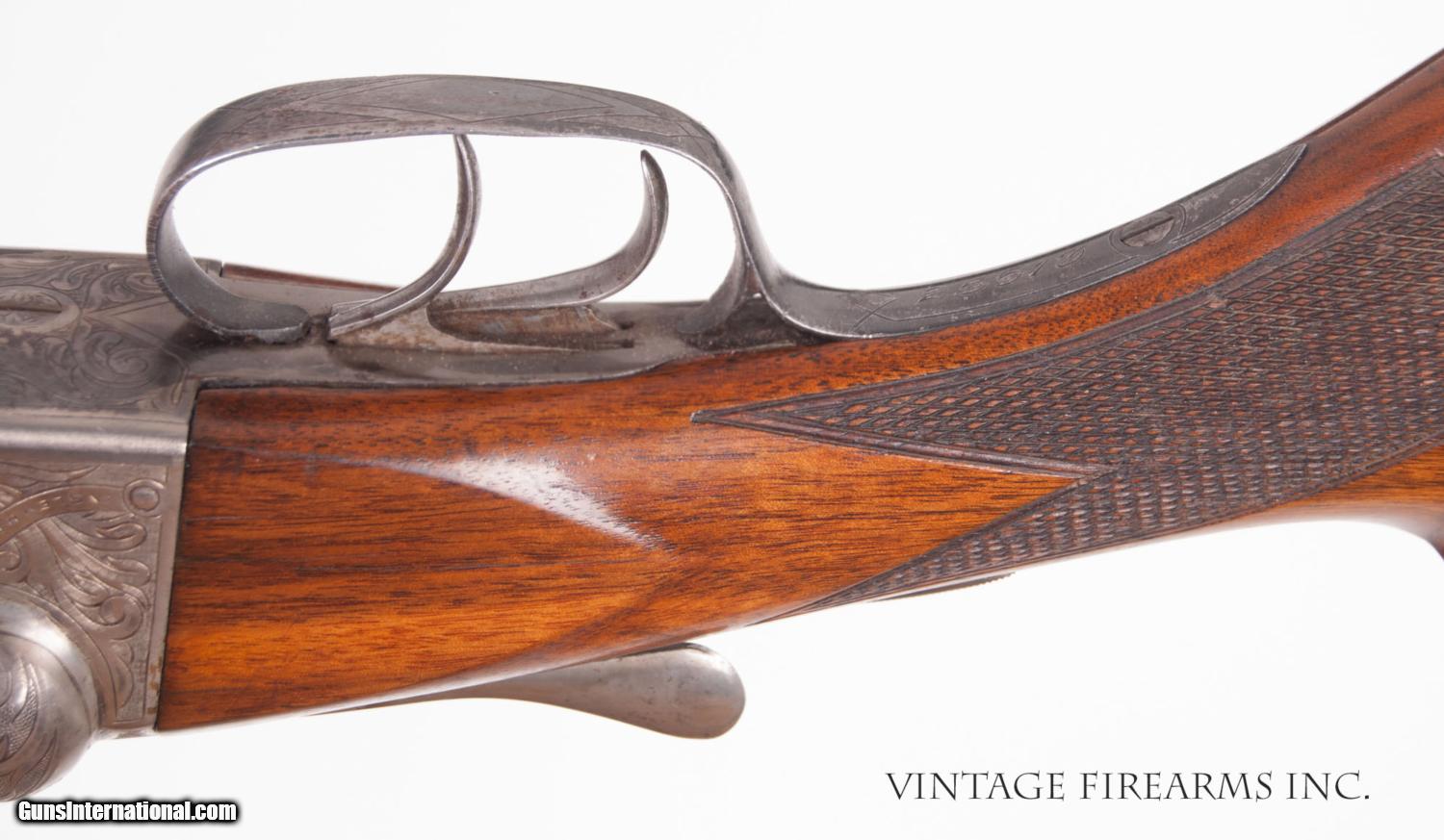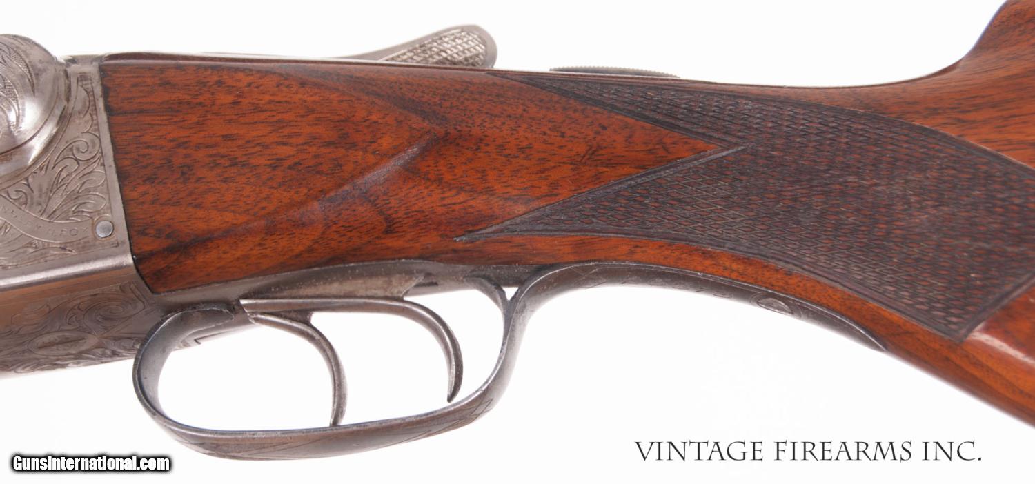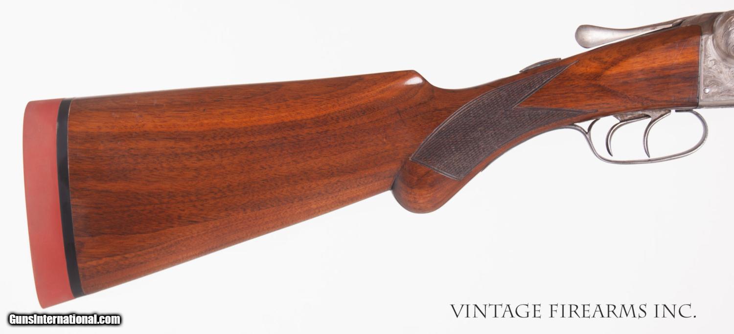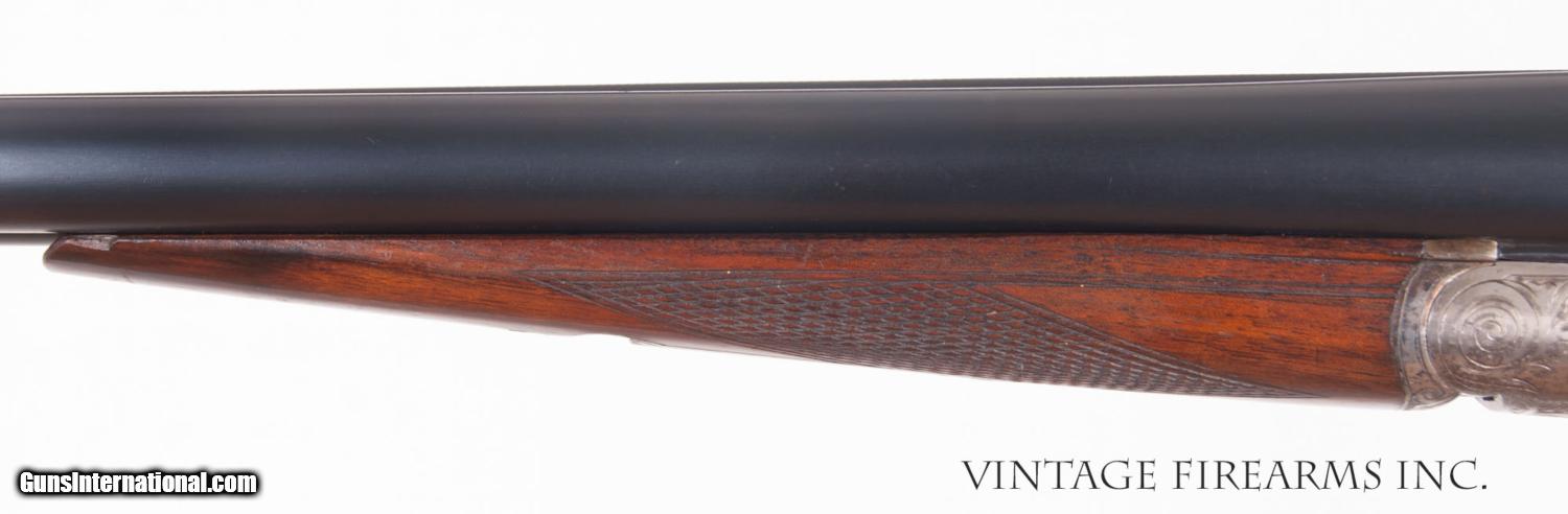 Description: Fox AE 12 Gauge SxS Shotgun 30" No. 2 WEIGHT BARRELS, NICE HONEST GUN General Specs: Fox, Year 1920, 12 Gauge, 7lbs 9oz, Side by Side Serial Number: 25513 Finding nice, original, unmolested graded Fox guns, even in 12ga., is getting more and more difficult these days. From waterfowl hunters, upland game chasers, to the sporting clays crowd, seems like everybody wants a nice original Fox with long barrels. This gun, sn25513 made in 1920 is just such a gun. This was a time period when Fox was producing really nice guns, and this one shows it. A gun made for heavier loads and game, with 30" number 2 weight barrels and weighing 7lbs. 9oz. balanced nicely just ahead of the hinge pin, this gun is an excellent candidate for the above mentioned pursuits. Best of all it has perfect screws and wood to metal fit, nice engraving and 97% original barrel blue remaining, strong mechanics with robust ejectors, and original factory wood. This is a gorgeous gun that has not been restored, showing it was well cared for throughout its 95 years of use. Now add nice modern stock dimensions and you have the ultimate, affordable A.H. Fox double gun. Fox guns have been continuously gaining value as you enjoy their use, and that makes this a very good investment gun. Thanks for looking! Barrels Barrel Length: 30" #2 wt Chokes: .037/.038 Bores: mirror Bore Diameter: .726/.727 Wall Thickness: .034/.033 % Blue: 98% factory Chambers: 2 5/8" Ribs: tight Sights: single Action Action: tight, way right of center Ejectors or Extractors: ejectors, strong timed Case Color: traces Screws: perfect Engraving: sharp clear Trigger Type: double, crisp Trigger Guard Color: 90% factory Stock Type: half round pistol grip/ splinter forend LOP: 14 3/8" LOP To End Of Wood: 13 1/4" DAH: 2 3/4" DAC: 1 5/8" Cast: neutral Checkering Condition: excellent Butt Treatment: new silvers buttpad There are more photos upon request. We offer a 30 day mechanical warranty on this fine shotgun. Call us for full details. PLEASE SEE MY OTHER FINE VINTAGE FIREARMS. Just open one of my ads and click on the line that says “see all items from this seller” and a very nice list of fine sporting and collectible arms will appear. I have many more fine sxs shotguns not yet listed. Thanks for looking! JOIN US at the LAS VEGAS ANTIQUE/SPORTING ARMS & CUSTOM KNIVES SHOW on January 22 - 24, 2016. It will be held at a new venue, the Westgate Resort & Casino in Las Vegas, NV! We employ a full time gunsmith on premises and can perform alterations to suit your needs within a few weeks of purchase. Payment Methods: Money Order, Certified Check, Personal Check, Wire Transfer Inspection Period / Return Policy: Three Days from the date the item was received. Sales Tax: 6% Michigan Only Shipping & Insurance: Ground $45.00 We ship internationally! Item Condition: Used Requires FFL?: Yes Other If you have any questions about this item or payment, please email me at jayvintagefirearmsinc or salesvintagefirearmsinc. You can also call us at #616-292- 6240. Please visit our at vintagefirearmsinc Thanks! Jay Shachter, Vintage Firearms, Inc SOLD Curio/Relic: Yes |