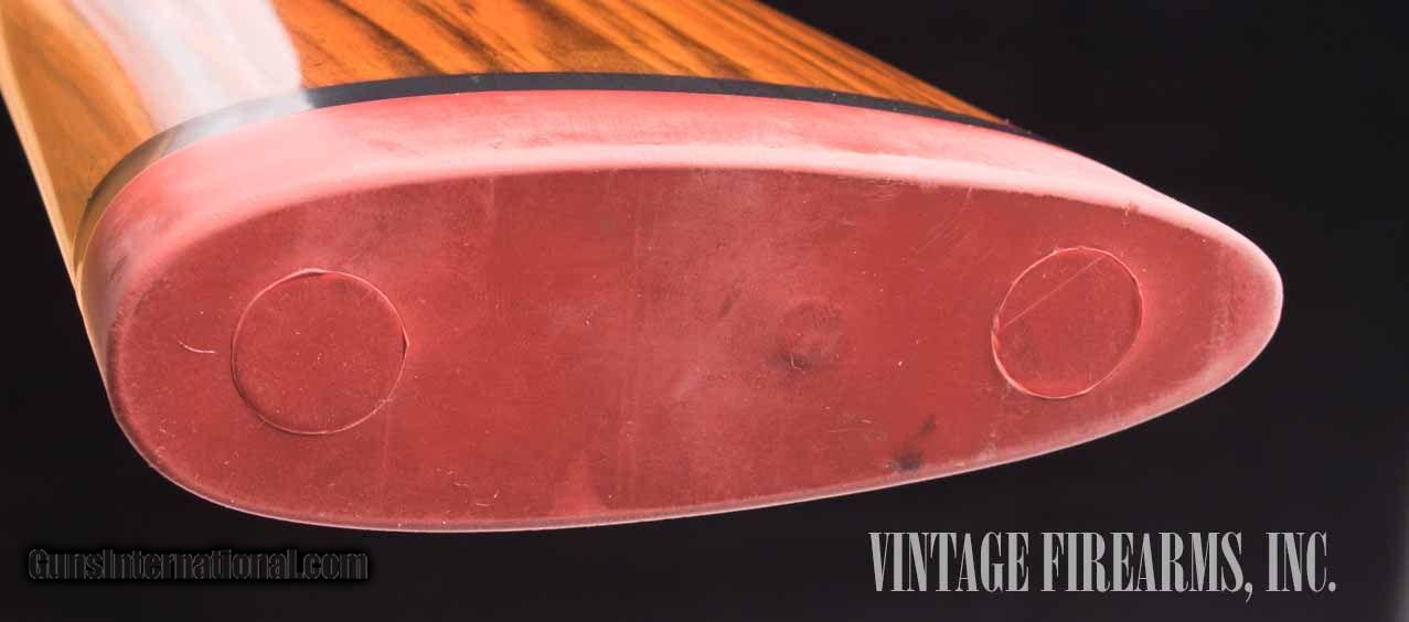 Description: Fox AE Grade 16 Gauge SxS 1913, FACTORY ENGLISH WALNUT, EJECTORS, 99% General Specs: Fox, Year 1912, 16 Gauge, 5lbs 15oz, SxS Serial Number: 300112 Ansley H. Fox came out with what most believe to be the best proportioned 16ga. gun made in America late in 1912 when they announced the availability of their new 16 and 20-gauge guns, both made on a 20-gauge frame. The first full year of production was 1913 and the serial number range began at 300,000. The early A Grade engraving pattern was a simple scroll pattern in English style. The first few months of production small bore Fox guns got early A style engraving, and then came William Gough in 1913 and changed it all. All A Grades from then on had the more familiar style deep vine and foliate type engraving. This gun, sn300112 made in 1913 is one of a small handful of 16ga. A Grade Fox guns you will ever see with early A engraving. Most Fox enthusiasts are aware that the early guns seemed to be made with a little more care than the later guns as well, with smooth polished parts, finely figured English walnut, and a better fit and finish in general than the later guns. You will notice that on this gun, weighing 5lbs. 15oz. and balanced perfectly on the hinge pin with its 28" number 4 weight Krupp steel barrels and gorgeous figured English walnut with perfect grain layout running through the wrist for strength. This gun has been fully restored with 99% blue and bone/charcoal case color remaining. The barrels are tight as new on the hinge pin and breech face, and this gun has been fully stripped, cleaned, inspected, and lubricated before reassembly and is now a “VFI CERTIFIED GUN” with a 90-day mechanical warranty. The ejectors, balance, weight, wood figure, rarity (only about 150 with early A Style engraving), modern stock dimensions, and knock-out overall good looks makes this a very desirable gun for your upland and clay target pursuits. The cost of this gun includes the full restoration (a $3000 value) and you don’t even have the 1 year wait that went with it! Thanks for looking! Barrels Barrel Length: 28" #4 wt Krupp Chokes: .008/.012 Bores: perfect mirror Bore Diameter: .661/.660 Wall Thickness: .028/.026 % Blue: 100% Chambers: 2 1/2" Ribs: tight Sights: single Action Action: tight, right of center Ejectors or Extractors: ejectors, strong, timed Case Color: 100% Turnbull Restoration Screws: perfect Engraving: Early A Grade, clear, sharp Trigger Type: double Trigger Guard Color: 100% Stock Type: 1/2 round pistol grip/splinter forend/ nice English walnut LOP: 14 3/8" LOP To End Of Wood: 13 3/8" DAH: 2 3/4" DAC: 1 5/8" Cast: 3/16" off Checkering Condition: perfect Butt Treatment: silvers There are more photos upon request. We offer a 30 day mechanical warranty on this fine shotgun. Call us for full details. PLEASE SEE MY OTHER FINE VINTAGE FIREARMS. Just open one of my ads and click on the line that says “see all items from this seller” and a very nice list of fine sporting and collectible arms will appear. I have many more fine sxs shotguns not yet listed. Thanks for looking! Payment Methods: Credit Card, Money Order, Certified Check, Personal Check, Wire Transfer Inspection Period / Return Policy: Three Days from the date the item was received. Sales Tax: 6% Michigan Only Shipping & Insurance: Ground $55.00 We ship internationally! Item Condition: Used Requires FFL?: Yes If you have any questions about this item or payment, please email or call us directly, at #616-292-6240. Thanks! Vintage Firearms Inc We employ a full time gunsmith on premises and can perform alterations to suit your needs within a few weeks of purchase. Common requests are: -stock bending to suit your particular requirements -addition of any specified butt pad to increase length of pull -alteration of chokes to suit your shooting preferences -lengthening of chambers and forcing cones -darkening stock color with penetrating stains -restoring any part of the gun including rust blue, charcoal blue, bone and charcoal case color, wood restoration and checkering recuts. If you like one our guns but it needs "tweaked", let us know and we can quote you a time and price. Some enthusiasts like the guns "as found" and others want them "just so". We often list guns as found and let the particular buyer choose how they want their gun to fit or look. SOLD Curio/Relic: Yes |