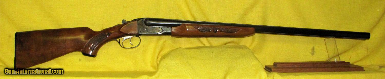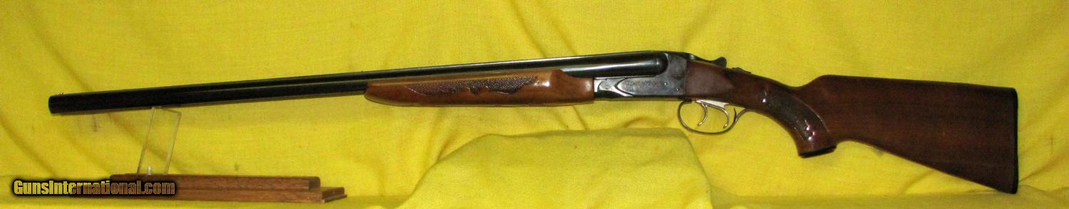 Description: FOX model B in 12 GA CAL., with 28" barrel. Color BLUE. NICE SAVAGE FOX MODEL B VENT RIB DOUBLE BARREL WITH FULL AND MODIFIED FIXED CHOKES. DOUBLE TRIGGERS, EXCELLENT CONDITION CHECKERED BEAVER TAIL FORE END WITH PISTOL GRIP STOCK. BARRELS ARE MARKED SAVAGE ARMS CORP. WESTFIELD MASS. CASE COLORED RECEIVER, BORE EXCELLENT. Condition 97%. Serial number NONE. SOLD |