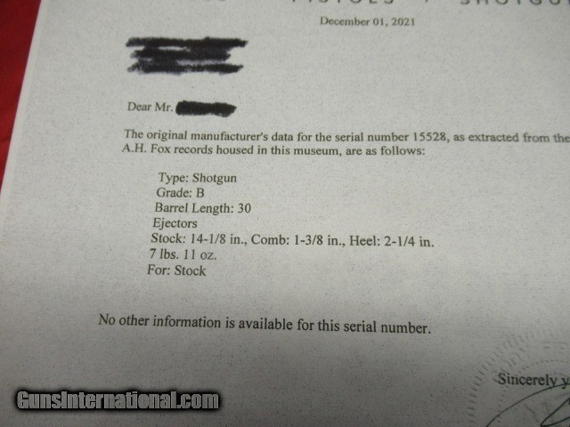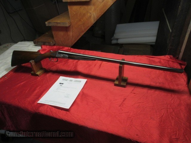 Description: ***********SOLD**************30", Full & Full, 14 1/8"X 1 3/8" X 2 1/4" , Weighs 7lbs 11oz, Barrel blue is real nice, Case colors nicier than pictures show, That is not a crack in side of stock in the one picture it is a scratch, Wood shows some handling marks, Locks up tight lever is to the right, Shiney Bores, Nice hard to find SXS, Buyer pays 75.00 shipping Pa residents add 6% sales tax, Price is for check or money order, Cc add 3% SOLD |
