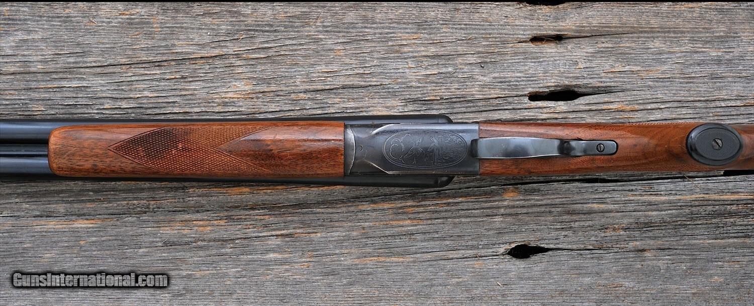Description: Fox - Boxlock - 12 ga - Item Number: FOXNSN21 Shotgun type: SxS Action: Boxlock Ejectors: No Trigger: Double Grip: Pistol Grip Forend: Checkered Lop: 14 1/8 " Pad thickness: 0.25 " Type of butt: Factory Drop comb: 1 1/2 " Drop heel: 2 1/2 " Cast amount: 0 " Weight: 7 lbs, 12 oz Manufactured in: USA Finish: Blue Overall condition: Good Stock condition: Good Metal condition: Good Stock: Original finish Metal: Original finish Type of Case: none Extra barrels: 0 Barrel info: Gauge: 12 ga Chamber: 2 3/4 " Length: 30 " Chokes: M/F Rib type: Flat File Cut Comments : Gun is in good condition with some light handling marks. SG-101 SOLD |