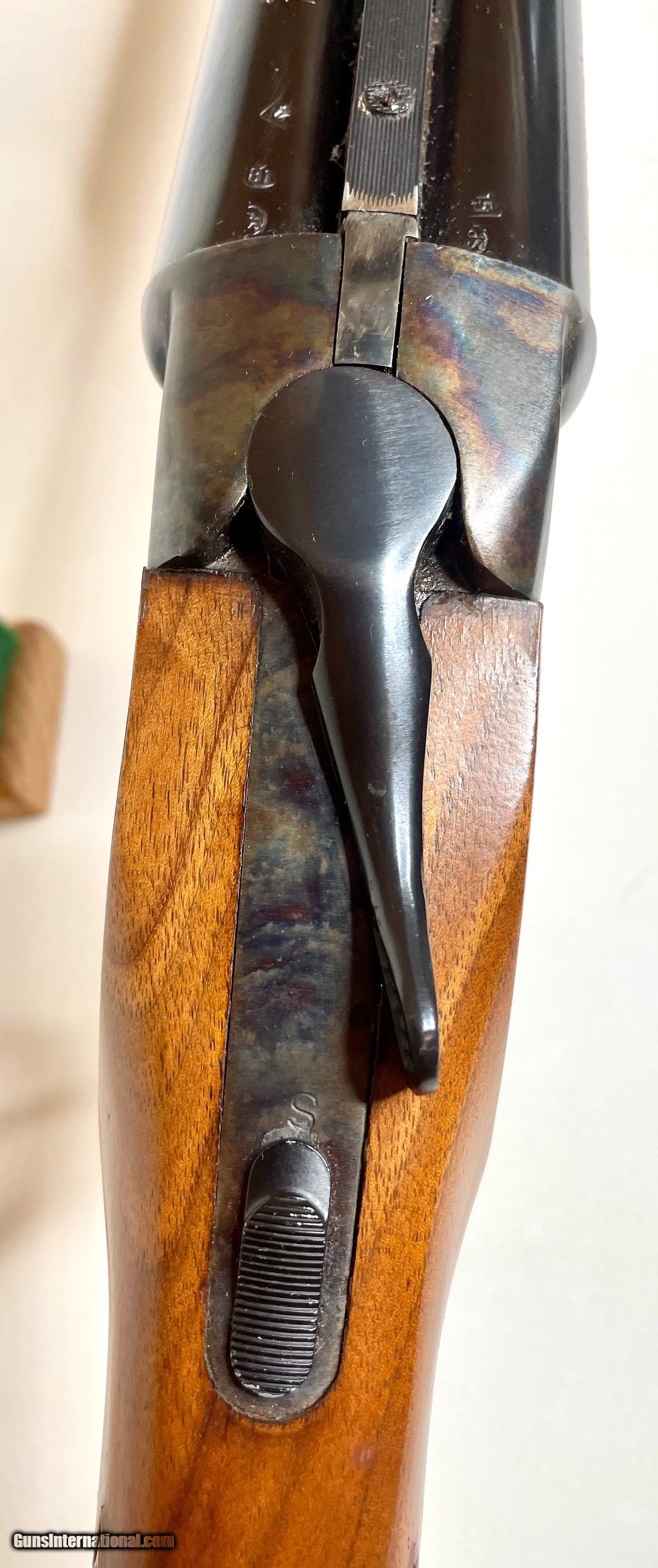 Description: For sale I have another one of my late fathers guns, this one is an almost mint little fox model BSE 20 ga. It has 28" barrels choked modified and Improved modified. It has a single trigger, ejectors, and a ventilated rib. 100% case color and 100% blueing only a couple of tiny tiny handling marks. SOLD Shotgun Gauge: 20 Gauge Manufacturer: Fox Model: BSE Barrel Length: 28” Ejectors: Yes Condition: Like new Metal Condition: Like new Wood Condition: Couple very tiny handling marks Bore Condition: Mint |