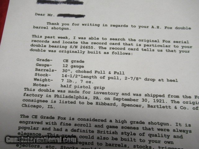 Description: *******************SOLD********************30", Full & Full, 14 1/2" Lop, 2 7/8" Drop at heel, 7 lbs 7oz, Wood is real nice showing a few light handling marks, Barrel blue is real nice, Case color on receiver is nicier than pictures show, Lever is to the right . Locks up tight, Shiney Bores, Comes with factory letter, Buyer pays 75.00 shipping Pa residents add 6% sales tax, Price is for check or money order, Cc add 3% SOLD |
