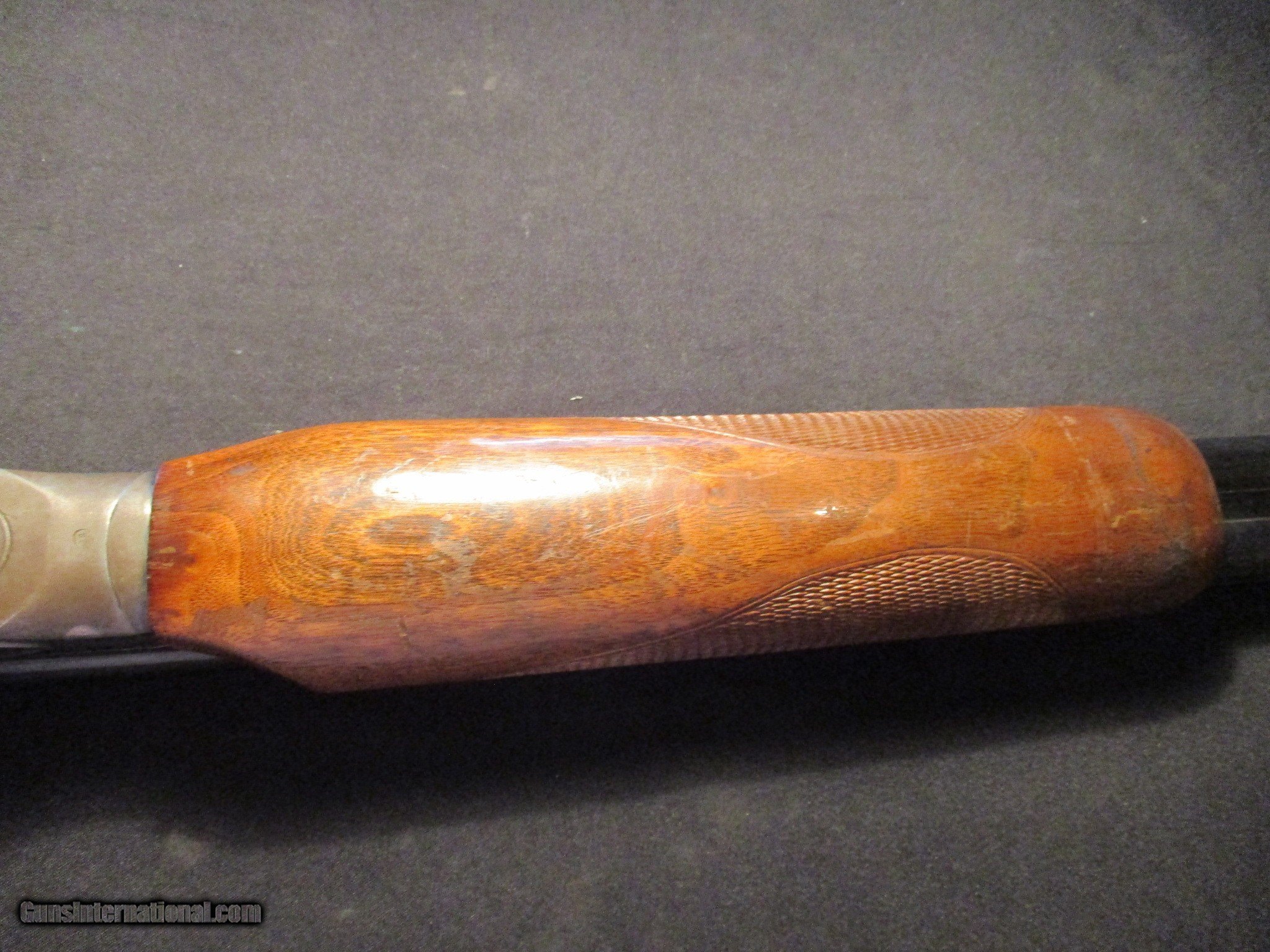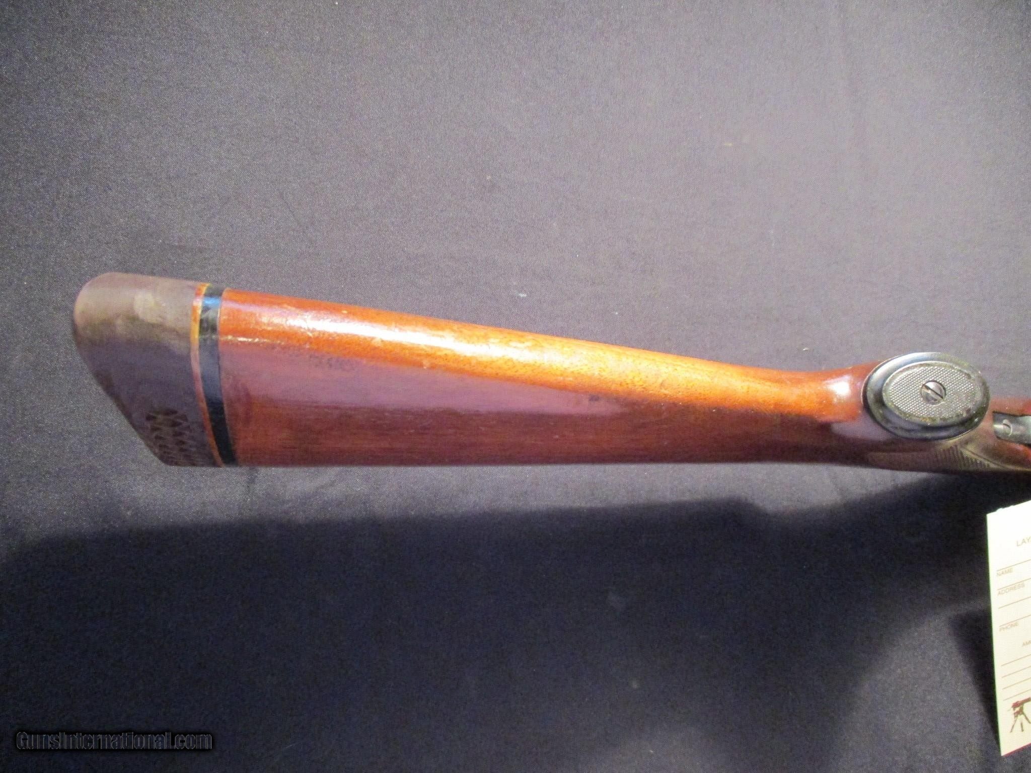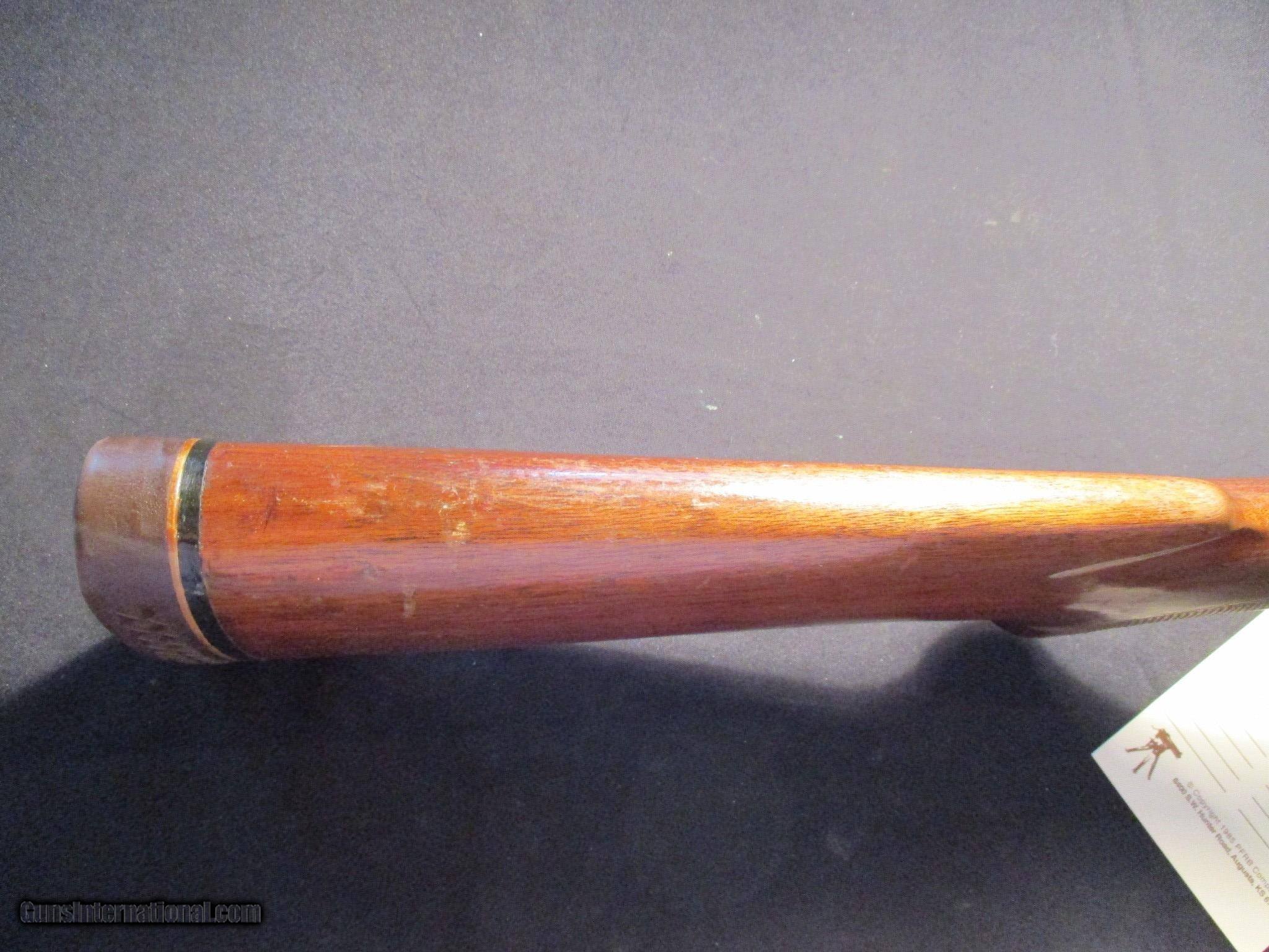 Description: Fox Savage Model B, 20ga, 2.75" chambers, SST, extractor, fixed chokes M and F. SN is WIB, factory finish on both wood and metal, nice clean classic gun! Email me if you would like these pics sent to you, they will come through bigger and better than on the listing page here. We do offer Lay-A-Way. Our standard terms are 25% down, 90 days. Initial deposit is not refundable. Email me with any questions. I am a store front dealer, and I will close s if the gun sells locally. Once it has aI will pull it from my shelves. Please check your local laws to confirm it is legal to own in your state! Buyer pays $25 shipping and insurance to your FFL in the lower 48. AK, HI or PR is extra. I will ship to California, NO PROBLEM! All my guns come with a non firing, 3 day unconditional return privilege, from the day UPS delivers to your dealer. Buyer pays shipping both ways if the gun comes back. I can add a new hard case by PLANO for secure shipping for $25 if the buyer wishes (highly recommended, cheap insurance, really helps keep the UPS monster from eating my guns!). No sales tax on guns ship out of Kansas, guns sold in Kansas are subject to Kansas sales tax. I am a licensed FFL, and will include a copy of my FFL with the gun for your dealers records. I will ship to a C&R if the gun is eligible. I will ship to California, but you need to confirm the gun is legal where you are, California or other. I am always looking for good clean, old original Winchesters to buy, consign, or trade, especially pre '64's model 70's and model 54's. WE ALSO TRADE FOR CLASSIC CARS AND TRUCKS! Email me with any questions, and good luck! SOLD |