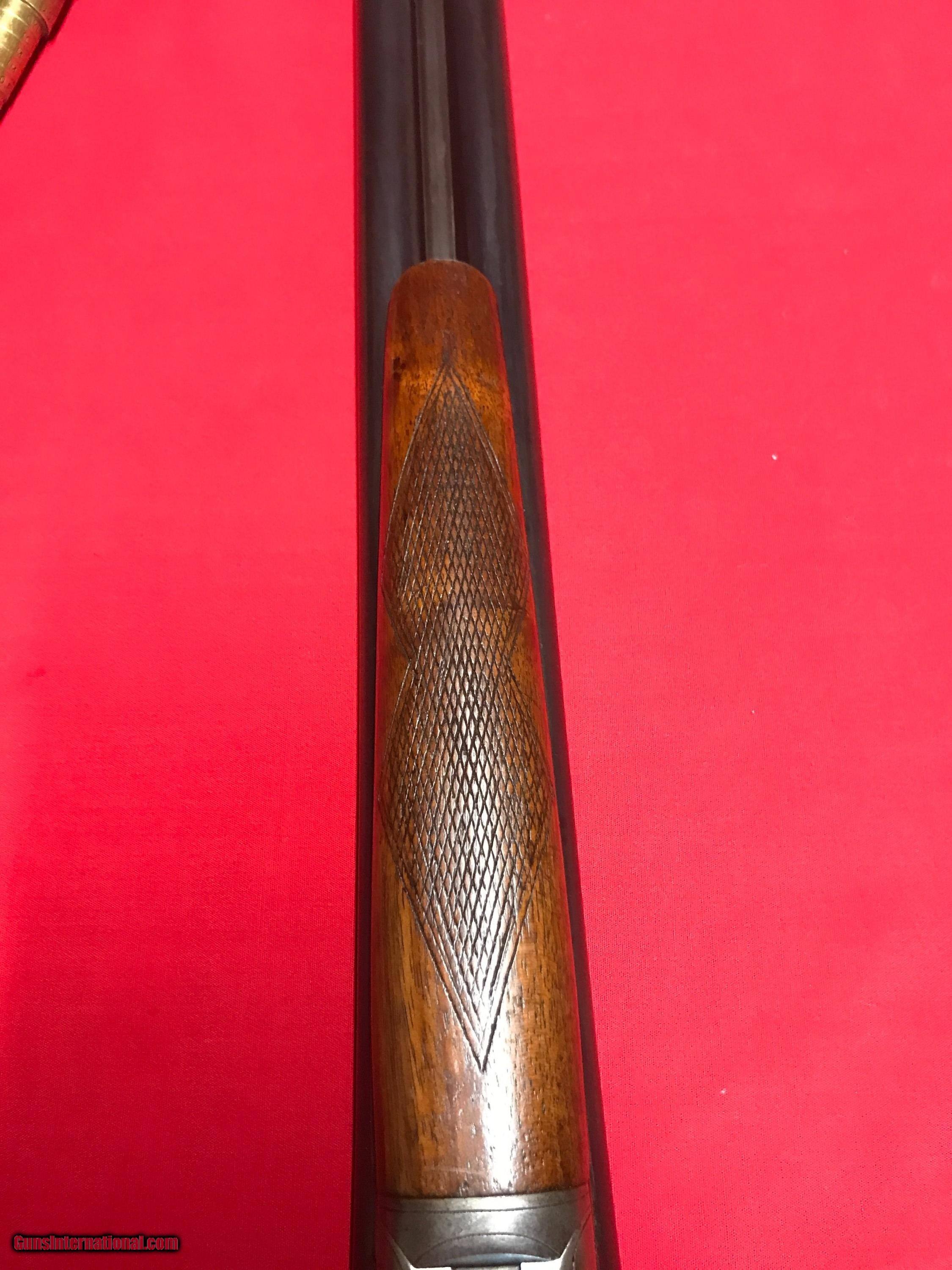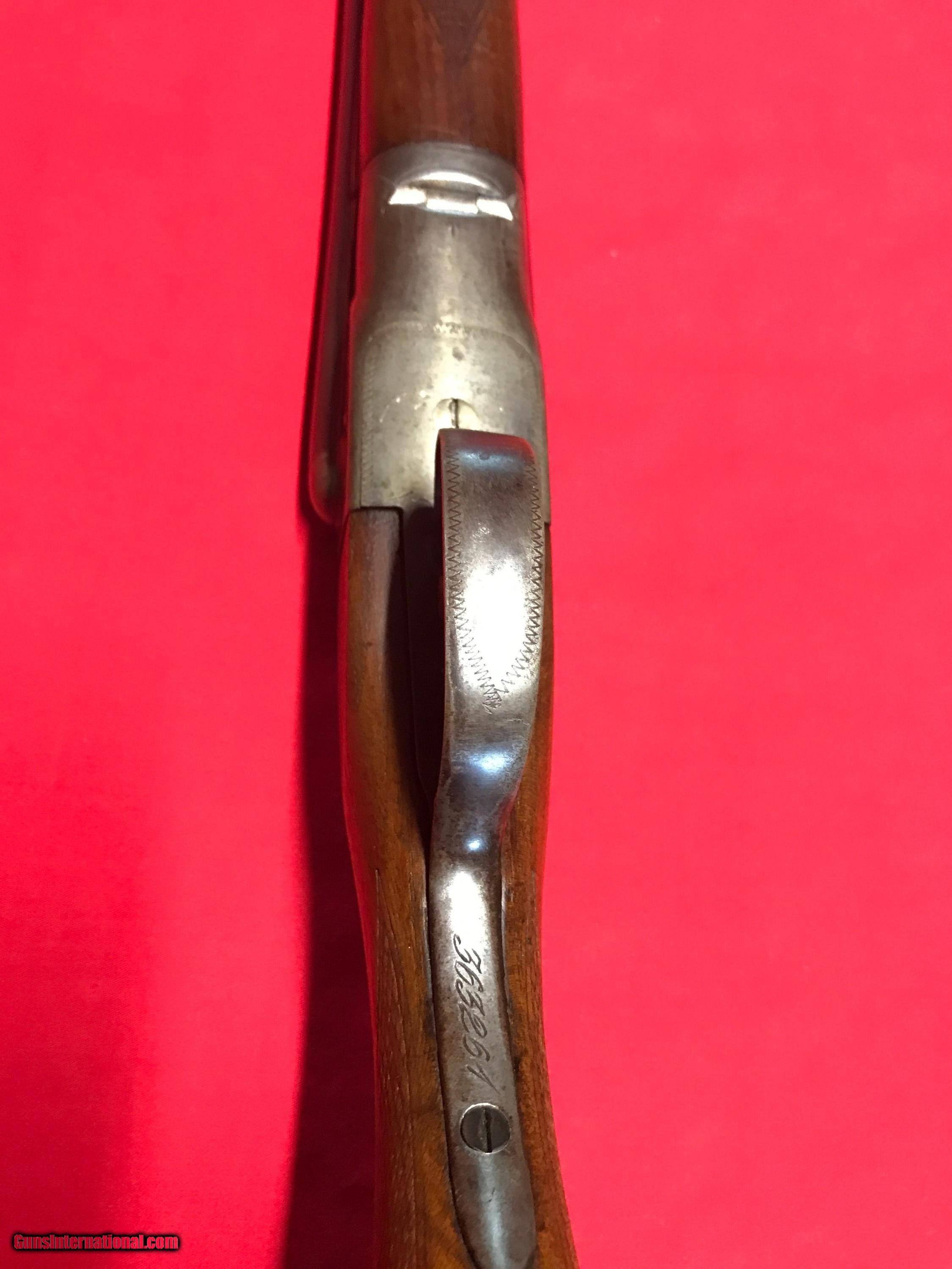 Description: A classic American hunting gun, this is a 16 gauge Philadelphia Fox Sterlingworth, made circa 1927...The 28" barrels are choked mod and full. 2 1/2" chambers with fine bores...14 1/4" length of pull. Drops are 2 and 3 1/2 inches...Weighs 6 1/3 pounds....Butt stock was cracked internally. Wood has been repaired with epoxy and reinforcing wedges have been added...There is also evidence of a ding being raised in the left barrel about 10 down from the muzzles...Action is remarkably tight for a gun of this vintage, indicating lots of carry with little actual firing...Overall, good shooting condition, with appropriate ammunition....Ship to ffl or c&r...This is a used gun. It is guaranteed to be functional and free of major cosmetic issues... SOLD Curio/Relic: Yes |