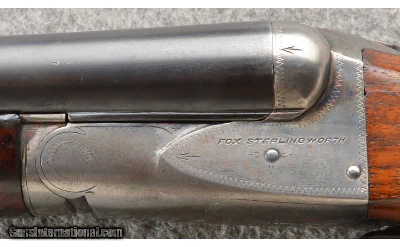 Description: This is a very nice Fox Sterlingworth 16 gauge shotgun. The blue is very strong and the case color has faded but is still present. The wood is very nice and looks correct. SOLD Manufacturer: 1938 ??? Caliber Info: 16 Gauge. Chambers: 2 3/4 inch side x side with extractors. Metal Condition: Very good with thinning case color. Wood Condition: Very good with finish wear. Bore Condition: Bright and shiny. Barrels: 28 Inch blue with a concave rib. Triggers: Double. Stock: Very nice American walnut with a checkered semi-pistol grip. Stock Dimensions: 13 Inch LOP to the front trigger. Fore End: Matching checkered walnut. Butt Pad: Black butt plate. Weight: 6 Lbs 6 Oz. Sights: Single silver color front bead. Chokes: Fixed Full and Mod. Item Location: Owatonna, MN |