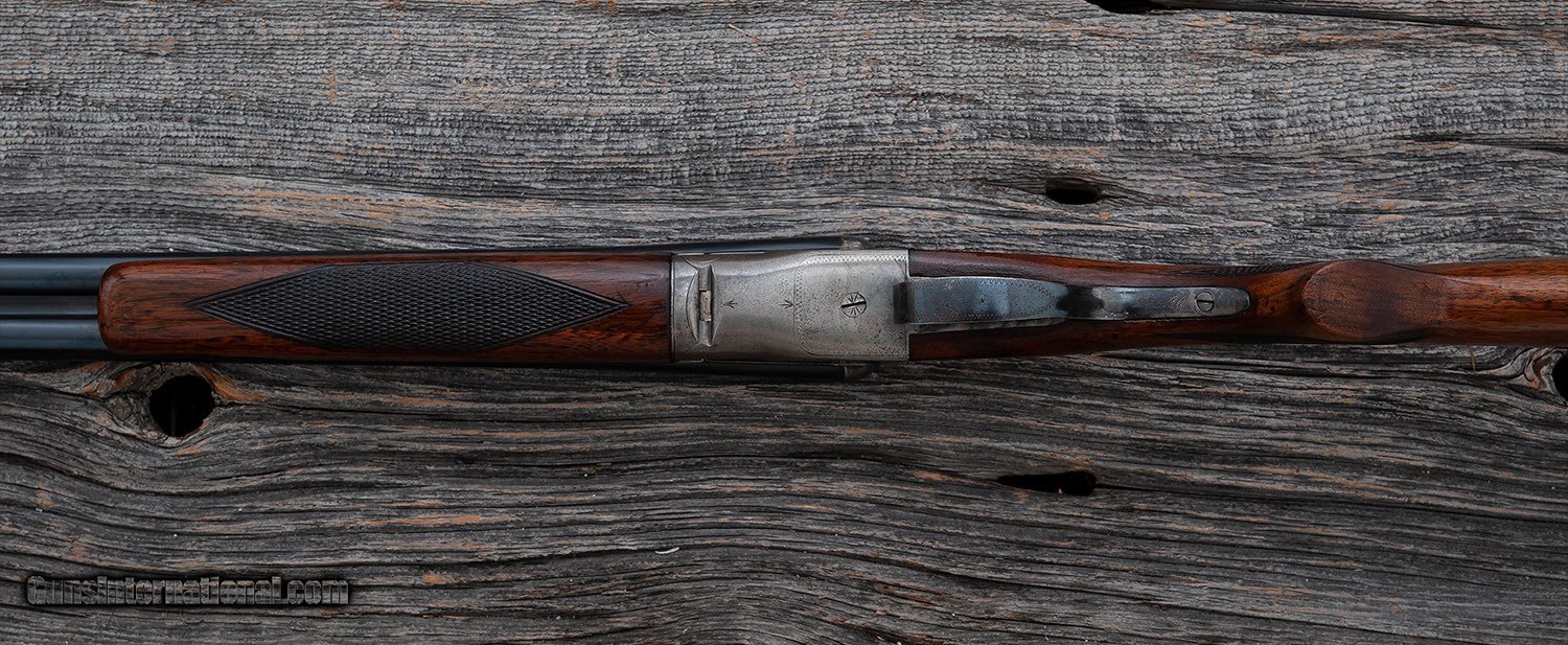 Description: Fox - Sterlingworth - 20 ga - Item Number: FOX266191 Shotgun type: SxS Action: Boxlock Ejectors: No Trigger: Double Grip: Pistol Grip Forend: Checkered Lop: 14 1/4 " Pad thickness: 0.25 " Type of butt: Plastic Buttplate Drop comb: 1 5/8 " Drop heel: 3 " Cast amount: 1/8 " Cast: Off Weight: 6 lbs, oz Manufactured in: USA Finish: Brush Overall condition: Good Stock condition: Good Metal condition: Good Stock: Original finish Metal: Original finish Type of Case: none Extra barrels: 0 Barrel info: Gauge: 20 ga Chamber: 2 3/4 " Length: 26 " Chokes: SK1/Cyl Rib type: Concave Comments : Tight gun in good condition showing some light handling marks. SG-137 SOLD Shotgun Gauge: 20 Gauge |