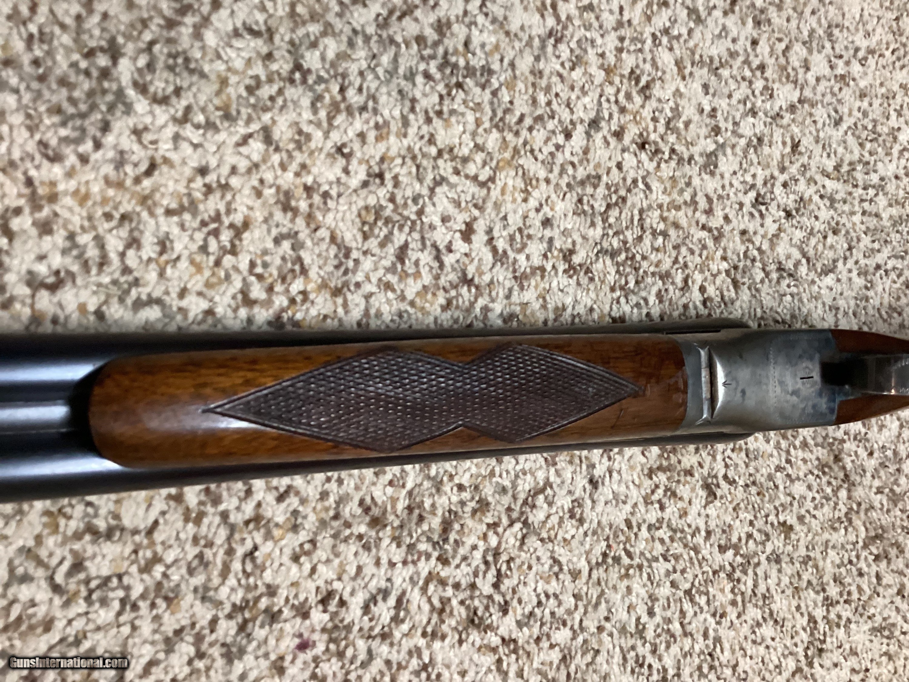Description: Offered for sale is a wonderful little sterlingworth, light, easy handling with condition. This one features 26 inch barrels choked M, F. Weight is 5-14. As those of you know that surf the gun sites in search of good guns, they don't often surface. This one hasn't been used much and really does have collector condition. The gun has more color than shows in pics. Good dimensions at 2 ¾ , 1 ? . 14. Serial number 261107. Call 3304661092 with questions. Thanks for your interest. SOLD Shotgun Gauge: 20 Gauge Manufacturer: AH Fox Model: Sterlingworth Serial Number: 261107 Barrel Length: 26 Ejectors: No Metal Condition: Fine Wood Condition: Fine Bore Condition: Shiny Action: Boxlock Triggers: Double Stock Comb: 1 5/8 Stock Heel: 2 3/4 Butt Pad: Plate LOP: 14 Weight: 5-14 Choke Left: F Choke Right: M |
