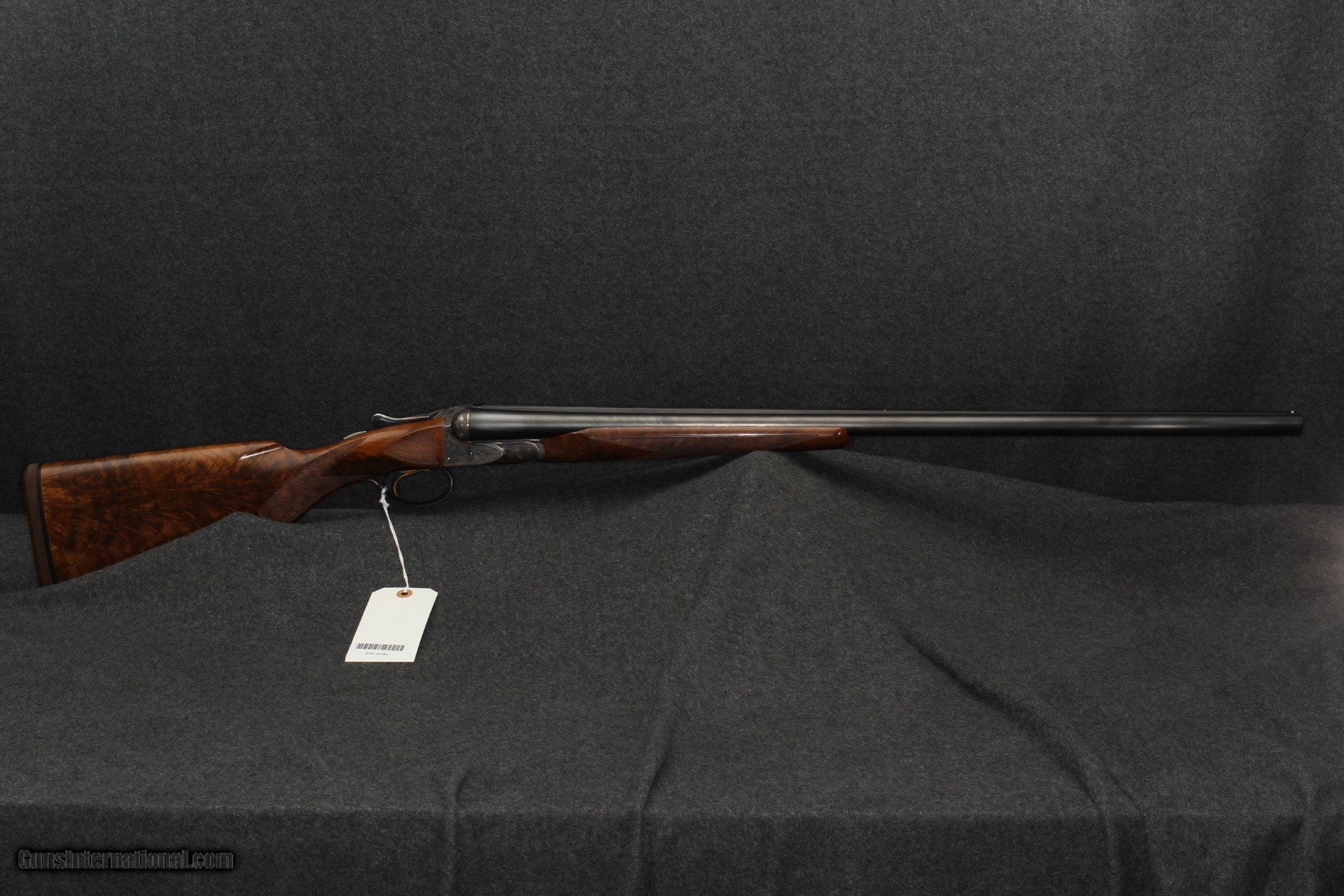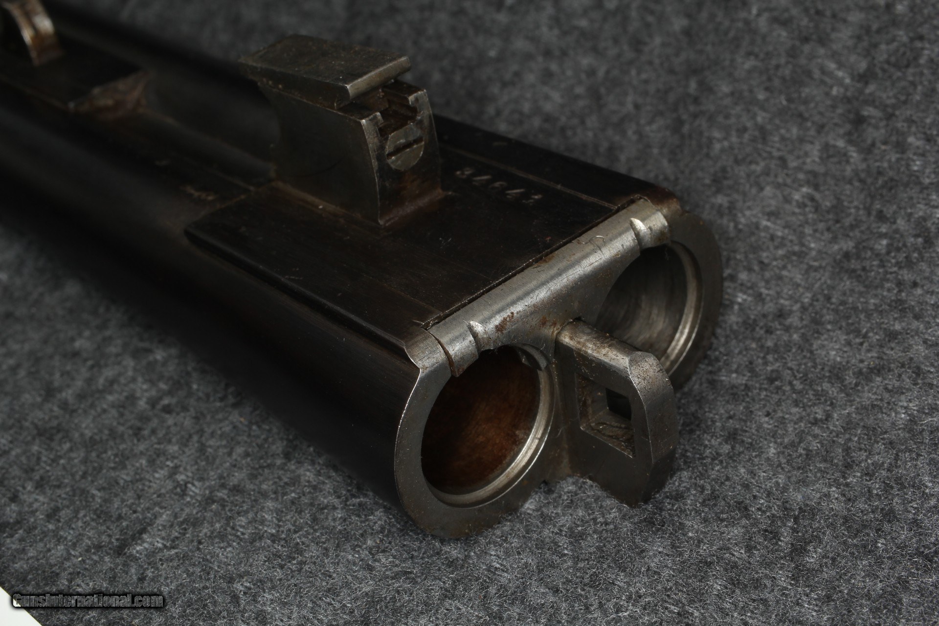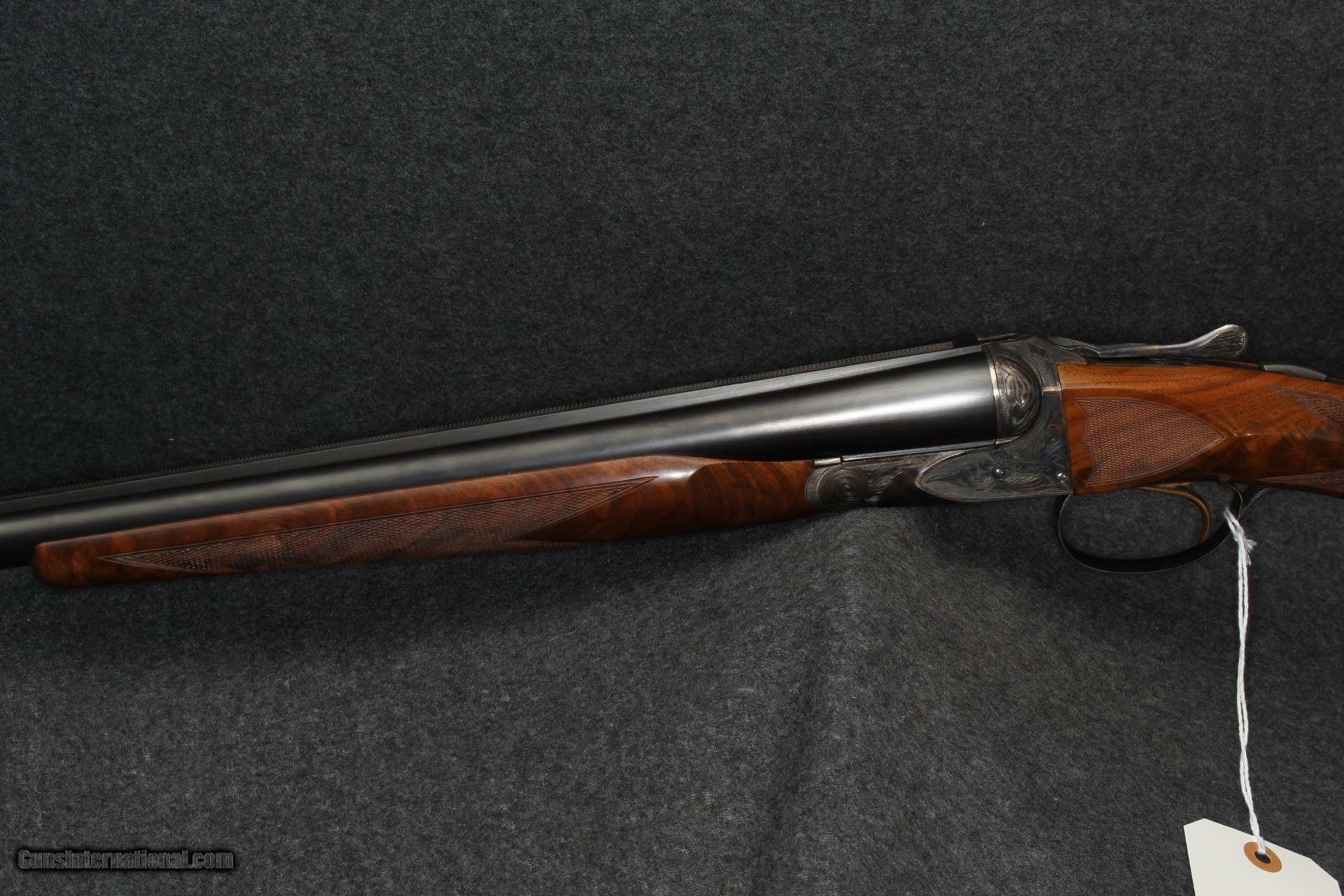 Description: 12ga, serial number 345XX. 30" barrels, 2 3/4" chambers, extractor, barrel selector, ex full and light full. Lee Kunz custom stock with rare single trigger. Barrels retain all original blue. Receiver shows factory engraving pattern with dulling case color. Bores excellent. Well figured beavertail forend, multi-point checkering pattern. Checkering remains crisp. Deely & Edge catch, shows minor engraving. Buttstock has exceptional feather crotch walnut by master stock maker Lee Kunz. Multi-point checkering to Prince of Wales grip. Church steeple pattern on flats behind action. Trigger guard bow retains high percentage original blue with simple engraving. LOP to wood 13", LOP to pad 13 3/4". DAC 1 3/8", DAH 2 3/8". Please call for shipping and insurance amount. More photos available on request. SOLD Curio/Relic: Yes Shotgun Gauge: 12 Gauge |