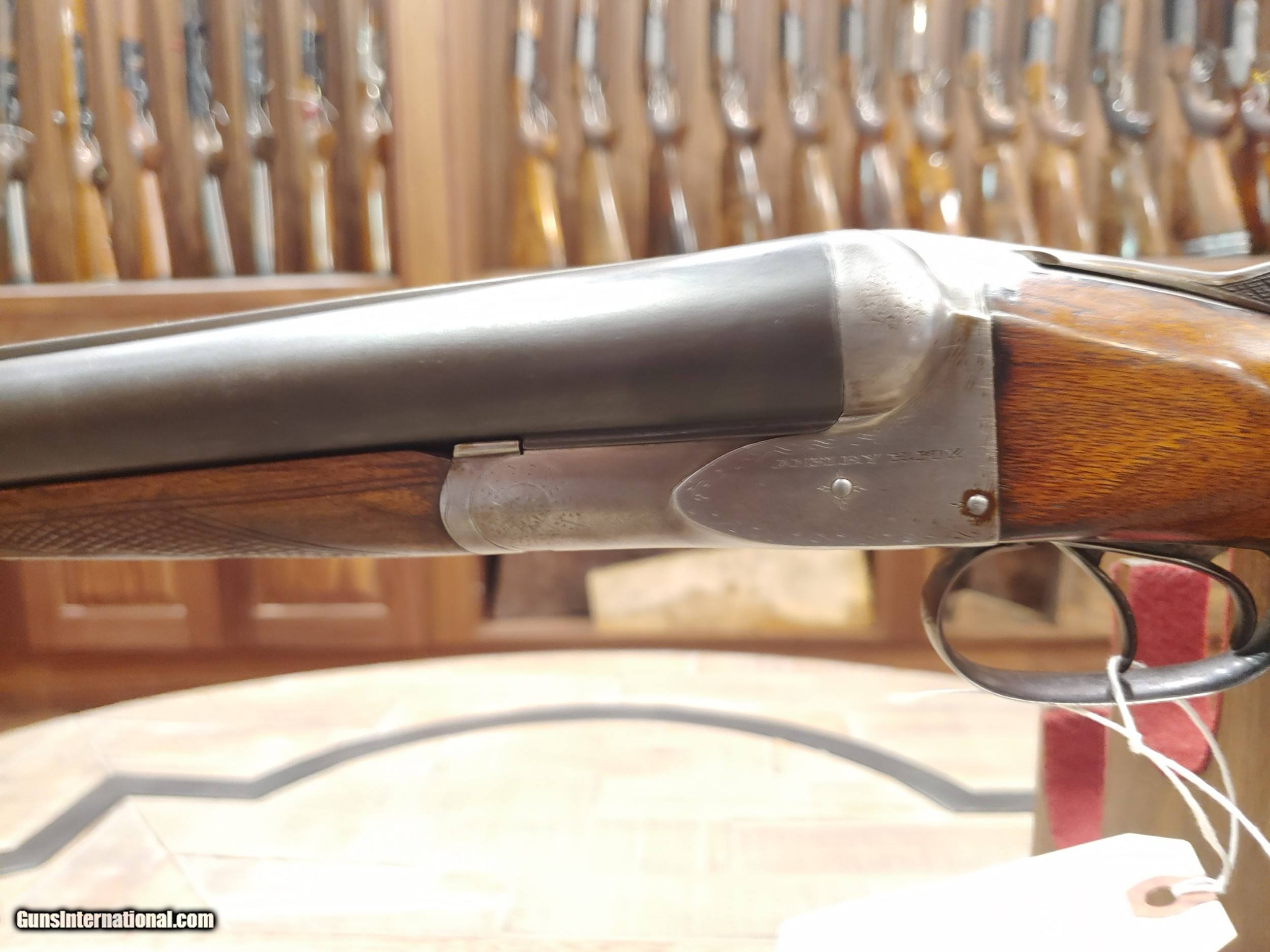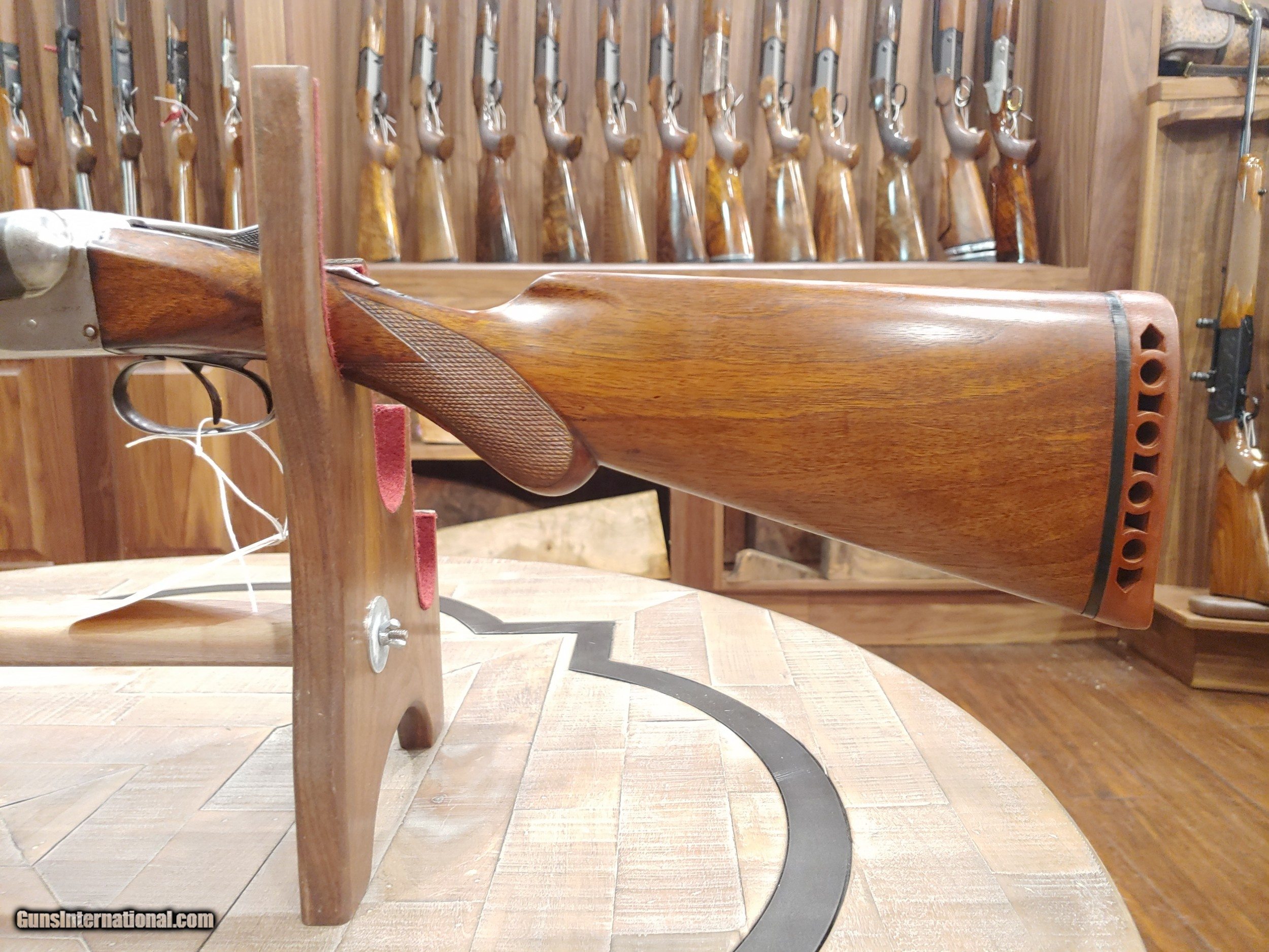Description: This Ansley H Fox is a 28" 12 gauge side-by-side shotgun with an overall length of 44.5" and a length of pull of 14.5". It features beaded sights, a coin finish, and a checkered stock. The gun is in great condition.
