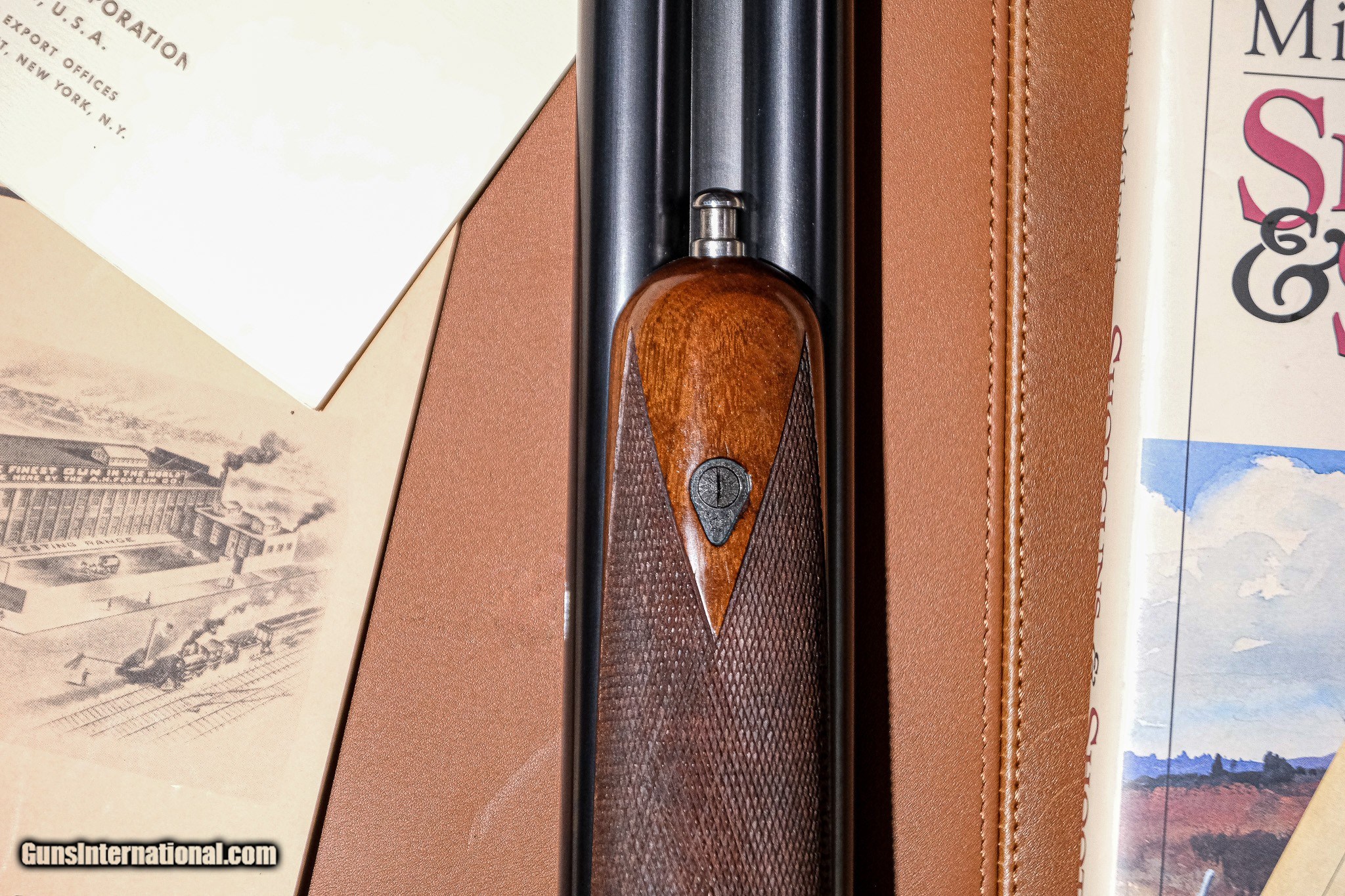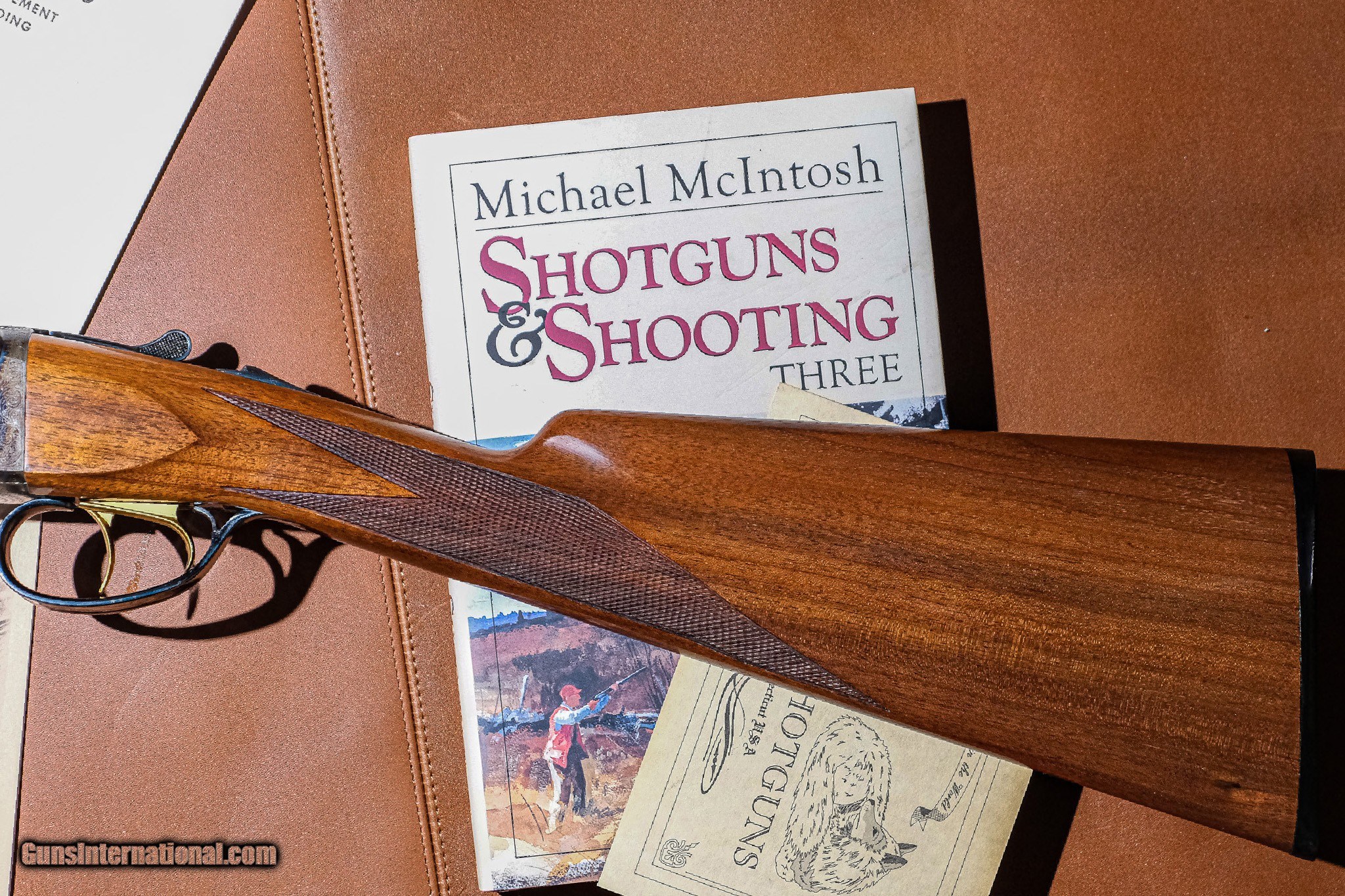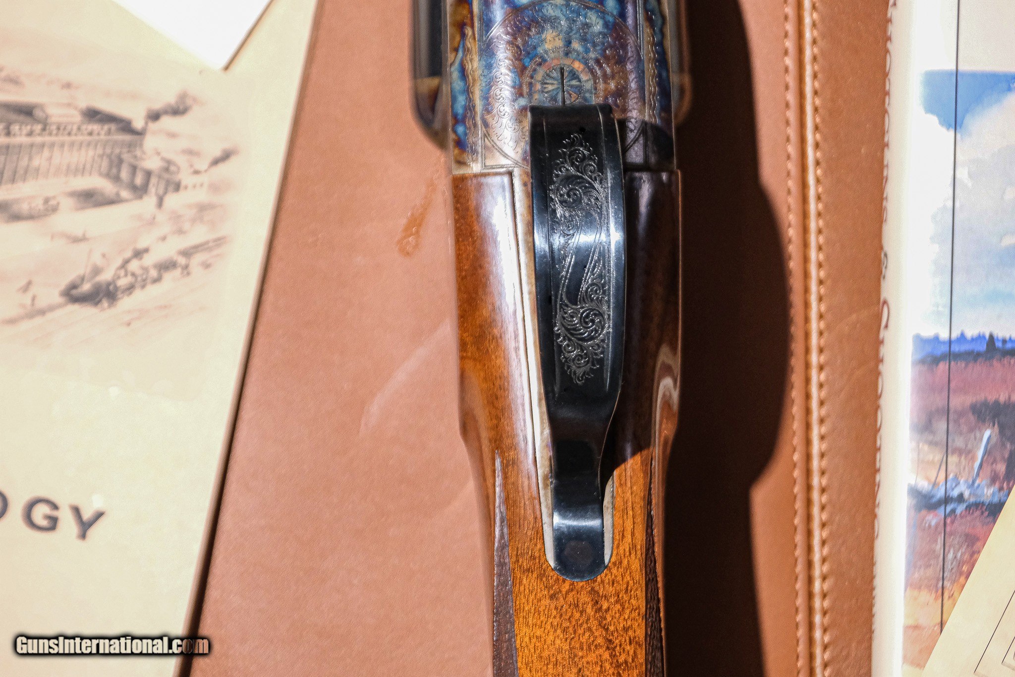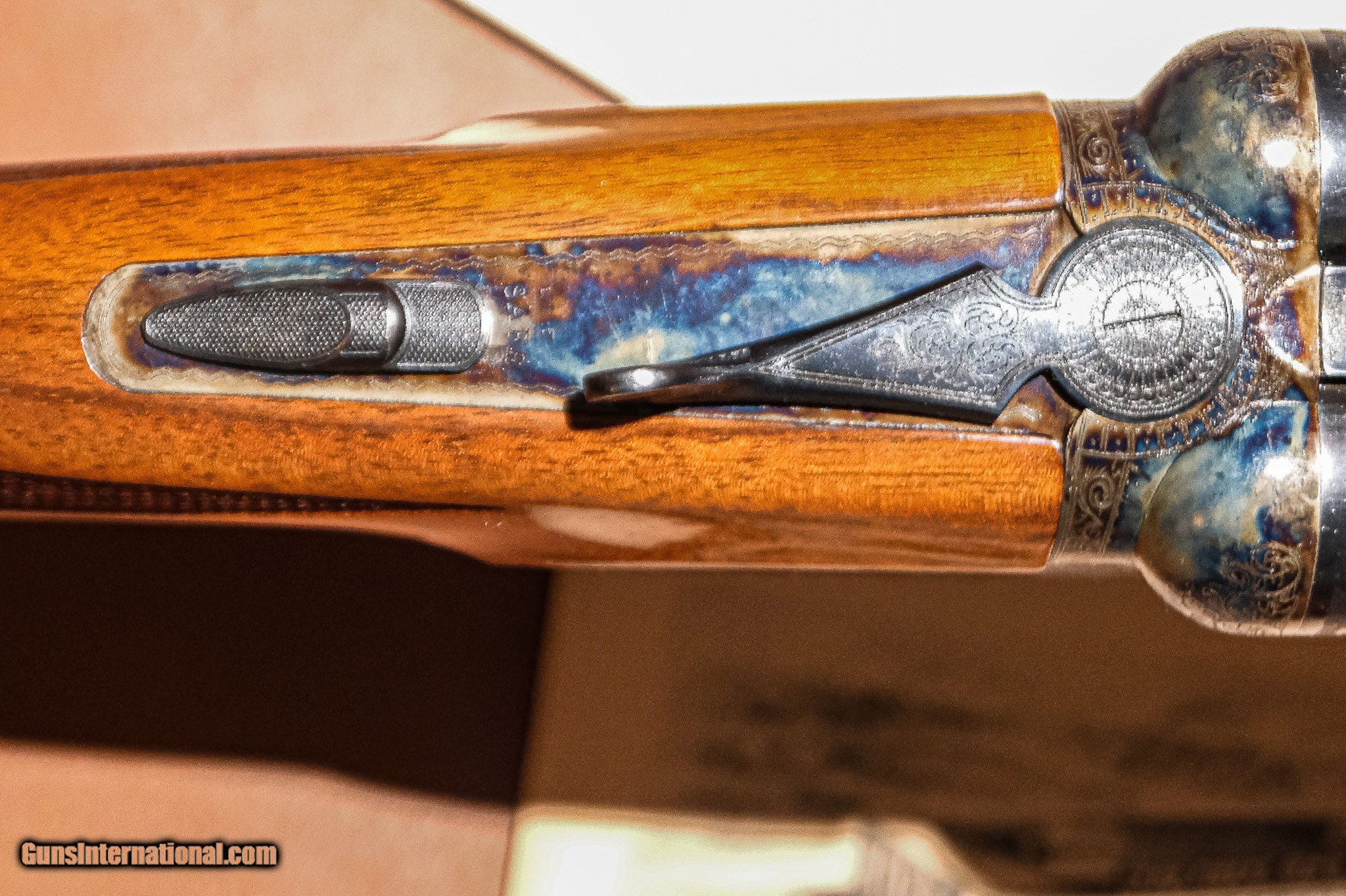 Description: SAVAGE - Fox, SxS, A Grade, Special Order C Grade Gun, 12ga. 30" Barrels with 5 Screw-in Choke Tubes. Special order gun with C grade engraving, straight grip, hard rubber butt, double trigger, auto ejector, splinter forend, beautiful engraving over traditional bone and charcoal case coloring, raised side panel stock with highly figured select Turkish Circassian walnut, 3 inch chamber, set of 5 choke tubes. Inv: 85275 7 lbs. 4 oz. 14 3/8” x 1 ½” x 2 ¼” $6,300.00 The largest, most diverse, high-grade shotgun and firearms inventory in history. There is no one even close and a service department to back up everything we sell with our unparalleled warranty to support our customers exclusively. If someone tells you they have a larger inventory, just look for yourself. Price: $6,300.00 Contact Seller |