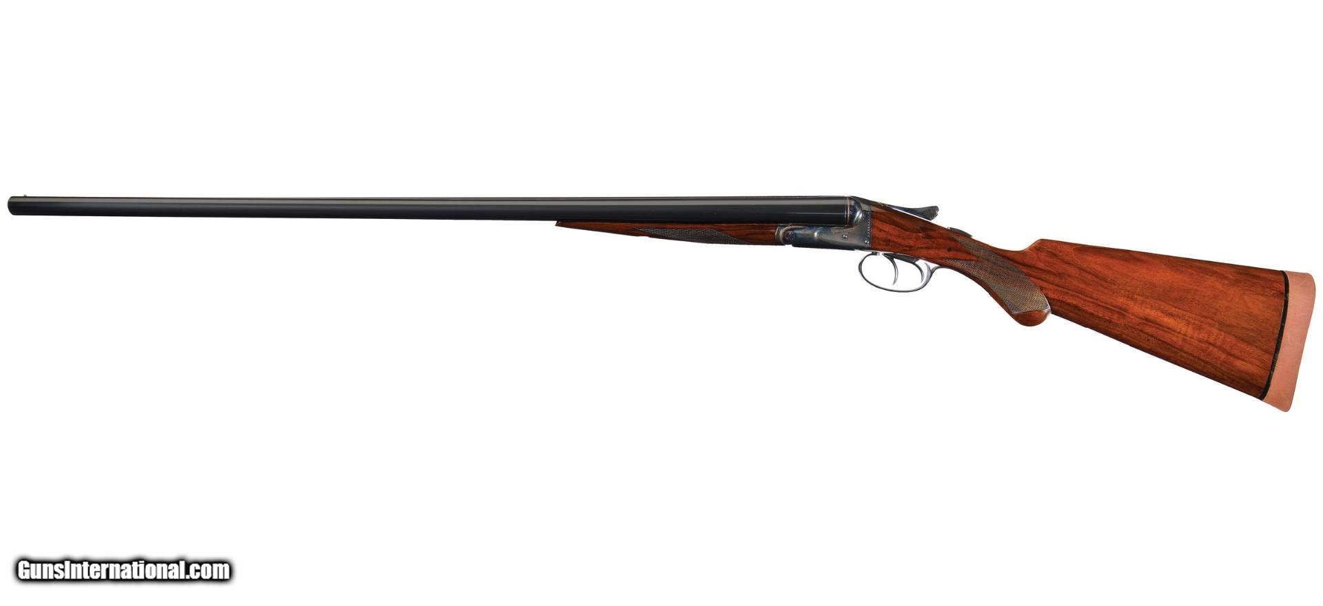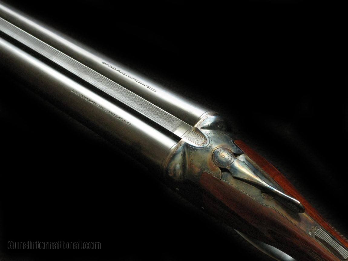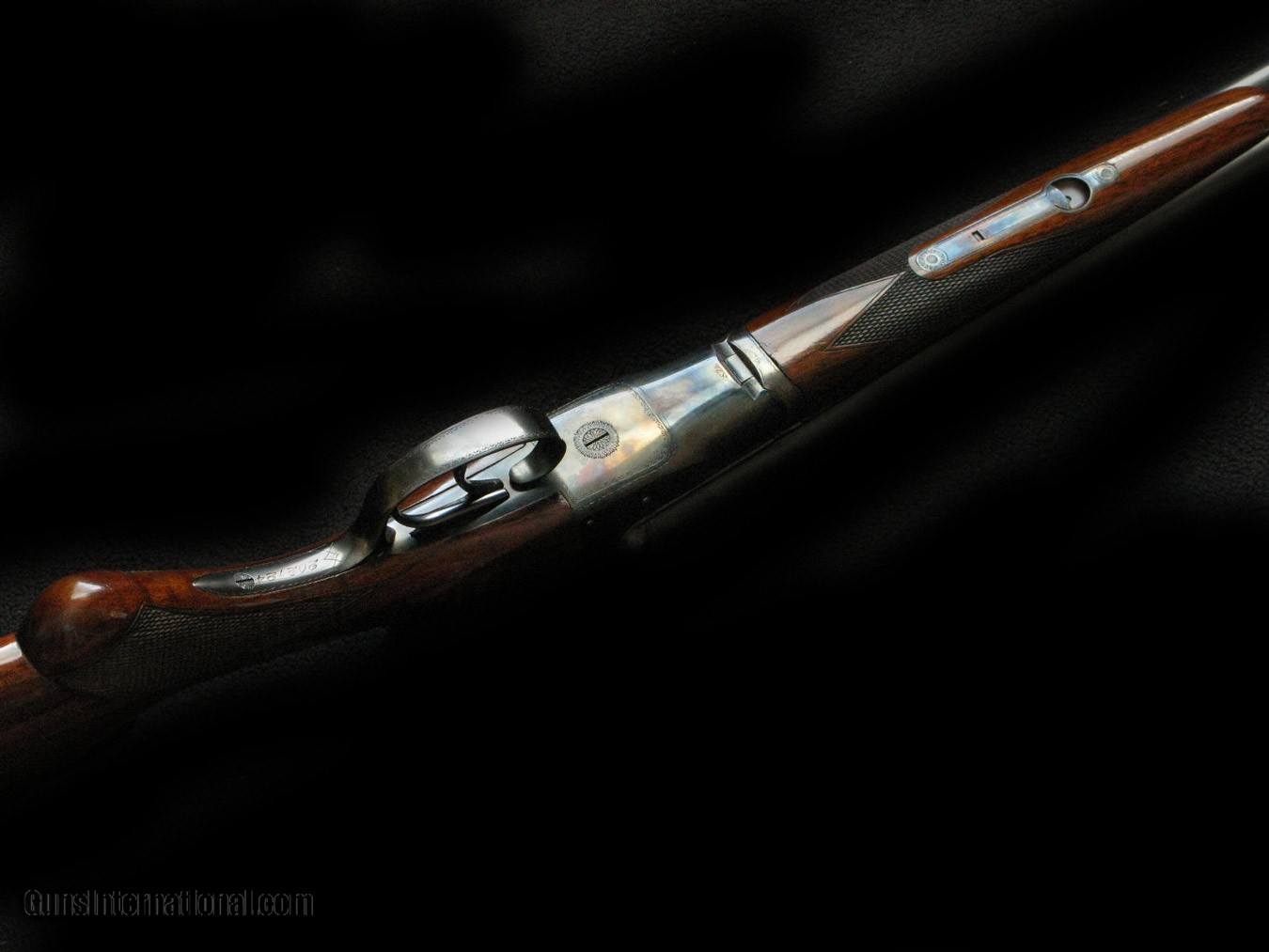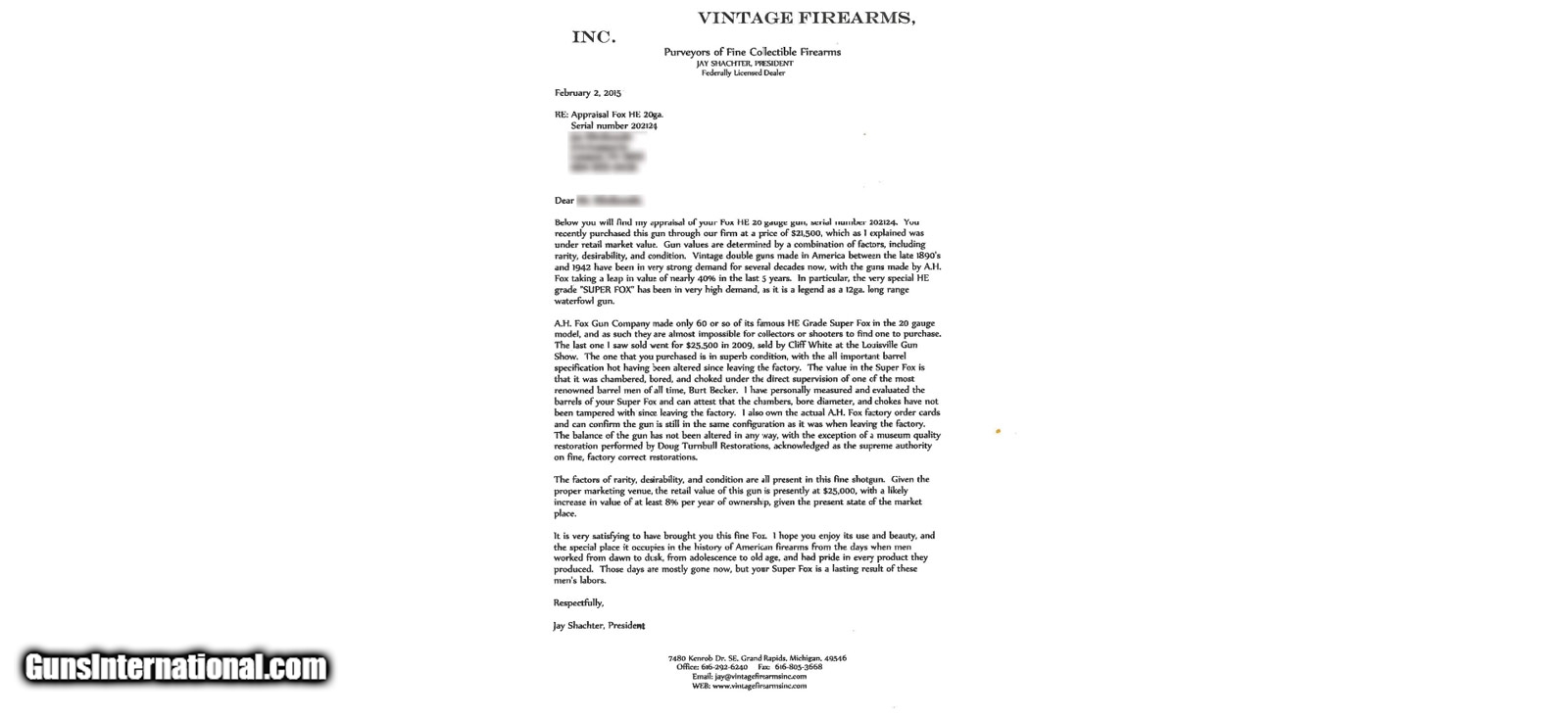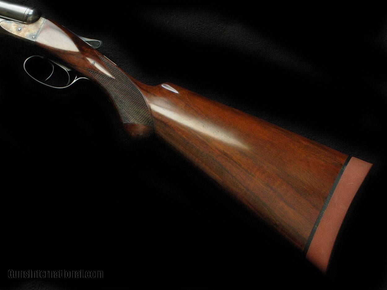 Description: The holy grail of the vintage Fox guns, the HE grade "Super Fox" was intended for heavy long range loads. The few that were made were mostly 12ga, less than 50 were made in 20ga.-3". And this one has (minimal) factory engraving! Restored to as new condition by Turnbull. 30" barrels , R622/588 L621/588, 7 3/4lbs. LOP 14.5", drops 1.5 and 2.75" with a hint of cast ON. This is a singular gun. SOLD |