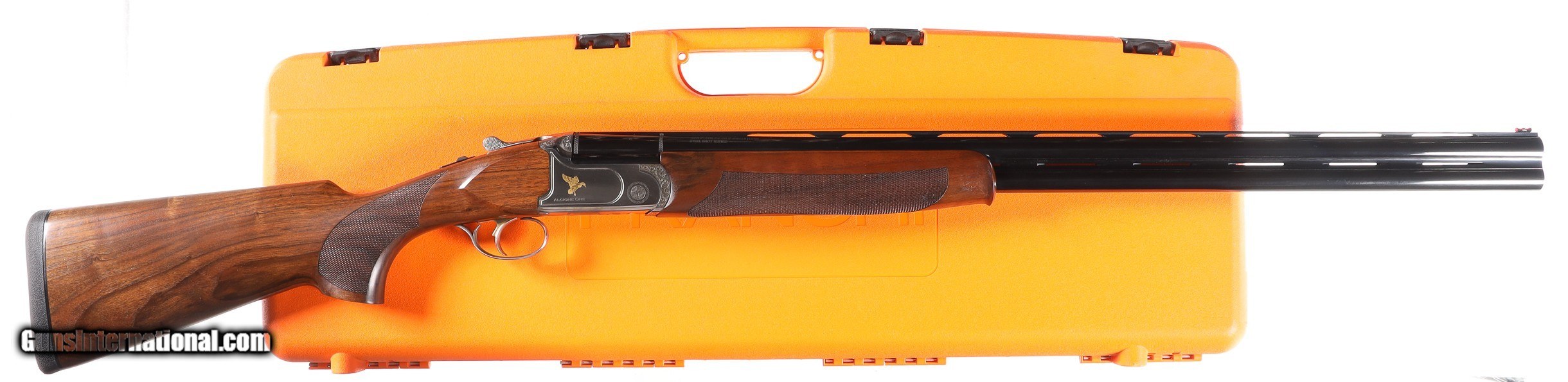 Description: Franchi Alcione One 12 Ga with 30" vent rib Bbl with single selective trigger and ejectors. Coin finished receiver with gold inlaid game scenes of Grouse, Pheasant, and wood cock. Varnished checkered pistol grip stocks. 14 1/2" LOP 1 1/2" DAC 2 1/2" DAH. Comes with interchangeable choke tubes and wrench in factory luggage case. Condition: Excellent with some light handling. Bright bores and mechanically excellent. • Free Shipping, No Credit Card Fees. • Lay-a-way available for this firearm. • 1/3 Down, a 1/3 in 30 Days 1/3 in 60 Days. SOLD Shotgun Gauge: 12 Gauge Manufacturer: Franchi Model: Alcione Serial Number: TA18228 Barrel Length: 30 |
