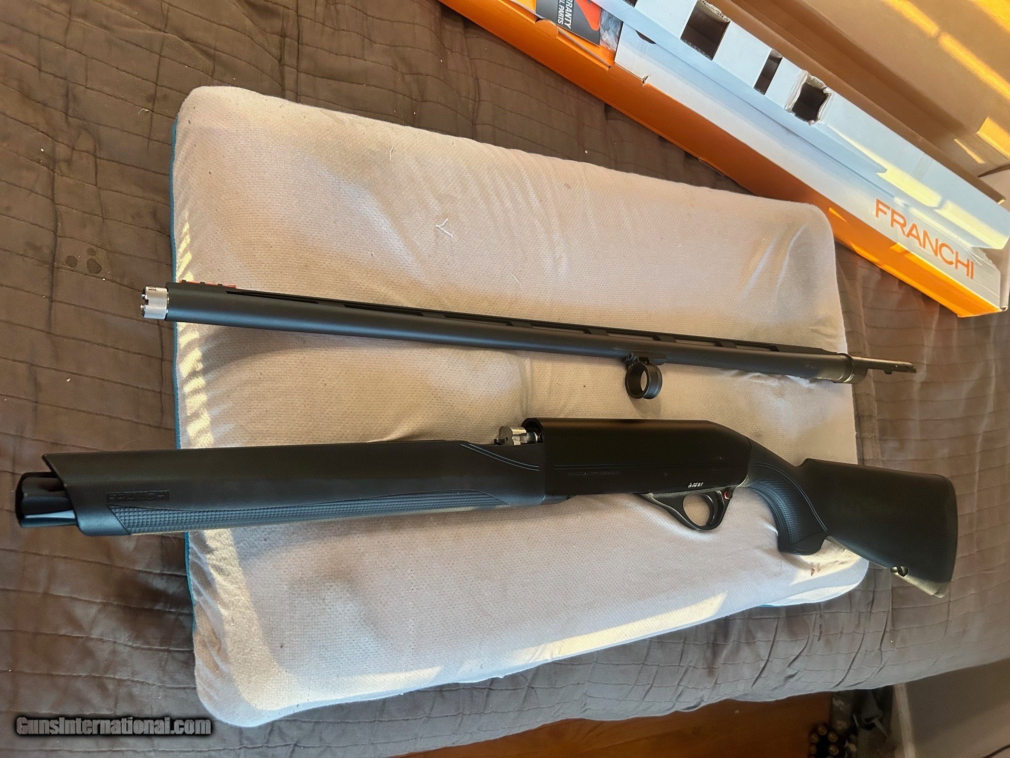 Description: First year issued. Used on one hunt. Comes with a Brilley Extended IC tube. 20 Gauge Magnum. Fires both 2 3/4 or 3” shells. Like new! Introduced in 2012, Franchi has been hard at work reinventing, or at least revitalizing, the brand. The Affinity is the recoil actioned autoloading replacement for the I-12 of years past. The control layout of these guns will be familiar to Benelli M2 fans, as it is identical. My understanding is that manufacture and assembly of the Franchi Affinity is done at the Benelli Urbino facility. The Franchi Affinity action differs from the Benelli recoil (inertia) action in one basic aspect: the mainspring is located under the forearm, as opposed to inside the buttstock. The triggers of both guns released at 4-1/2 pounds, better than average for an out of the box autoloader. The 20 gauge Affinity comes in any barrel length you want, as long as it is 26 inch. That makes some sense, as one of the ways to reduce street price on a shotgun model is to limit the number of configurations available. After assembly, I gave the actions three drops of M-Pro 7 gun oil and cycled them briskly a couple of dozen times. The Affinity comes with what Franchi feels is an industry-leading seven year warranty. Common Specifications: