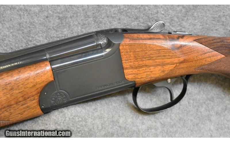 Description: Blued receiver and barrels. The serial numbers of both barrels match the gun. Imported by Stoeger. SOLD Manufacturer: 1978 Caliber Info: 12 Ga. Chambers: 2 3/4 inch Metal Condition: very good to excellent condition, some light wear on the corners of the vent ribs, a few nicks on the O/U barrels, some light wear on the muzzle of the single over barrel Wood Condition: very good condition, some light scratches/handling marks on the stock Bore Condition: bright and shiny Barrels: 30 inch vent rib O/U, 32 inch vent rib single over Triggers: single, mechanical, smooth selective trigger Stock: checkered walnut pistol grip Stock Dimensions: 14 1/4 inch LOP Fore End: checkered walnut with finger groove Butt Pad: checkered Franchi brand rubber recoil pad Weight: 8 lbs 11 oz with the O/U barrels Sights: both barrels have a red fiber optic rod front and steel mid bead Chokes: fixed, O/U: marked "Full" on the top and "IM" on the bottom, single over: marked "IM Extras: comes with a single over barrel and a leather case Item Location: Kansas City, KS |