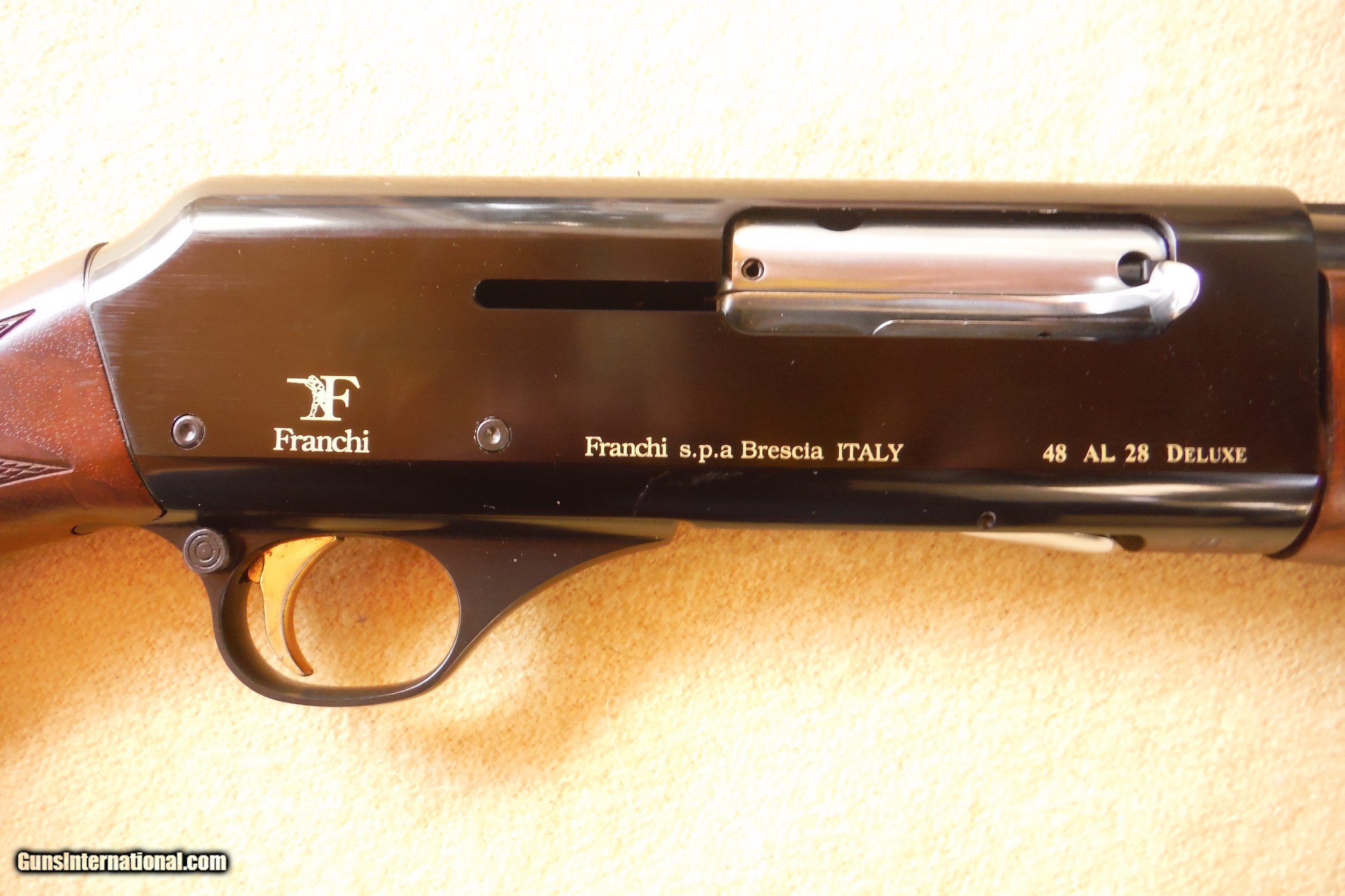 Description: Franchi 48 AL Deluxe, 28 ga. Little used as I've come to prefer my 28 ga. double instead. Special select wood and excellent nearly new finish on the wood and metal. Light weight, only 5.5 lbs. 4 Screw in Beretta chokes included SOLD Manufacturer: Franchi Model: 48 AL Bore: 28 Chambers: 2 3/4 Ejectors: yes Condition: Like New Metal Condition: Excellent Wood Condition: Excellent Bore Condition: Shiny Barrels: 26 Action: Automatic Triggers: Single Gauge Info: 28 Butt Pad: None LOP: 14 1/4 Rib: Ventilated Finish: Oiled special order wood Weight: 5.5 lbs. Chokes: Beretta screw in Engraving: Minimal; usual for Deluxe model Extras: Beretta chokes Item Location: NEW JERSEY |