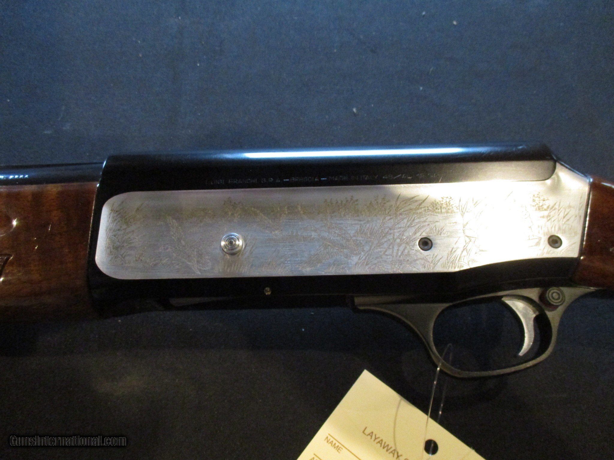 Description: Franchi 48AL Deluxe, 12ga, 26" barrel, vent rib, 2.75" chamber, Fixed IC choke. Factory finish on both wood and metal, nice clean gun. SN is U249xx. LOP is 12". Email me if you would like these pics sent to you, they will come through bigger and better than on the listing page here. Email me with any questions. I am a store front dealer, and I will close s if the gun sells locally. Once ahas reached my reserve, I will pull it from my shelves. Please check your local laws to confirm it is legal to own in your state! Buyer pays $25 shipping and insurance to your FFL, in the lower 48. AK, HI or PR is extra. I will ship to California, NO PROBLEM! All my guns come with a non firing, 3 day unconditional return privilege, from the day UPS delivers to your dealer. Buyer pays shipping both ways if the gun comes back. I can add a new hard case by PLANO for secure shipping for $25 if the buyer wishes (highly recommended, cheap insurance, really helps keep the UPS monster from eating my guns!). No sales tax on guns ship out of Kansas, guns sold in Kansas are subject to Kansas sales tax. I am a licensed FFL, and will include a copy of my FFL with the gun for your dealers records. I will ship to a C&R if the gun is eligible (you look it up!). I will ship to California, but you need to confirm the gun is legal where you are, California or other. I am always looking for good clean, old original Winchesters to buy, consign, or trade, especially pre '64's model 70's and model 54's. WE ALSO TRADE FOR CLASSIC CARS AND TRUCKS! I will leave feedback as soon as the buyer leaves feedback on me. Email me with any questions, and good luck! SOLD |