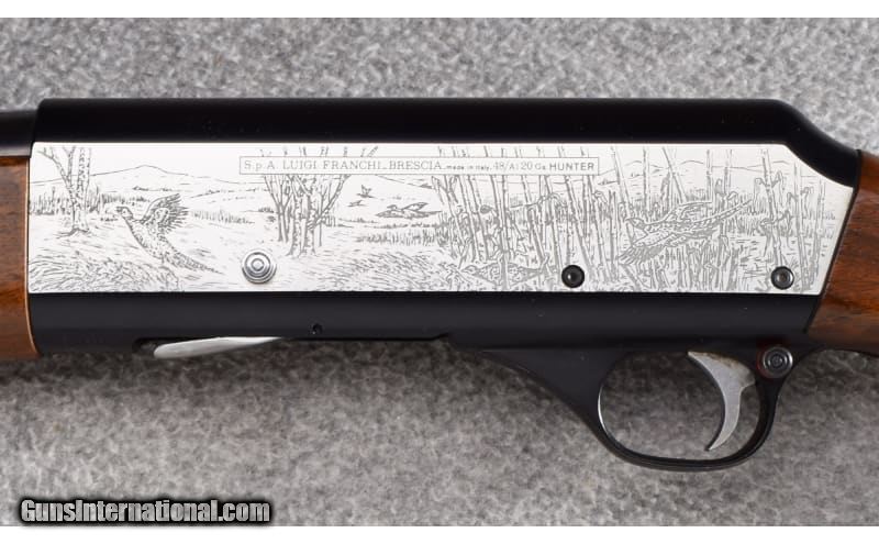 Description: This Franchi 48AL in 20 Gauge is in excellent condition. It features a 26" vent rib barrel with a fixed IC choke. The receiver is silver on both sides and has game scene engraving. The bore is bright and the wood stock and forend show a few light marks from handling. This shotgun will ship with the original Franchi factory box. 20 Gauge SOLD Chambers: 2 3/4 Metal Condition: Excellent Wood Condition: Excellent Bore Condition: Excellent Barrels: 26 Triggers: Factory Stock Dimensions: 14.5" LOP Fore End: Checkered Walnut Semi Pistol Grip Stock - Checkered Walnut Forend Butt Pad: Black Butt Plate Weight: 5.5 lbs Sights: Silver Bead Chokes: Fixed Improved Cylinder Item Location: Wheeling |