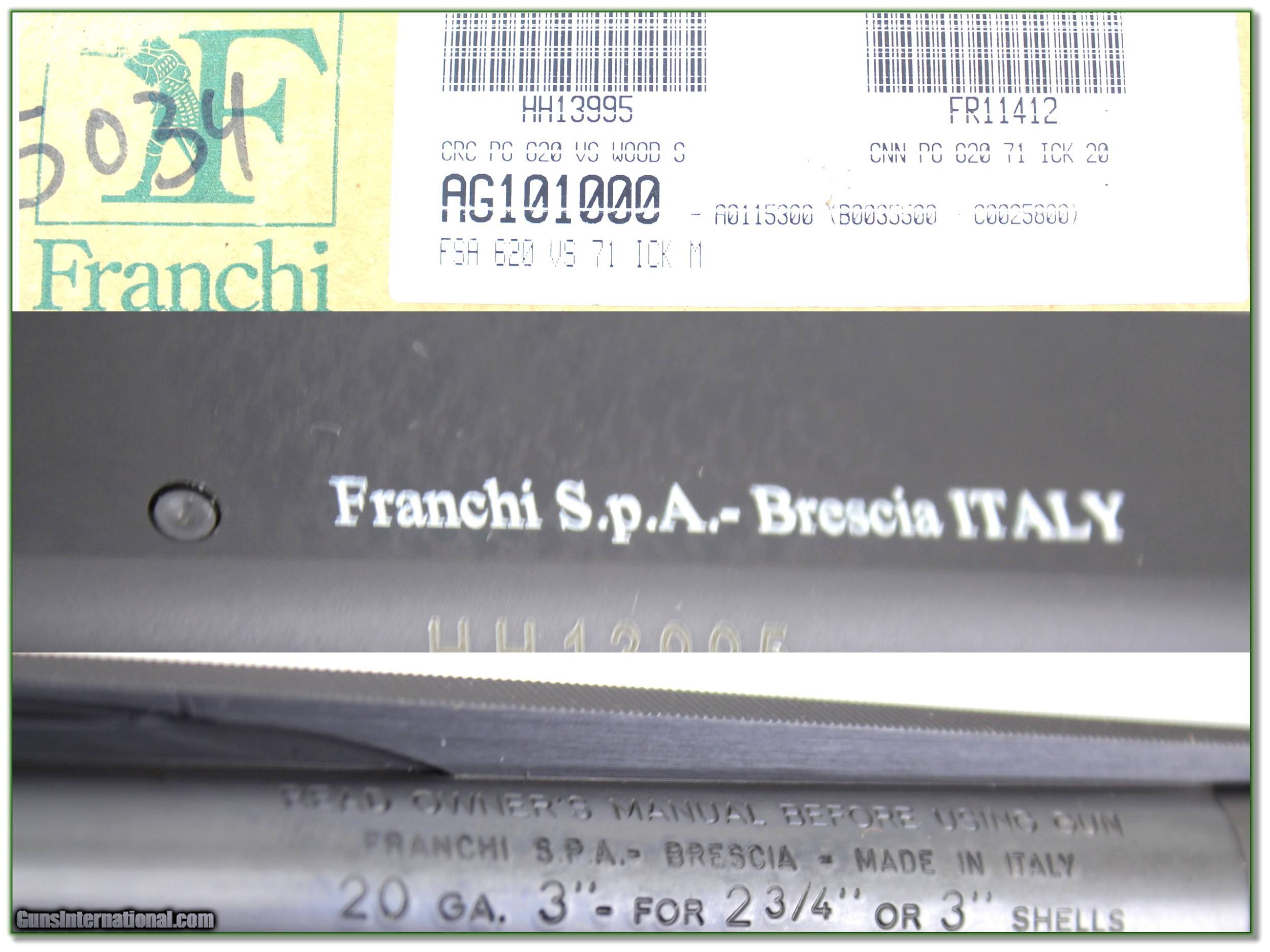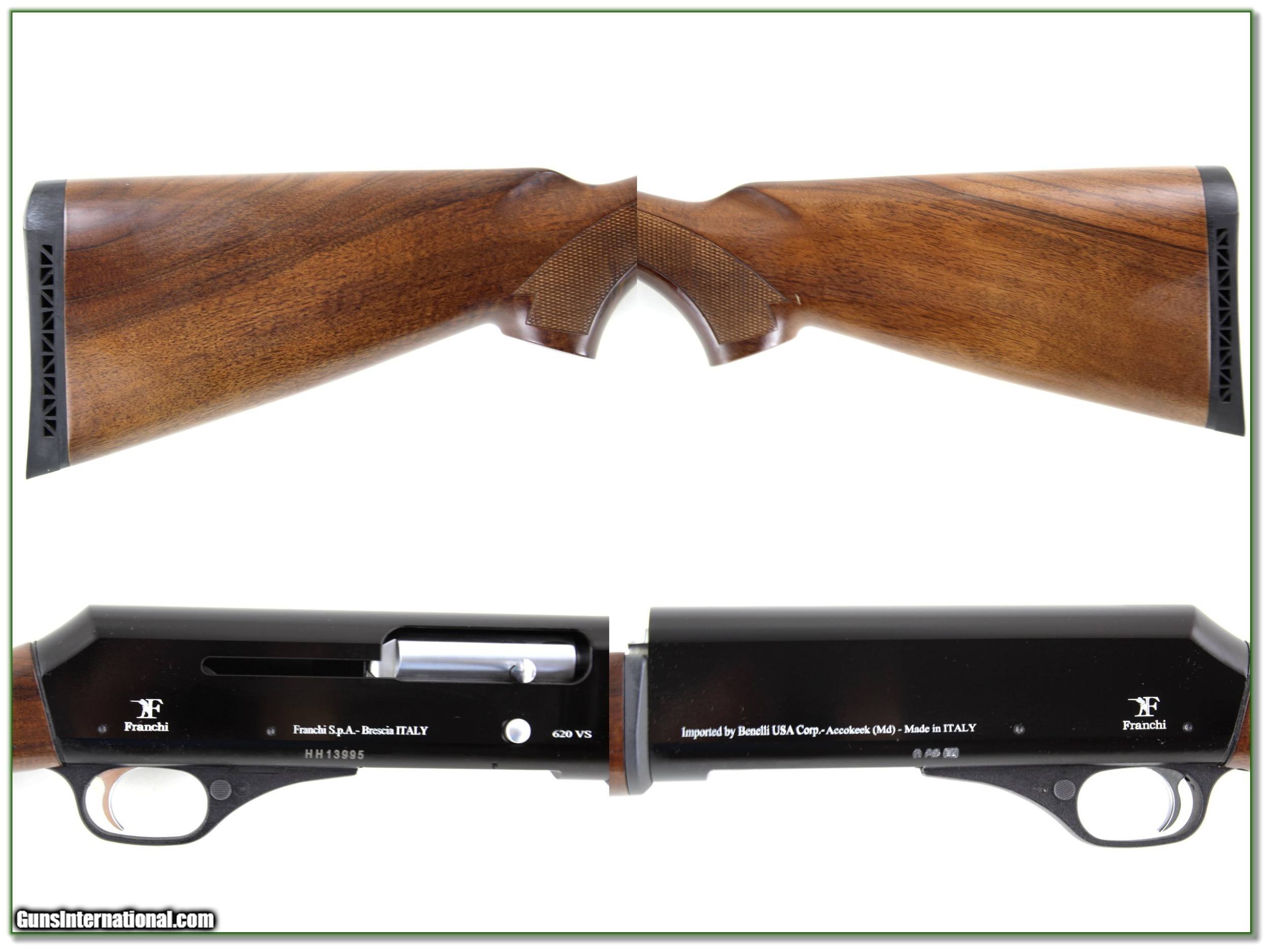 Description: This is a like new and in the box Franchi 620 VS. There are no marks on metal or wood and I’m sure only a few shells fired. It has a 28in Vent Rib barrel and comes with all 3 choke tubes, papers, and original box. It will make a nice lightweight field gun! I am selling this one on consignment and as such lay-a-way can’t be used. It does of course have the standard 3-day inspection. Shipping and insurance is $39. Please email me with any questions or larger pictures. (Consign your quality firearms with Shooting Investments for only 12%! Let me know if you have any you would like to sell!) 20-0992 Payment: Payment is by Money Order, Cashiers Check or Personal Check. I can now also accept Credit Cards (MasterCard, Visa, Discover & American Express) with a 3% convenience fee. Shipping: The shipping charge will be listed in each description. It is $39 for most firearms. Some heavy guns or those insured for over $2000 will be higher. Shipments to Alaska and Hawaii are higher because air shipment is required. Most firearms are shipped on Tuesday and Thursday and usually in 5 days of receipt of payment. We package all shipments carefully and insure them. Optics are shipped Priority Mail and most other non-firearm shipments are shipped First Class. Returns: Our return policy is simple. If for any reason you are not pleased with your purchase, you may return your item for a full refund of purchase price. Ammunition cannot be returned. It is important to us that you are happy. Guns cannot be fired or dissembled before returning them and they must be returned in the same condition as received. Notification of a return must occur with-in 3 days of receipt at your dealer. Shipping, convenience and dealer fees are not refundable and are the responsibility of the buyer. Lay-a-way: If needed, we offer a 60 day lay-a-way option on most firearms. It is 1/3 now, 1/3 in 30 days and 1/3 in 60 days. Lay-a-way firearm sales are final and if not completed the first payment cannot be returned. Consigning your firearms with Shooting Investments: We will help you get top dollar for your firearms. While most local guns shops charge 20% or more, our fee is only 12% with a minimum of $75. At your local gun shop it might take months to sell. Selling on-line provides instant access to thousands of interested buyers. You won’t find any other on-line dealer willing to sell your firearms for only 12% or listing every gun on 3 separate s. Selling through an House typically costs the seller 15% and the buyer an addition 15% (so 30%) and you have to wait several months to sell and longer to receive funds. If properly priced, we will sell your firearms in a few weeks. Send us an email or give us a call and we’ll explain how easy it is for you to get top dollar. Trading: Trading for use is really just buying your gun to re-sell. If you have a gun you want to trade, please email a picture and we will let you know what we can give or it. You will always get more if we sell it for you on consignment. Help for California Buyers: We are happy to ship to California. It is the buyer’s responsibility to make sure any item you buy is legal in your state. We are also happy to help with your purchase of a firearm from someone other than us. If you see a gun you would like to buy but the seller can’t or won’t ship to California they can ship to use and we’ll then ship it to your California dealer. The cost for this service is only $30 + shipping. Let us know if we can help! SOLD |