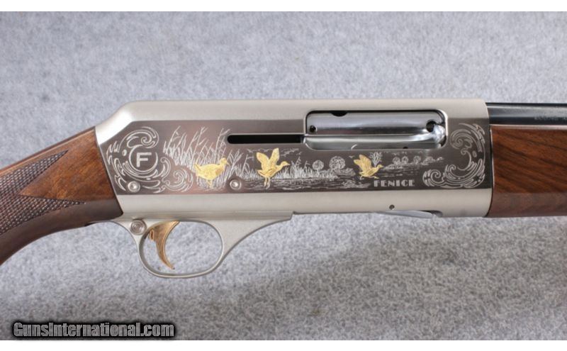 Description: The name Fenice evokes the concept of the ultimate progression of the gun maker’s art. The World Class Fenice from Franchi is built around the time-tested 48 AL design. The Fenice’s high-polish, chrome-plated bolt is contained in a nickel-plated lightweight alloy receiver featuring fine scroll engraving and generous gold game scene inlays. The Fenice is fitted with an oil-finished stock of AA-Grade, highly figured European walnut. SOLD Manufacturer: 2018 Caliber Info: 20 Gauge Chambers: 2 3/4 inch Metal Condition: Excellent Wood Condition: Excellent with handling marks Bore Condition: Excellent Barrels: 28 inch barrel Stock: Checkered walnut stock Stock Dimensions: 14 3/8 in. LOP Fore End: Checkered walnut Butt Pad: Factory rubber pad Weight: 5 lbs. 12 oz. Sights: Vent rib with single bead Chokes: Interchangeable choke tubes Extras: Box Item Location: Lehi, UT |