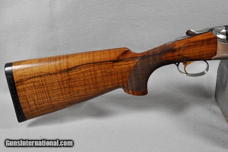 Description: Franchi, over/under shotgun, Model Alcione SL Sport, SPORTING CLAYS, 12 gauge (2 3/4" & 3" Magnum), THIS GUN WAS SPECIAL ORDERED BY ME WITH 3" MAGNUM BARRELS WHEN I HAD MY SHOP, s/n 6012300 (Disc. 2005), RECEIVER: polished stainless steel, detachable sideplates, single selective trigger, selective automatic ejectors, manual safety, factory original in 100% condition, BARRELS: 30" LENGTH, ventilated target rib on top barrel and ventilated between barrels, BARRELS ARE FACTORY PORTED, barrels retain original blue in 100% condition, PERFECT BORES, comes with four (4) EXTENDED chokes which include one (1) Full, two (2) Improved Modified, and one (1) Modified for lead shot or Full for steel shot (gun is steel shot approved), includes choke tool, BUTTSTOCK AND FOREARM: beautiful fiddleback pattern on Walnut buttstock, LOP 14 3/8" over factory ventilated pad, DAC 1 1/2", DAH 2 1/4", cast off 1/4", BUTTSTOCK AND FOREARM RETAIN 100% ORIGINAL FINISH IN 100% CONDITION, ENTIRE GUN APPEARS VIRTUALLY UNFIRED, OWNER SAID HE FIRED ONE ROUND OF SPORTING CLAYS WITH IT, IMPORTED BY BENELLI IN ACCOKEEK, MD, comes cased in a factory hard case, ONE OF THE BEST VALUES IN A SPORTING CLAYS GUN EXTANT, Retail value $1500.00, Sale priced at $1395.00 Our firearms and accessories are best viewed on a desktop or laptop computer with at least a 15" high rez screen. Viewing on an I-phone, I-pad, or tablet just can't show the detail that our professional photographer exhibits in his photos. We have been in the firearms business for over 55 years (since 1960) under the same ownership. We are a Platinum dealer on GI. We are receiving up to 50 e-mails daily. All buyers are taken on a strict first come-first served basis depending on the date and time we receive their e-mail. We strive to describe all of our sale items accurately and fully and include professional quality photos of each item. We do our best to point out negatives (if any) regarding a sale item. Although we offer a 3-day, no questions asked, return policy it has rarely been used the entire time we have been in business. The first potential buyer who states that he definitely wants an item gets it. Those having questions who do not commit to purchase in their first inquiry will have their questions answered but may lose the sale if another buyer e-mails after they do and commits to purchase before we can get back to the first inquirer to answer their questions. This happens almost daily and disappoints a lot of people. If you see something you want- commit to buy it. You will not be disappointed. We cater to first time GI buyers. You can purchase from us with total confidence. We will guide you through the purchasing process if need be. WANT TO VISIT A GUN SHOW ANYTIME RIGHT ON YOUR COMPUTER? We add guns and gun related items to GI virtually every day. The easiest way is to click on the box up in the top right hand side of this ad labelled "SEE ALL LISTINGS BY MARYLAND ARMS COMPANY". Or, if you are just getting onto the computer it’s as simple as 1, 2, 3 ........ 1) After going to the GunsInternational homepage click on the box "ADVANCED SEARCH" at the top...... 2) Then click on the box "OTHER OPTIONS"..... 3) Type "MARYLAND ARMS COMPANY" into the "SELLERS SCREENAME" box and click "ENTER". Over 150 guns and related items we currently have listed on GI will come up with photos and complete descriptions that are available for purchase right now. We keep our ads current. This stuffs for sale immediately. No fooling around wasting time trying to beat out other people. No stupid fees. Who has the time and money for that? That’s the beauty of GI. Tell all your friends. USA SALES ONLY EXCEPT CA. Thank you. SOLD |