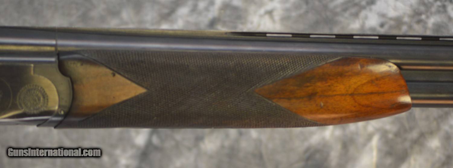 Description: Pre-Owned Franchi Alcione Field Two-Barrel Set 12GA with 28" fixed choke (.025/.035) barrels, additional 26" fixed choke (.010/.010) barrels. Factory blued receiver showing bluing wear on edges of action, engraved with the Luigi Franchi logo. Factory Purdey style pistol grip stock to original butt plate, grip cap; slim game forearm with repaired crack. Stock shows finish wear and checkering wear. Fully serviced. Includes case. Late 1950s manufacture. SOLD Shotgun Gauge: 12 Gauge |