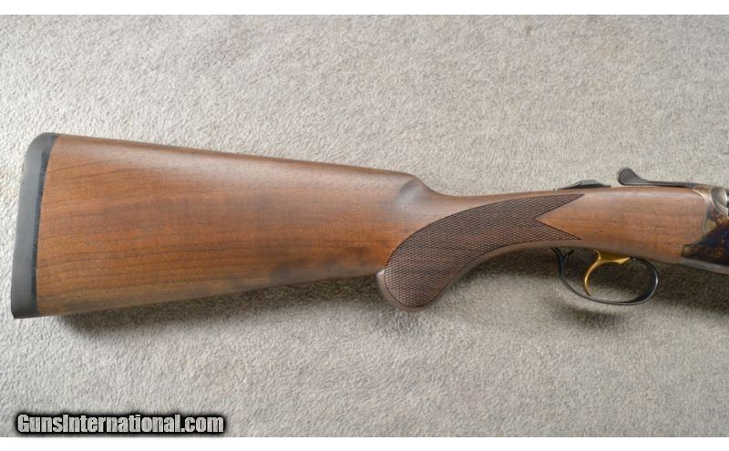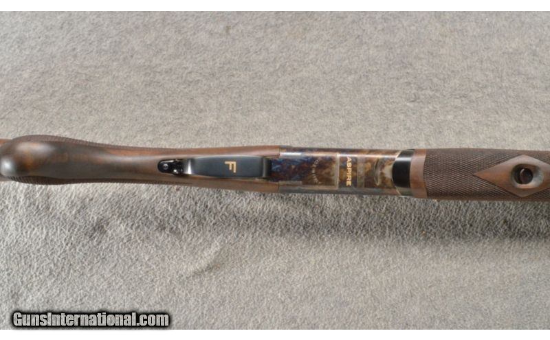 Description: The Franchi Aspire 28 gauge shotgun ia very nice new Italian made shotgun has bright blue barrels, trigger guard and top lever. The frame is case colored and the shotgun has a single gold color trigger. This nice little shotgun has a walnut stock with a checkered round knob and matching checkered fore end. It is a nice light weight (5 Lbs. 12 Oz) with screw in chokes, ejectors and mechanical trigger. You can’t go wrong at this price. SOLD Manufacturer: 2015 Caliber Info: 28 Gauge. Chambers: 2 3/4 inch over/under with ejectors. Metal Condition: Excellent Wood Condition: Excellent with light handling marks Bore Condition: Excellent Barrels: 28 inch blue with a vent rib and ejectors. Triggers: Single SST gold color. Stock: Mid-grade walnut with a checkered round knob Stock Dimensions: 14 3/8 inch LOP. Fore End: Checkered walnut Butt Pad: Factory black rubber butt pad. Weight: 5 Lbs. 12 Oz. Sights: Red bar front sight on the vent rib. Chokes: Screw in, comes with a FULL, MOD and IC. Extras: Comes in the factory box with a hard case, the extra choke, choke tube wrench, storage sleeve and factory paperwork. Item Location: Lehi, UT |