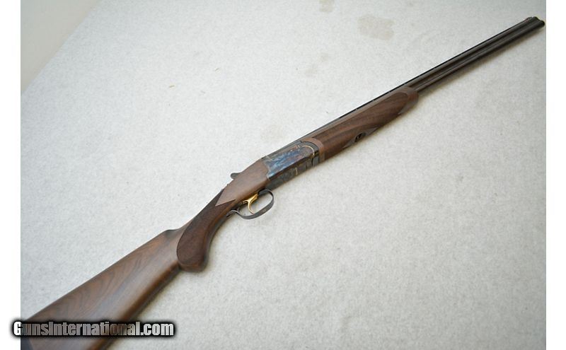 Description: Excellent condition overall. Almost like new in box. The metal is pristine with no handling marks. The stock is also in pristine condition. 28 Gauge SOLD Chambers: Shotgun in over/under configuration chambering up to 2¾" shells. Shell ejectors. Metal Condition: Excellent. Wood Condition: Excellent. Bore Condition: Excellent. Has a mirror shine and no deformities. Barrels: 28" Gloss blued with ventilated rib. Triggers: Wide gold-plated metal with smooth surface. Barrel selector on top tang with mechanical reset. Stock Dimensions: Checkered walnut with oil finish and a 14½" LOP. Fore End: Oil finished walnut with wrap around checkering. Butt Pad: Black rubber pad. Weight: 6lbs Sights: Red front light pipe. Chokes: "Comes with a modified, full, and improved cylinder choke. Item Location: Green Bay |