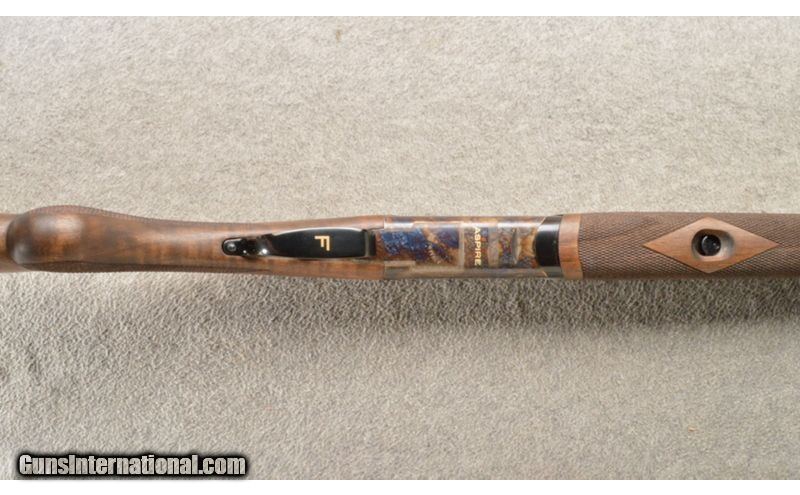 Description: This is a new in the case Franchi Aspire 410 gauge/bore shotgun. This very nice new Italian made shotgun has bright blue barrels, trigger guard and top lever. The frame is case colored and the shotgun has a single gold color trigger. This nice little shotgun has a walnut stock with a checkered round knob and matching checkered forearm. With a nice lightweight (6 Lbs. 4 Oz), screw in chokes, ejectors and mechanical trigger you can't go wrong at this price. .410 Gauge SOLD Chambers: 2 3/4 and 3 inch over/under with ejectors. Metal Condition: New. Wood Condition: New. Bore Condition: New. Barrels: 28 inch blue with a vent rib and ejectors. Triggers: Gold color SST. Stock Dimensions: 14 3/8 inch LOP. Butt Pad: Factory black rubber butt pad. Weight: 6 Lbs. 4 Oz. Sights: Red bar front sight on the vent rib. Chokes: Screw in, comes with a FULL, MOD and IC. Item Location: Owatonna, MN |