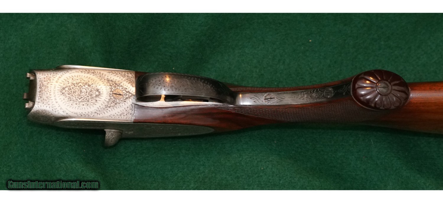 Description: The Franchi Condor is part of Luige Franchi’s made-to-order line of fine sidelock shotguns. According to the date on the water table this shotgun was made in 1948. Based on its appearance, I am speculating that it spent most of its 72 years is a gun cabinet. The breach face is clean with no signs of use and the chopper lump barrels retain 99% of their original rust blue. The gun is stocked to the fences in the style of British Best Guns. The butt stock contains several light scratches on the left side and several just forward of the toe. Checkering is well cut at about 98% condition. In all, I would rate the lightly figured wood at 93%. The trigger guard runs full tang to the grip cap and screw heads are indexed even under the forearm. The receiver and sidelocks are adorned with approximately 90% bouquet and scroll hand cut engraving with a nitrated finish. The rib is hand cut with a file. The barrels are well struck and measure 70mm or 27.5 inches and ring clearly with no lose ribs. The joint between the receiver and the fore end iron is very finely fitted. This gun presents itself well and represents an excellent value for a hand fitted side lock shotgun. LOP: 14.25 “ to the front trigger Drop at Heal: 1 9/16 “ Drop at Comb: 2 3/8 “ Barrel Length: 27.5 “ or 70mm Choke Right: .011” Choke Left: .021” Weight: 6lbs 14oz Price: $3150.00 shipped to lower 48. I do not ship firearms to California. SOLD Curio/Relic: Yes |