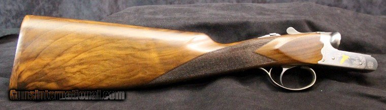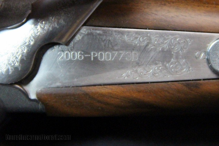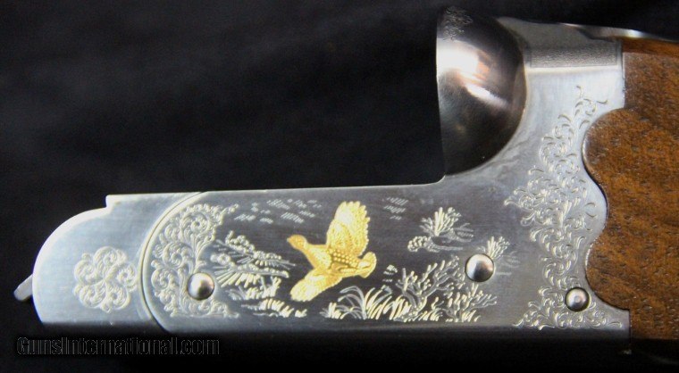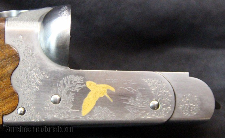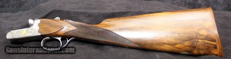 Description: 20ga, #P00773BN, 3 inch chambers, 26 inch barrels, blue barrels with satin nickel receiver,engraving and gold game inlays, straight wrist checkered stock with pad, checkered forearm, single trigger, extractors, limited production of 250 during 2007-08. Condition: NIB SOLD |