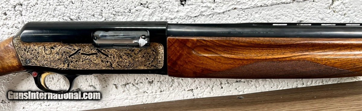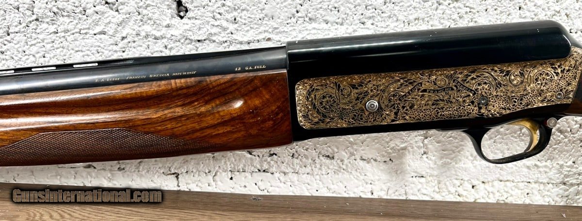 Description: Guns Listing ID: 756880 SHOTGUN: FRANCHI FIREARMS MODEL ELDORADO SEMI-AUTO SHOTGUN, BLUED W/ GOLD SCROLL ENGRAVING, 12 GAUGE, 28\" CHROME LINED BARREL W/ VENTILATED RIB, FULL CHOKE, APROX 14\" LOP. GUN ONLY. GUN HAS SOME COSMETIC DAMAGES (NICKS, SCRATCHES), FRONT SIGHT BEAD HAS BEEN REPLACED (SEE PHOTO), BUTT PLATE HAS BEEN REPLACED (SEE PHOTOS, WE DO NOT HAVE THE ORIGINAL). WE THINK A PREVIOUS OWNER MAY HAVE CUT THE BUTT A LITTLE TO FIT THE NEW PLATE. GUN DOES FIRE. (CROSS POSTED ON GB, MORE PHOTOS AVAILABLE THERE) STORE #: WCP014081 SOLD Manufacturer: FRANCHI Model: ELDORADO Condition: Used - Non-Certified Barrels: 28 BARREL Gauge Info: 12 GA Finish: BLUED W/ ENGRAVING |