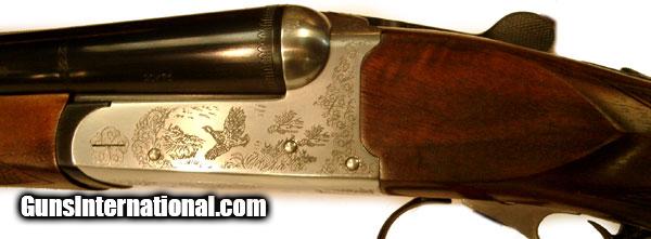 Description: FRANCHI HIGHLANDER, 12GA, 28", REMOVABLE CHOKES, SIDE BY SIDE, FULLY ENGRAVED COIN FINISH RECEIVER, ROUND KNOB, PISTOL GRIP, SPLINTER FOREARM, OIL FINISH, 1 1/2" X 2 1/4" X 14 1/2" OVER THIN PAD, EJECTORS, AUTOMATIC SAFETY, NEW IN THE BOX, RARE FIND.