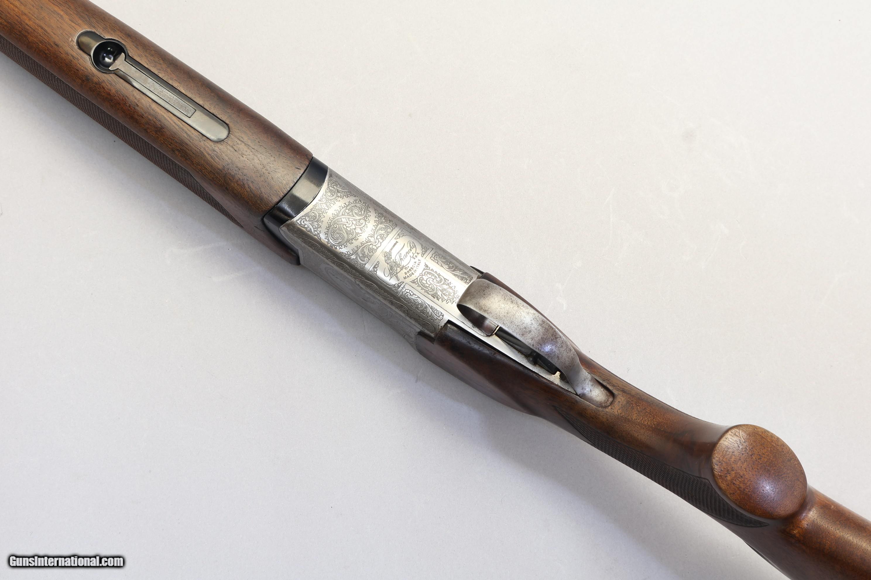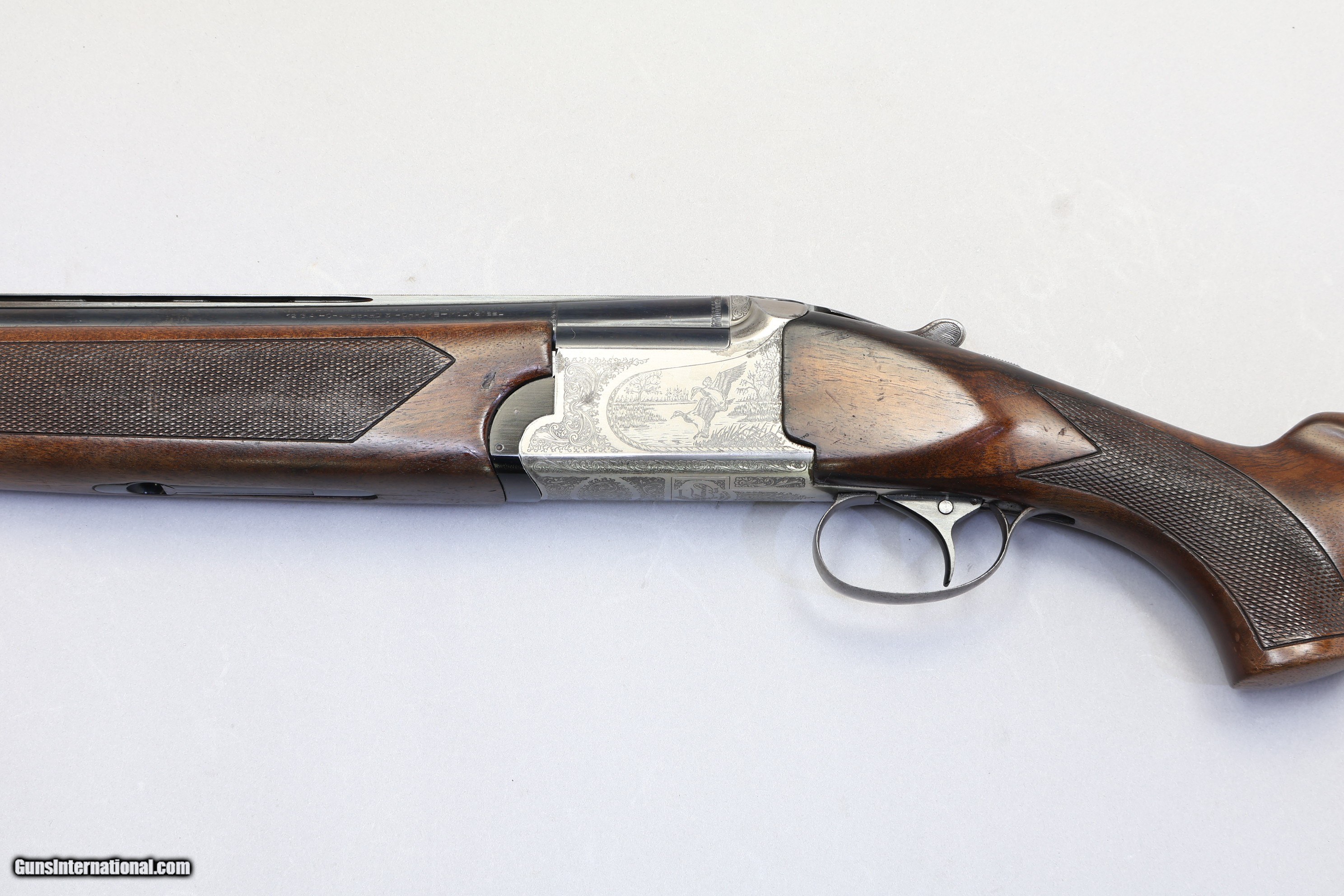 Description: Franchi Over/Under Ejector, 12 Ga, 28" Barrels Franchi Over/Under Ejector in 12 Ga, an Italian-made O/U built for reliable field performance with a parallel ventilated rib for a clear sight picture, a single trigger, and positive ejectors. The wood pistol?grip stock offers confident control while the multi?choke system provides versatile patterns for clays or upland use. Overall very good condition. Beautiful dark wood shows a few minor dents. Barrels retain all of their bluing with insignificant surface corrosion on the right, otherwise pristine. Smooth break action and ejectors firing well. Receiver carries tasteful game?scene engraving—duck on the left, snipe on the right—and a red fiber?optic front sight is fitted. Dating to 1983 in Italy, this over/under wears 28" barrels with 3" chambers, a parallel ventilated rib measuring 6 mm, and a multi?choke setup (B: Mod / U: IM). Stock dimensions are LOP 14 3/4", LOP to wood 13 3/4", DAC 1 3/4", DAH 2 1/2", with a very slight right?hand cast, and overall length is 45 3/4".