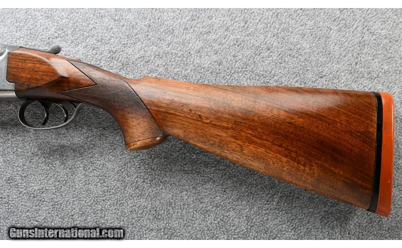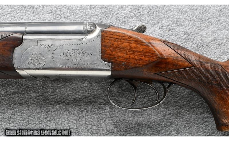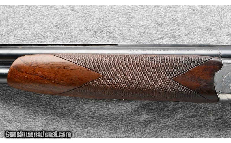 Description: Luigi Franchi Field Over & Under with double triggers and auto-ejectors. Made in 1962 12 Gauge SOLD Chambers: 12 Gauge 2 3/4" Chambers Metal Condition: "Good, showing some light pitting on the barrels and receiver Wood Condition: "Good, checkered fields are worn, mostly on the grip Bore Condition: Good Barrels: 28" Vent rib with auto-ejectors Triggers: Double Stock Dimensions: 14 3/4" LOP Fore End: Checkered walnut with Deeley style release Butt Pad: Red rubber Weight: 6 lb 14 oz Sights: Metallic bead Chokes: Fixed Full over Modified Item Location: Grand Junction, CO |