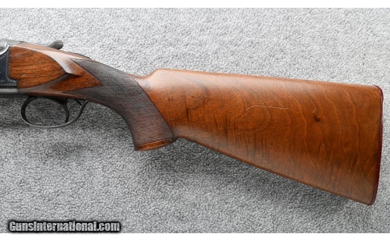 Description: This shotgun was made in Italy in 1964 showing the 'XX" proof 12 Gauge SOLD Curio/Relic: Yes Chambers: 12 Gauge 2 3/4" Chambers Metal Condition: "Good, shows carry and use wear Wood Condition: "Good, shows a blemish in the checkered field right side of the fore end Bore Condition: "Very good, bright Barrels: 28" Vented rib Triggers: Single Selective Stock Dimensions: 13 1/2" LOP Fore End: Checkered walnut with Deeley release Butt Pad: Franchi red composite Weight: 6 lb 14 oz Sights: Metallic bead front Chokes: Fixed Full / Modified Item Location: Grand Junction, CO |