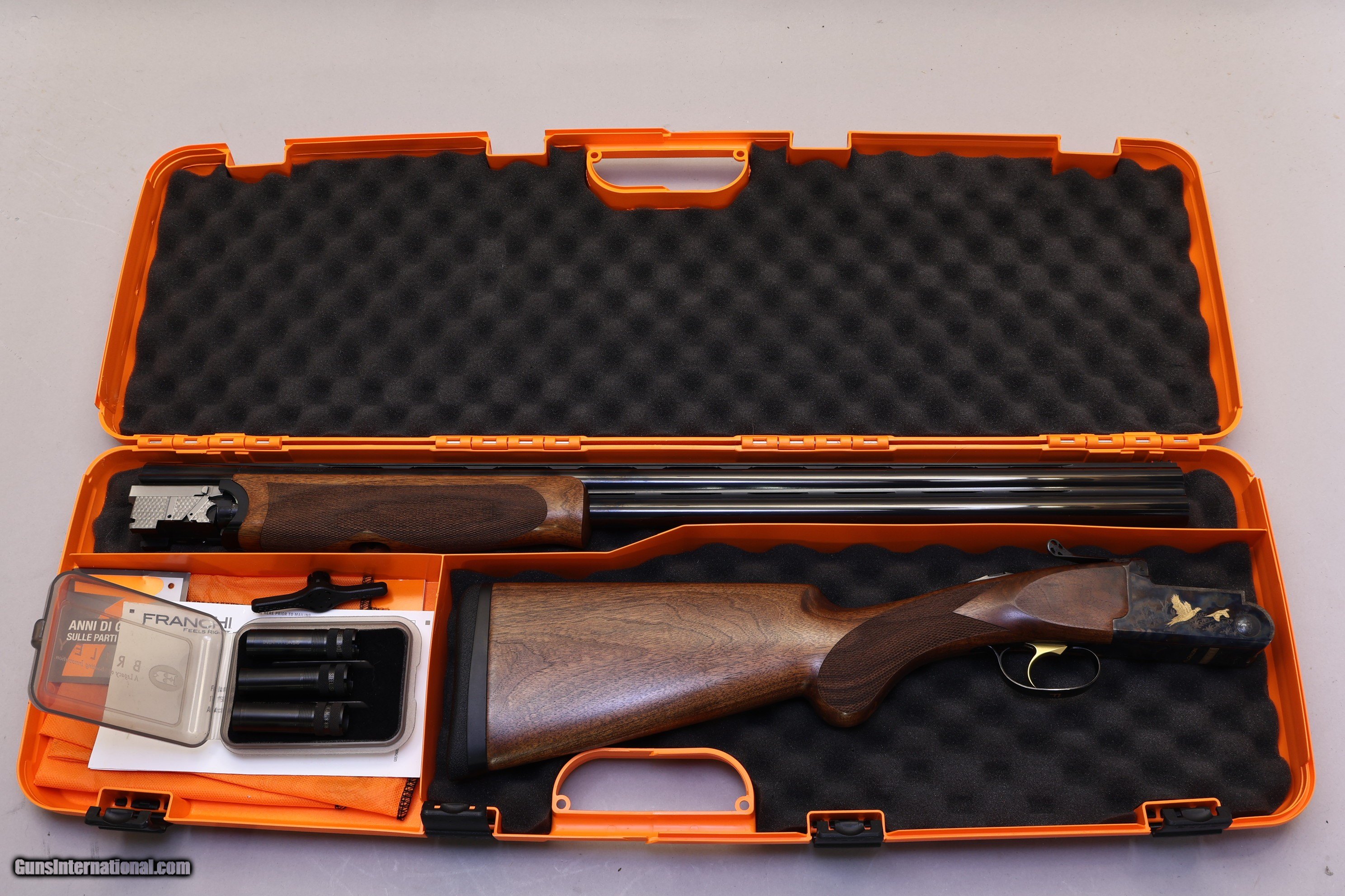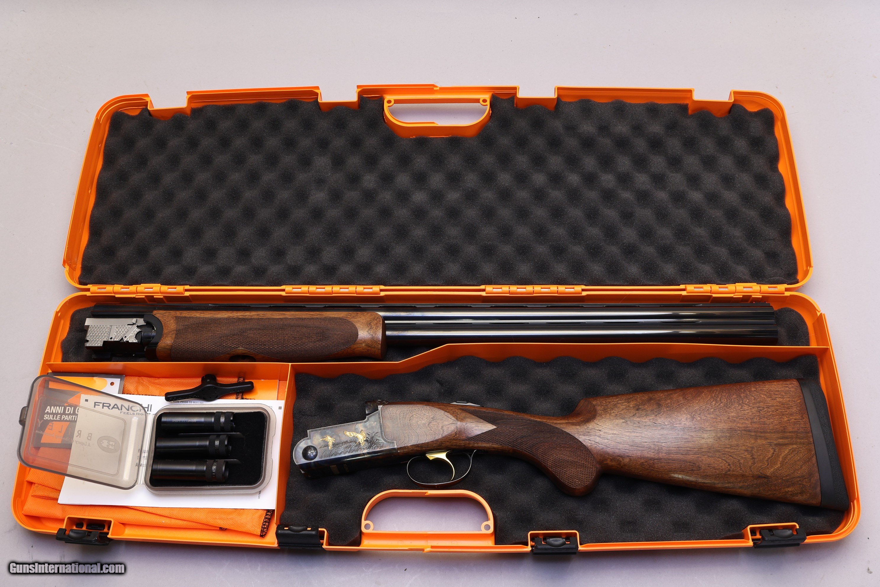Description: 3" Chambers | 3 Multi, F, IC, M | Original orange hard case | New Condition The Franchi Instinct LX Over/Under in 12 Ga is an Italian-made game gun built with strong construction and smooth handling. It features a wooden pistol grip stock and a ventilated parallel top rib that supports steady shooting performance in the field. This shotgun is new in the box and comes with its original orange hard case and three multichokes, giving the buyer a complete setup ready for use. Made in 2025 in Italy, it has a right?hand cast stock and clean overall presentation, showing no use or wear.