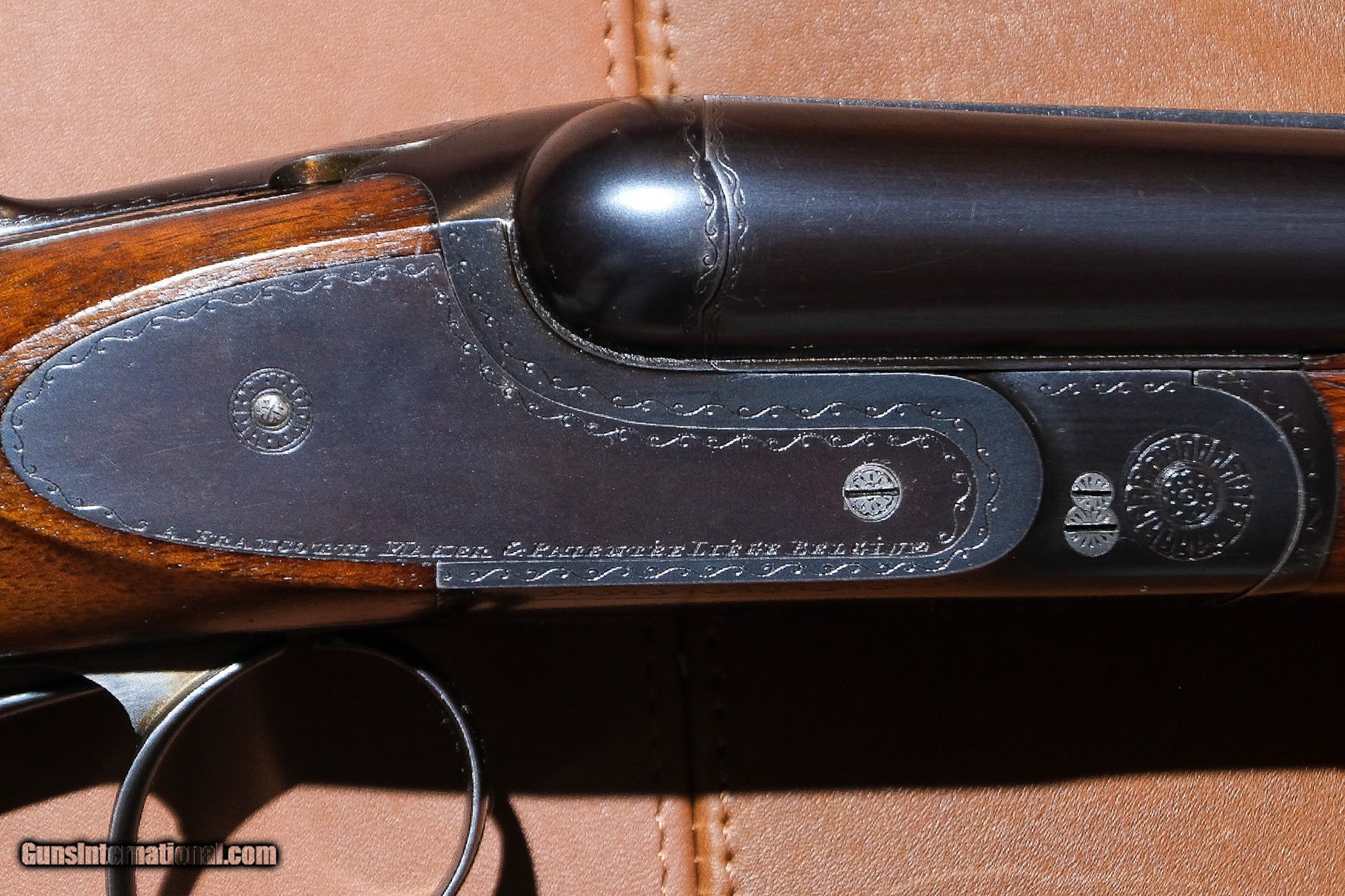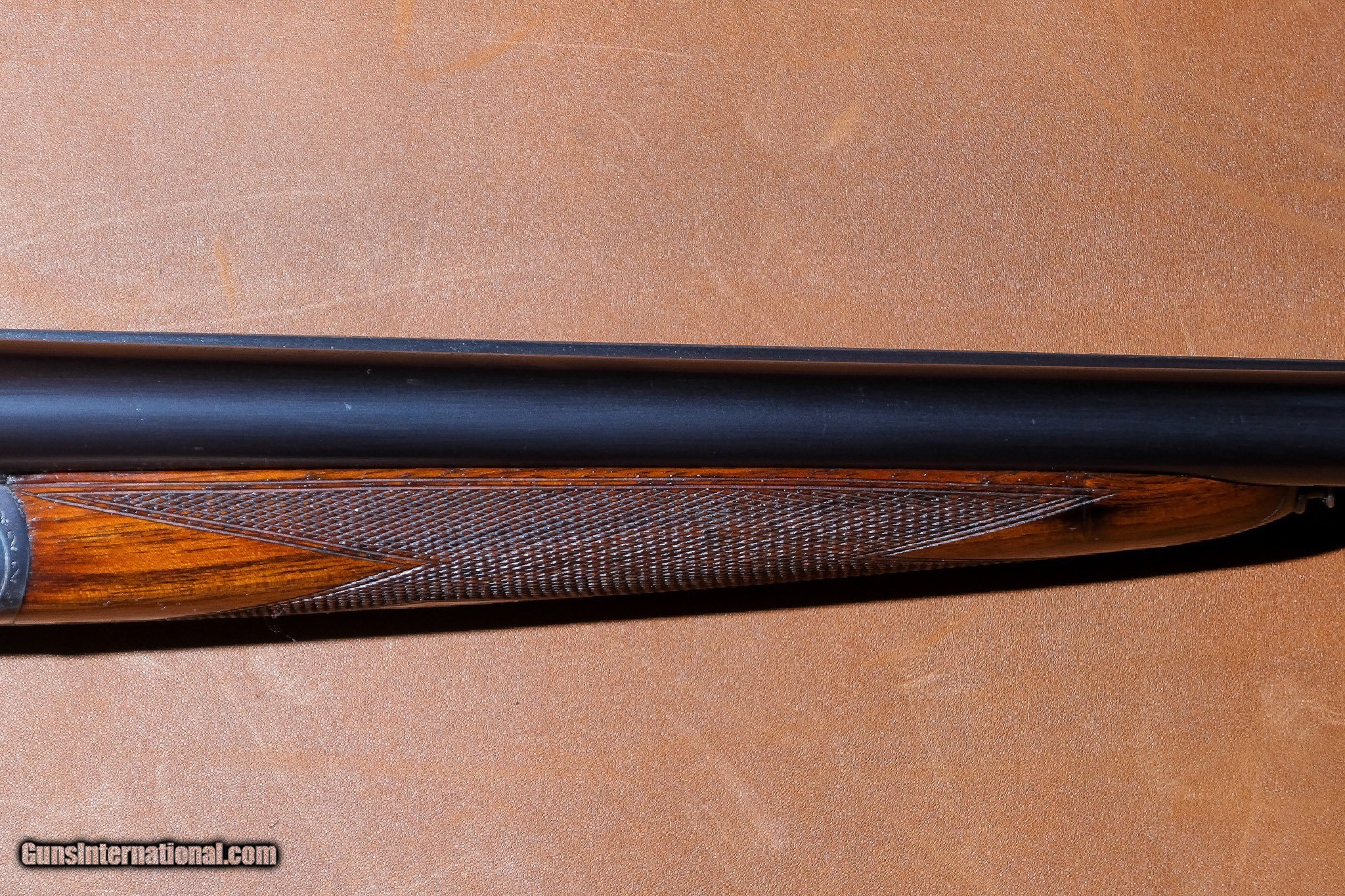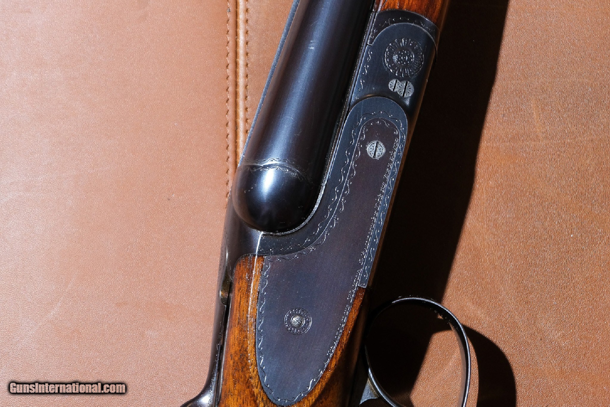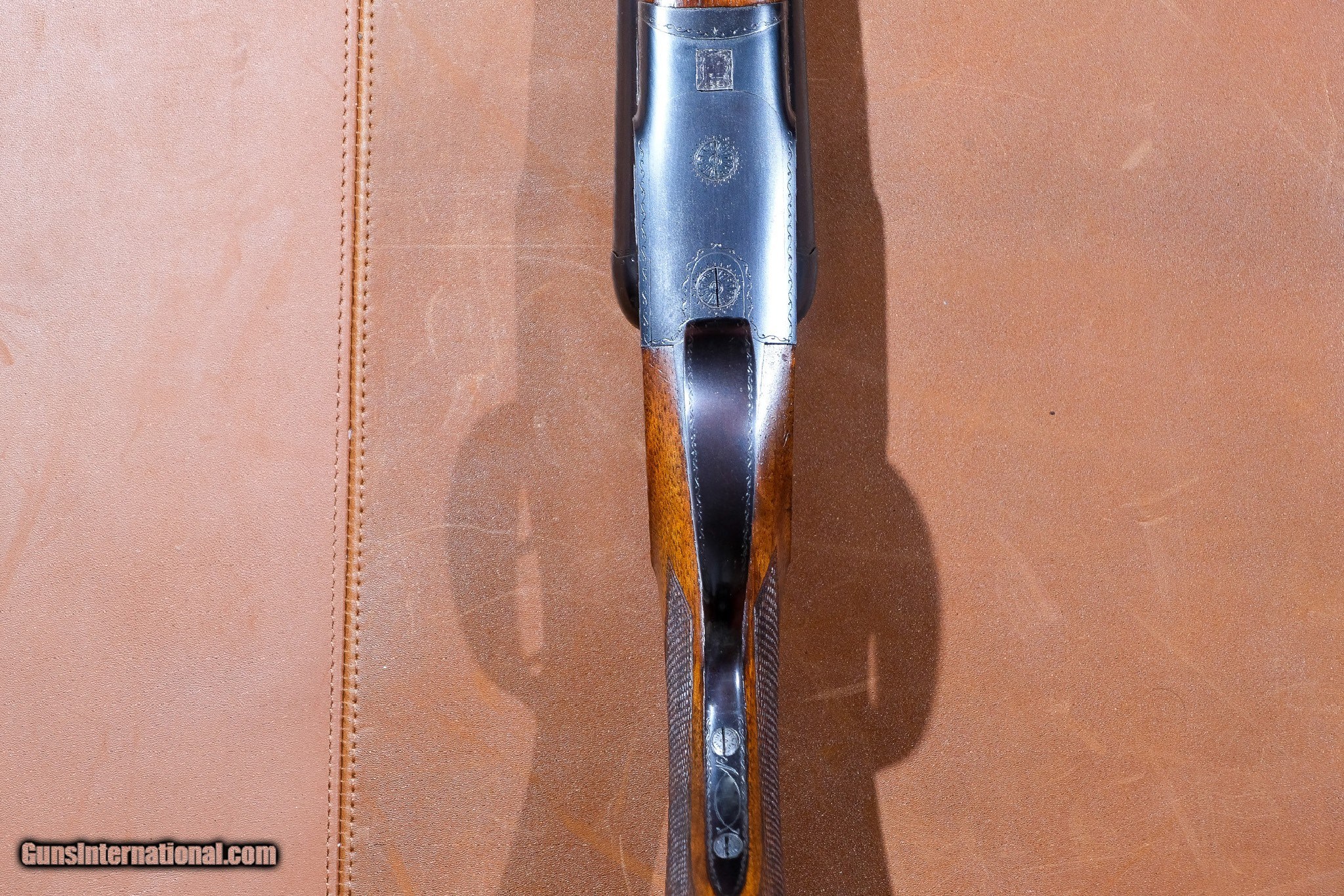 Description: A. Francotte - Jubilee, SxS, 20ga. 26" Barrels Choked IC/M (.006”/.015”). Round knob stock, factory serrated butt plate, double triggers, automatic ejectors, side clips, splinter forend, game gold oval, imported by Abercrombie and Fitch in 1940, sideplated gun with boarder engraving over a blued finish, gun remains in very good overall condition, 5lb., 4oz makes this the perfect field gun, available for immediate delivery. Inv: 76294 5 lbs. 4 oz. 14 ½” x 1 ½” x 2 ¼” $4,750.00 Price: $4,750.00 Contact Seller |