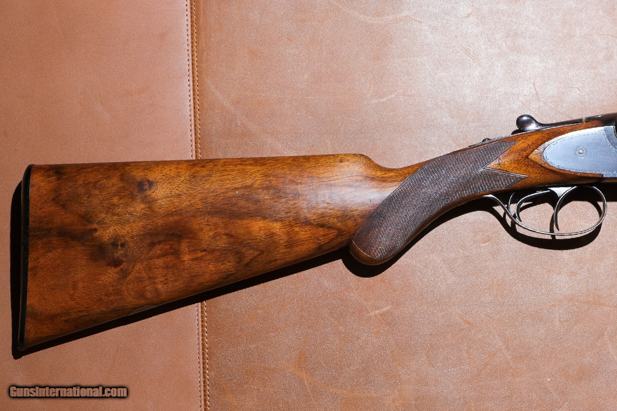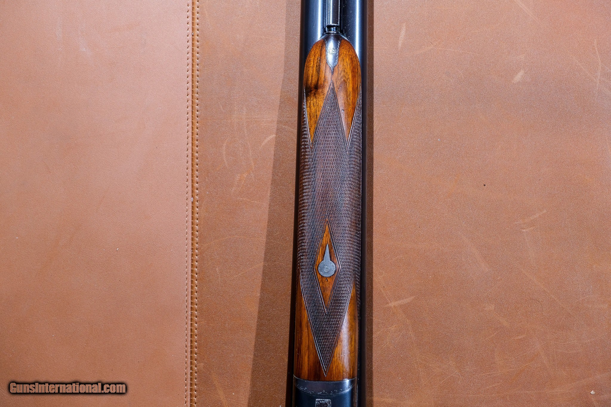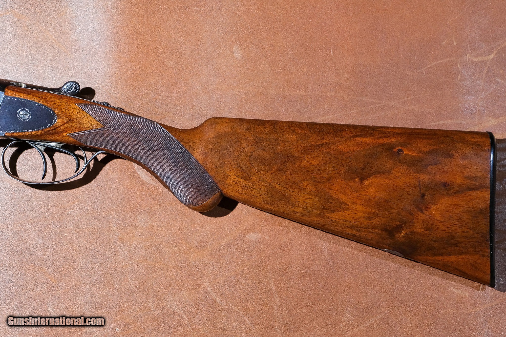 Description: A. Francotte - Jubilee, SxS, 20ga. 26" Barrels Choked IC/M (.006”/.015”). Round knob stock, factory serrated butt plate, double triggers, automatic ejectors, side clips, splinter forend, game gold oval, imported by Abercrombie and Fitch in 1940, sideplated gun with boarder engraving over a blued finish, gun remains in very good overall condition, 5lb., 4oz makes this the perfect field gun, available for immediate delivery. Inv: 76294 5 lbs. 4 oz. 14 ½” x 1 ½” x 2 ¼” $4,750.00 Price: $4,750.00 Contact Seller |